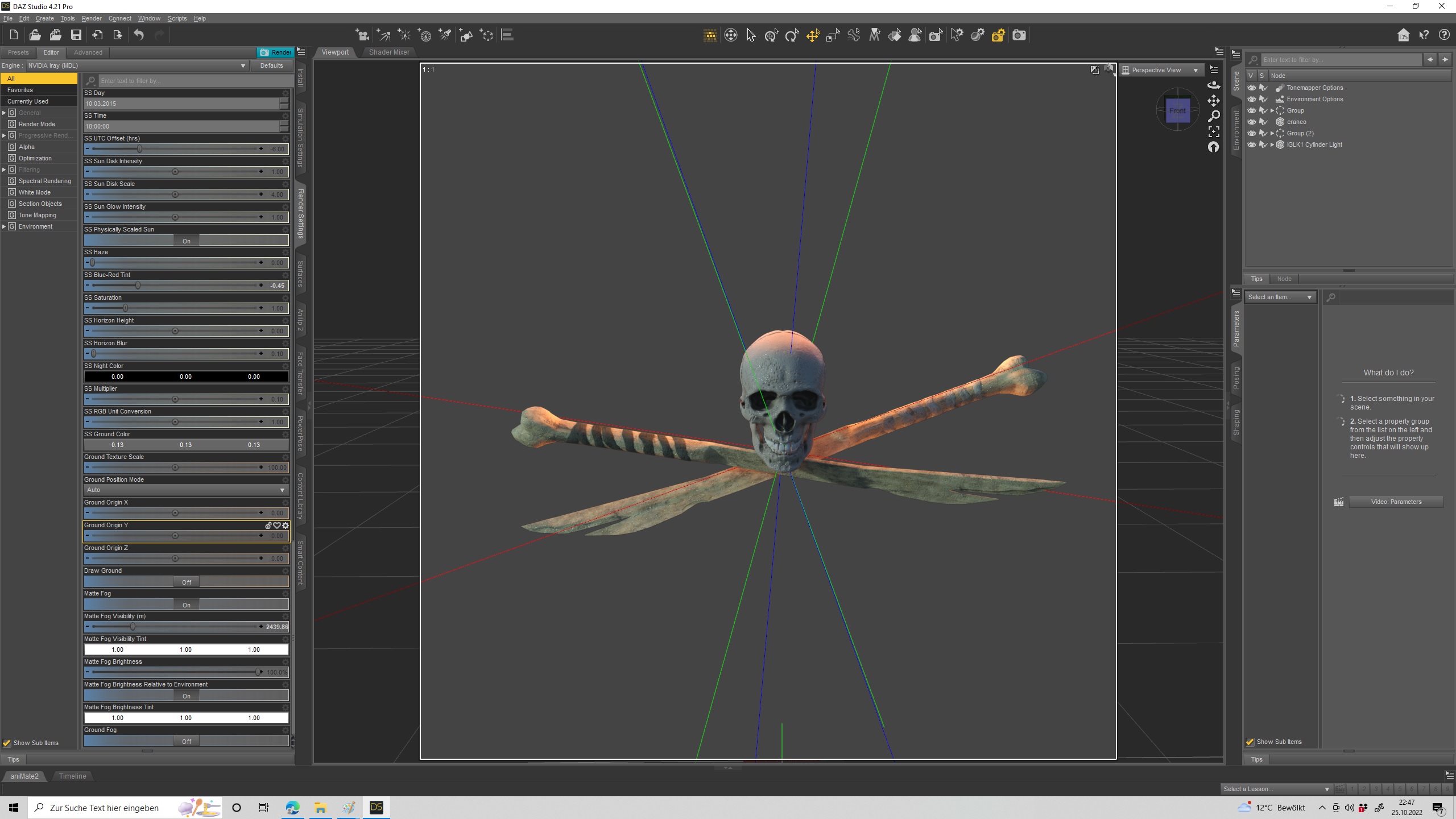 Den Totenkopf mit gekreuzten Beinen erstelle ich selber in Daz mit Freebies von Scetchfab ,ein Forum,wo man nützliche Props frei für Blender, Daz bekommen kann
