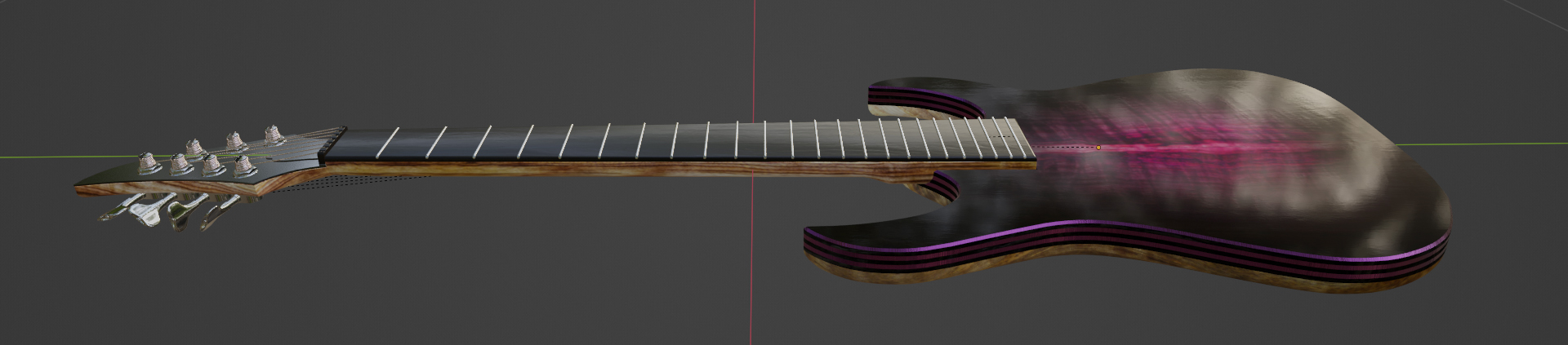 Etwas mehr als ein Drittel der Größe ist realistisch, max. die Hälfte. Und die (hier doch sehr großen) Schrauben daneben wären nie direkt auf dem Holz, sondern es befindet sich stets ein kleiner Blechrahmen darum, verwendet werden auch eher Rundkopfschrauben. Die Schrauben an meiner Strat haben dort einen Kopfdurchmesser von ca. 4mm. Da hier zwei Double Humbucker Tonabnehmer verbaut sind, ist der Regler ein Drei- oder sogar Fünffachschalter, der einen etwas weiteren Schaltweg hat, also entsprechend einen etwas längeren Schlitz erfordern würde.Soll konstruktive Kritik sein, da Du ja sonst stets großen Wert auf Detailtreue legst.