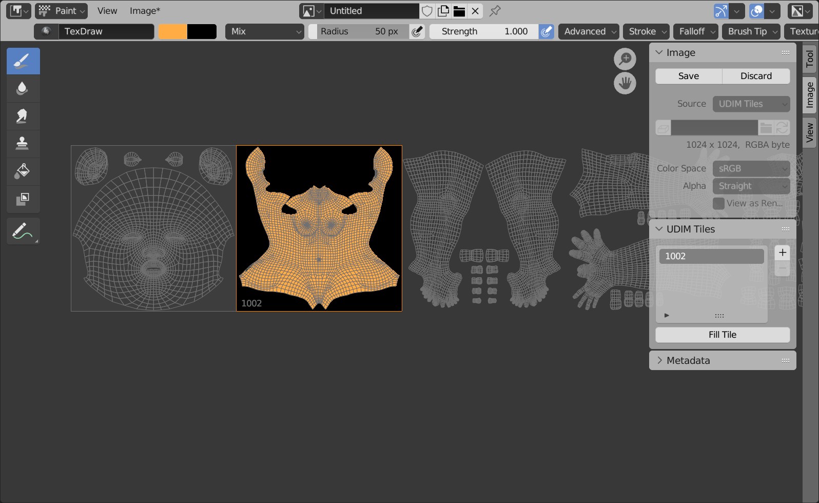 Wenn du jetz eine neue Textur anlegst musst du dieser auch mitteile auf welche der Udim Tiles sie Gehört wenn du genau auf die UV Grid malen willst oder z,b von eine G8 auf eine G9 die Textur per Bake übertragen willst.