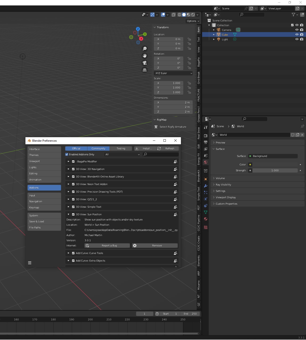 das "Sun Position" Addon ist eingebettet in die Word Properties unter "Sun Position" > siehe Screenshot meines ersten Postes hier.