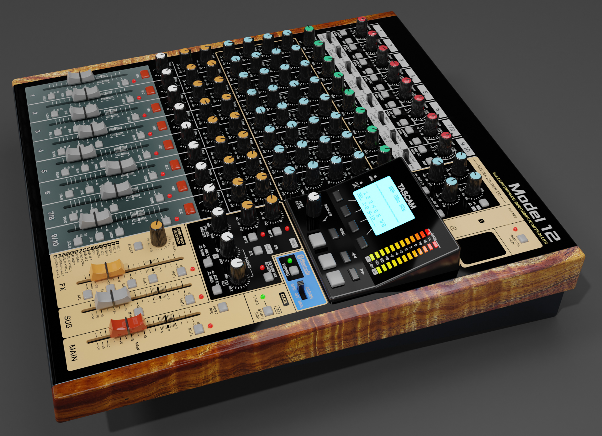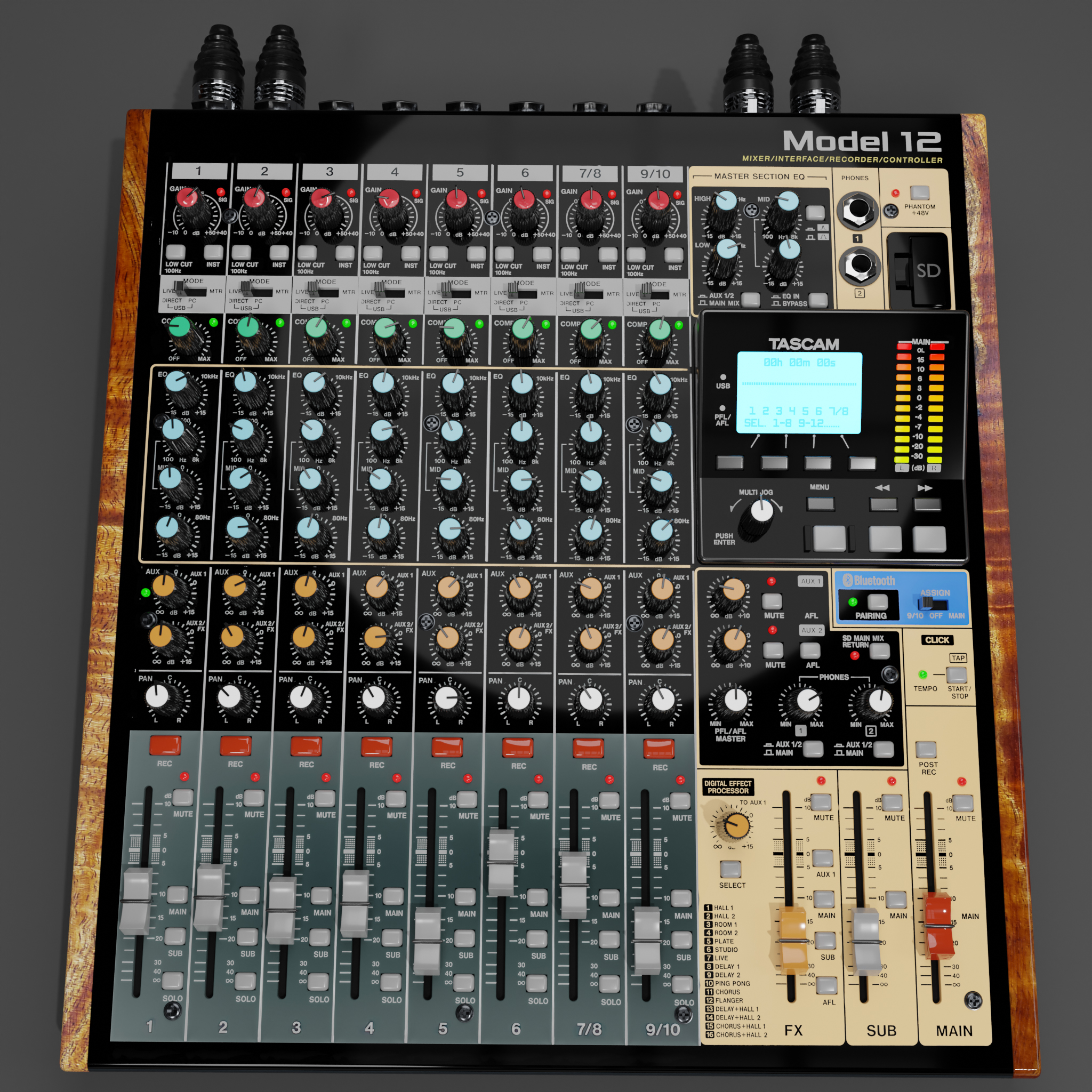 Es fehlt noch ein Mischpult und eine aufnahme station! aber zum glück ist das TASCAM Model 12 beides in einem sozusagen ein kleines Audio Studio.