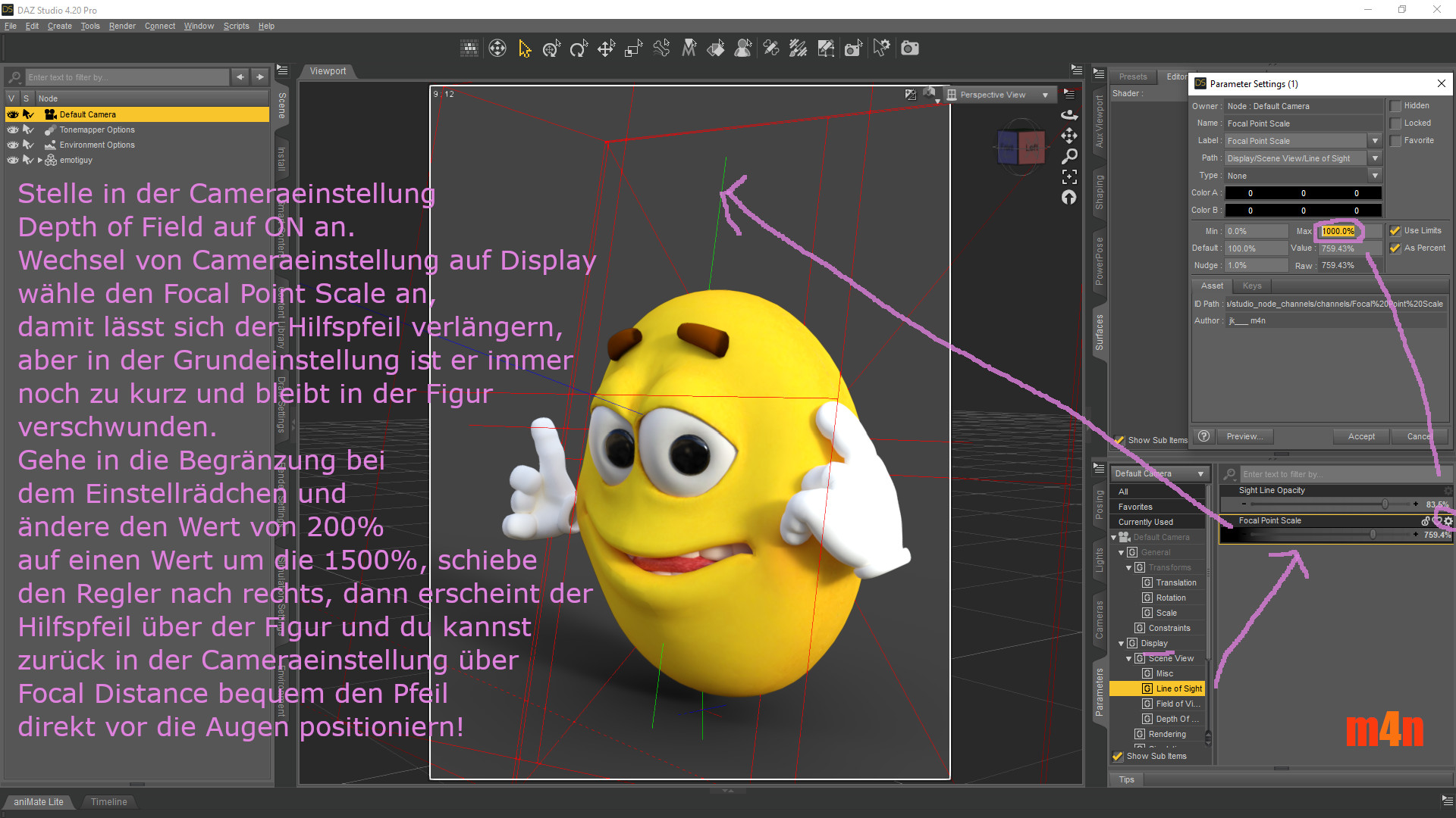Hilfspfeil zur besseren Positionierung des Depth of Field