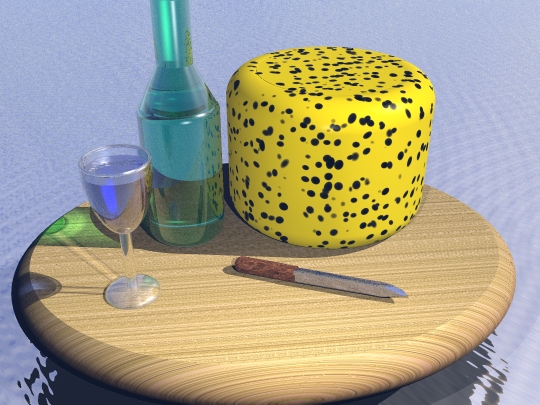 Jaah, ich hab das Bild eigndlich nur für die Schule gebraucht, aber find trotzdem dass es ganz gut geworden ist. Zur erklärung: Der komische gelb-schwarze Klotz soll Käse sein, hab keine gscheite Textur gefunden... Naja, macht euch euer eigenes Bild (Zum Rendern hätt ne größere Version des Bildes bei meinem Oldie-PC zu lange gebraucht