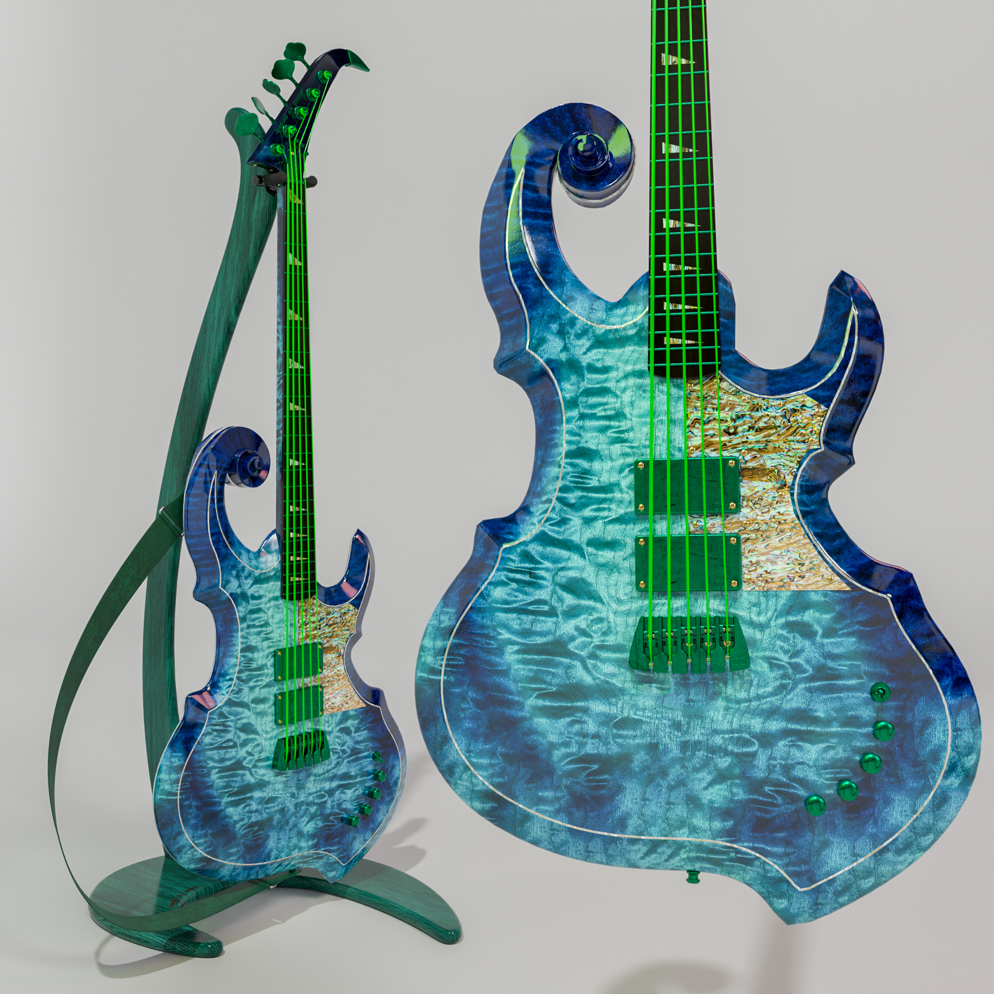 dieser ausergewöhnliche Elecktro Bass ist ein Knaller in sachen farbe und durch seine Neon nylon Saiten hat er einen Butterweichen Klang und verzückt auch die härtesten Holzköpfe. der Bass ist einfach ein sanestückchen.