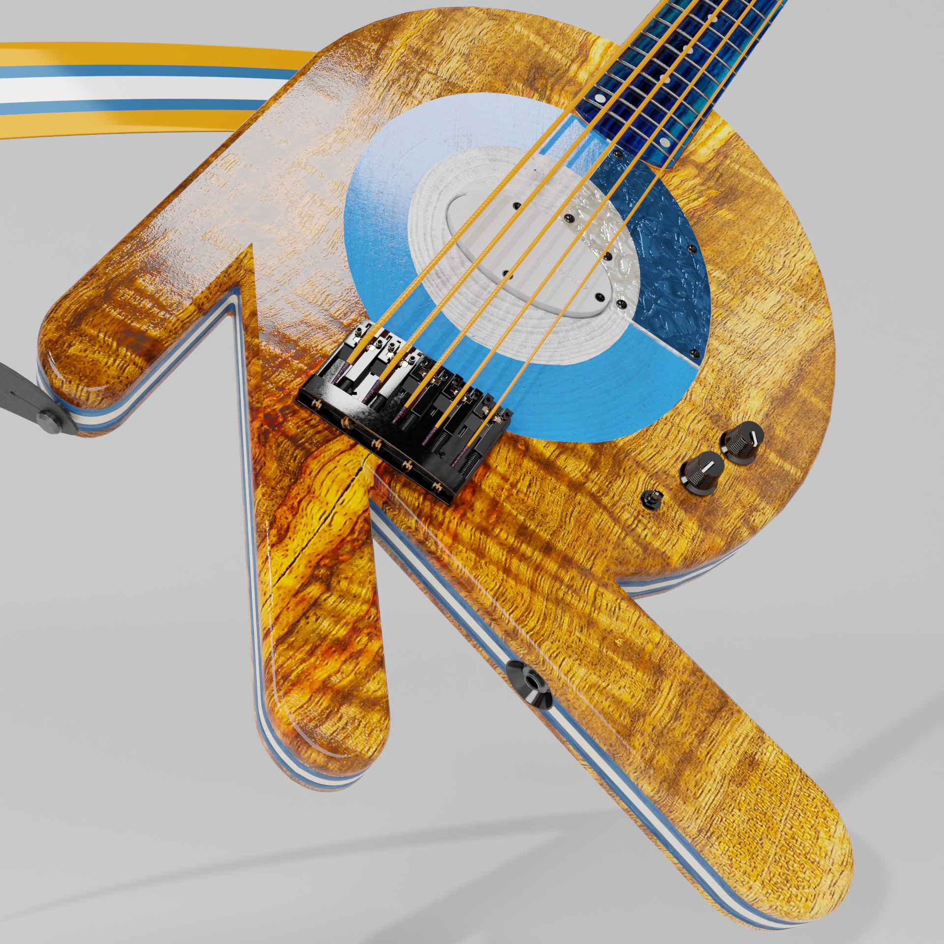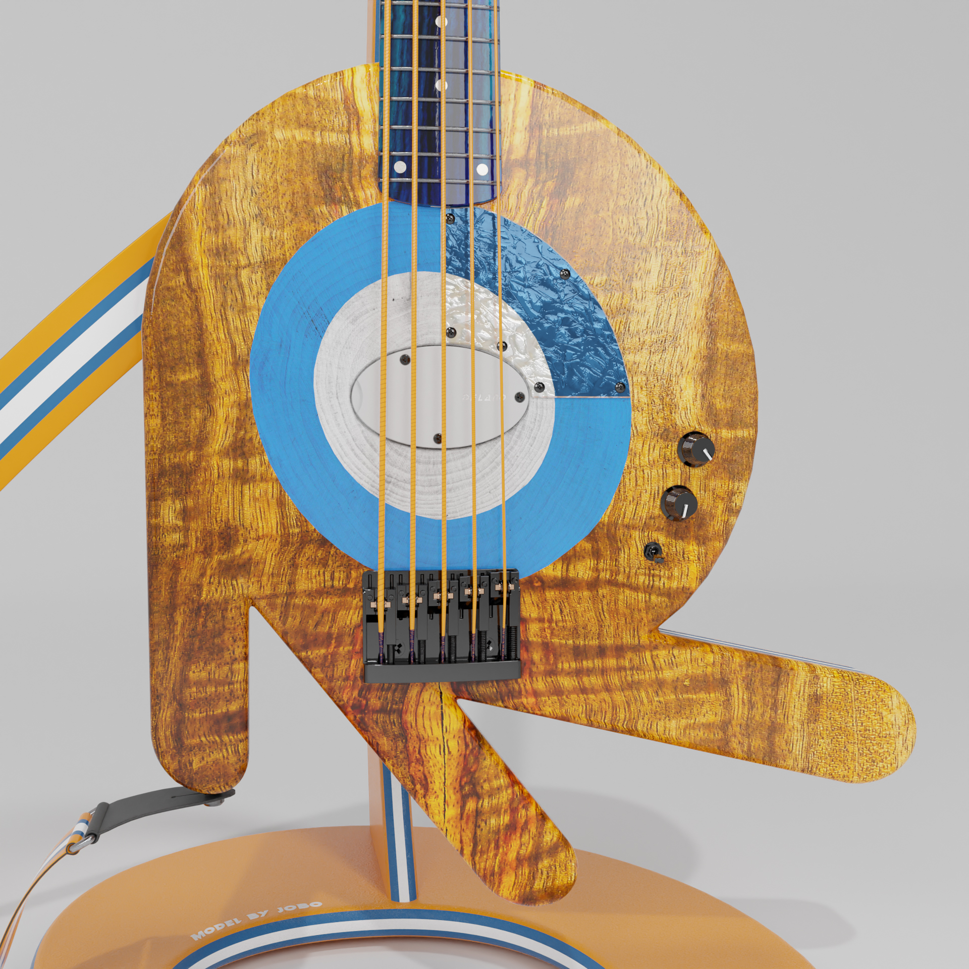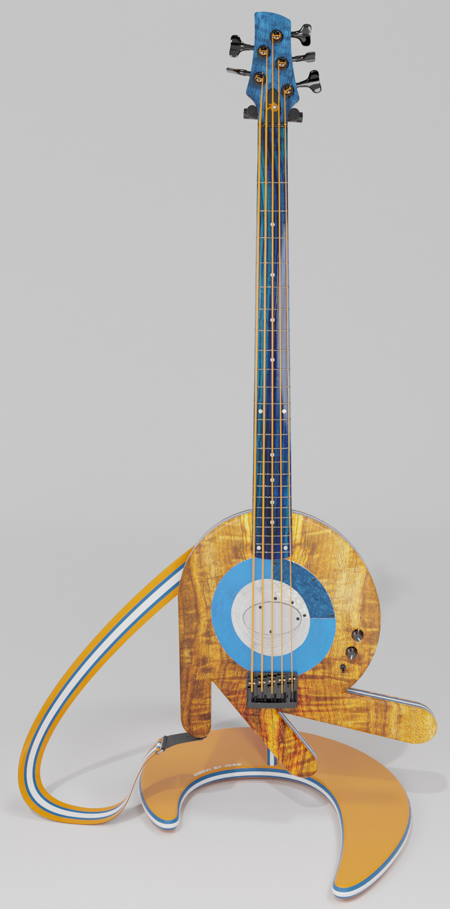 Ich habe versucht einen Blender Elecktro 5 Saiten Bass zu modelieren ohne die ernsthaftigkeit dieses Hobby in frage zu stellen, alle Materialien und technischen teile können so im Fachhandel gekauft werden oder auf wunsch produziert werden so zum beispiel die DR Strings Neon Orange NOB5-45 E-Bass Saiten. das Holz des Korpus ist orange gefärbtes Coal tonewood. der Pickup von DELANO ist pasiv so das auf eine wartungs intensieve Batterie verzichtet werden kann.Brücke und stimmmechaniken sind von Schaller, die roler nut ist eine entwicklung von Les Paul. der Gitarren ständer ist von Bulldog. Ich wünsche euch viel spass mit dem Modell und möge die Macht mit euch sein.