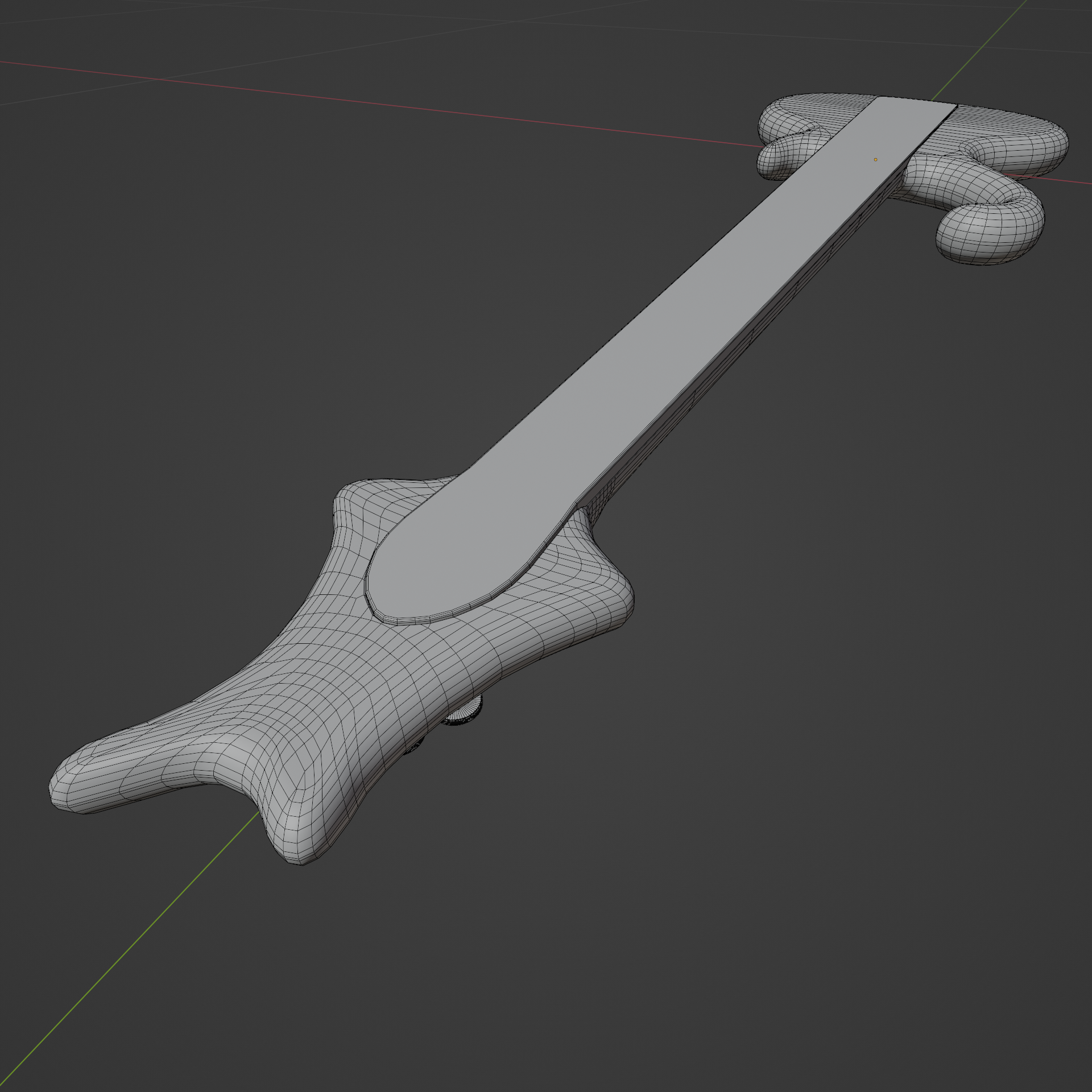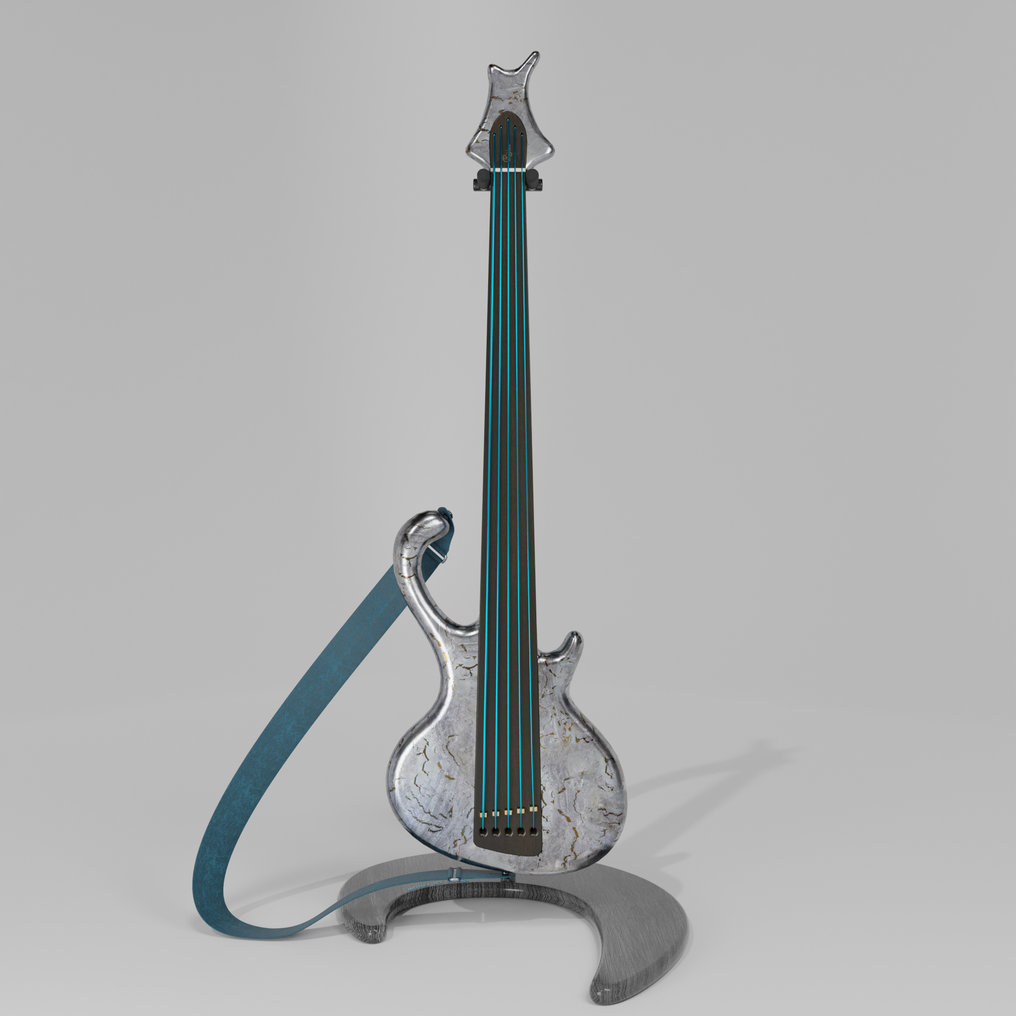 Dieses ist ein W.I.P. . sagt mal selber so ein Bass muss doch eigentlich von den Telerieten kommen, falsch der kommt direckt aus der feder des Instromentenbauers Jens Ritter als conzept hat er den Bass mindestens 6 mal gebaut in unterschiedlichen konstelationen bei dem den ich mir zum modellieren ausgesucht habe kommen Violette Bass Saiten zum einsatzt die der Herr Ritter selber gewickelt hat!