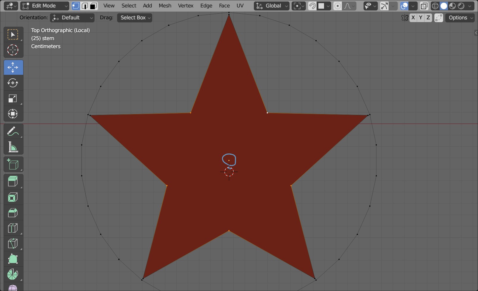 Das der Stern unsymmetrisch ist. ist möglich aber kann ich bei der Erstellung nicht erkennen, da ich den Origin Point exakt in die Mitte der selektierten