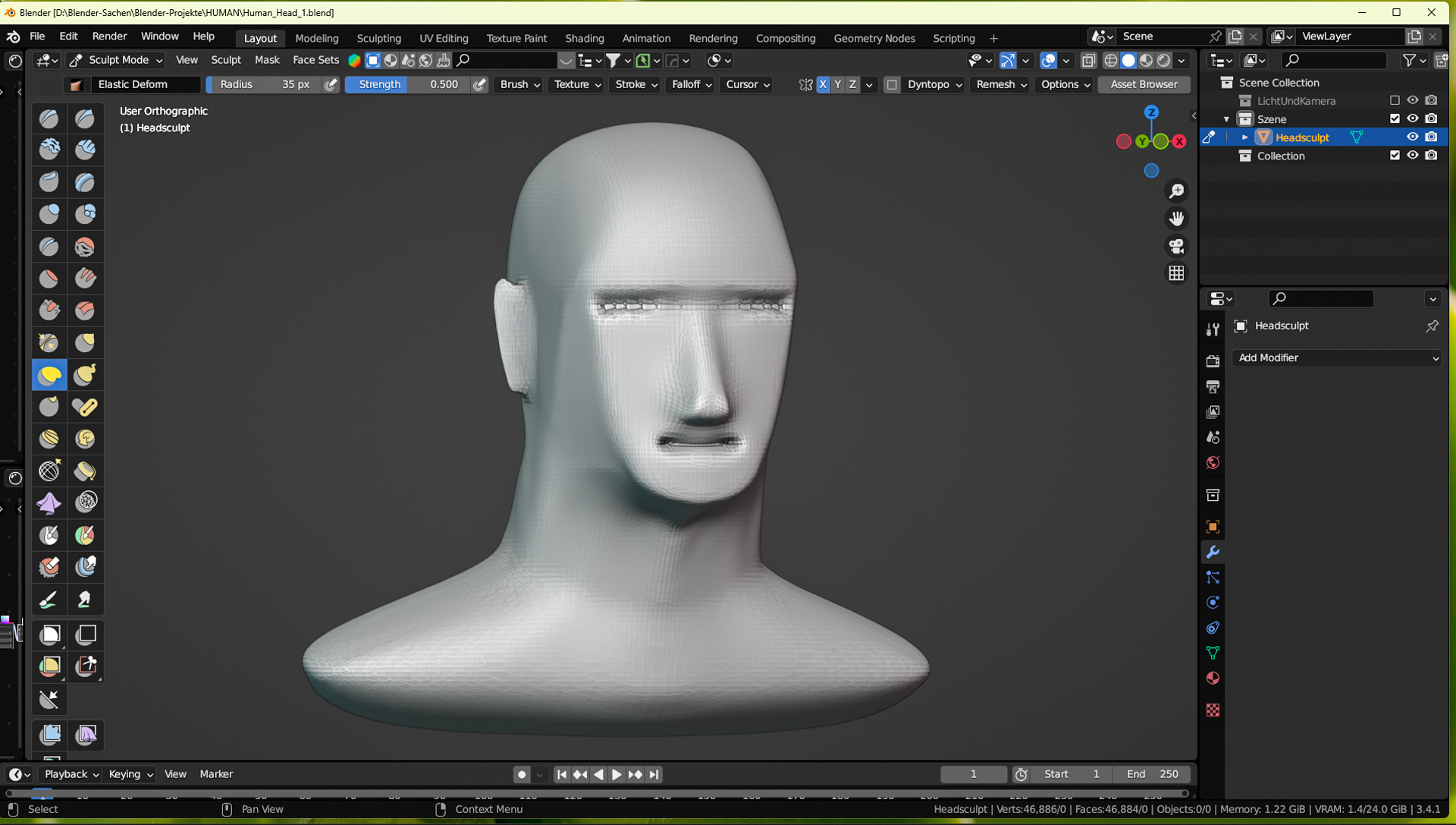 Ich habe den Basiskopf gleich zweimal komplett neu gemacht, da der erste mir irgendwie nicht gefiel.