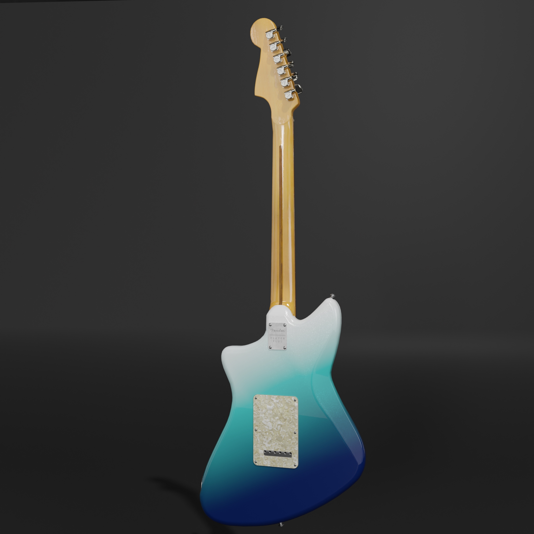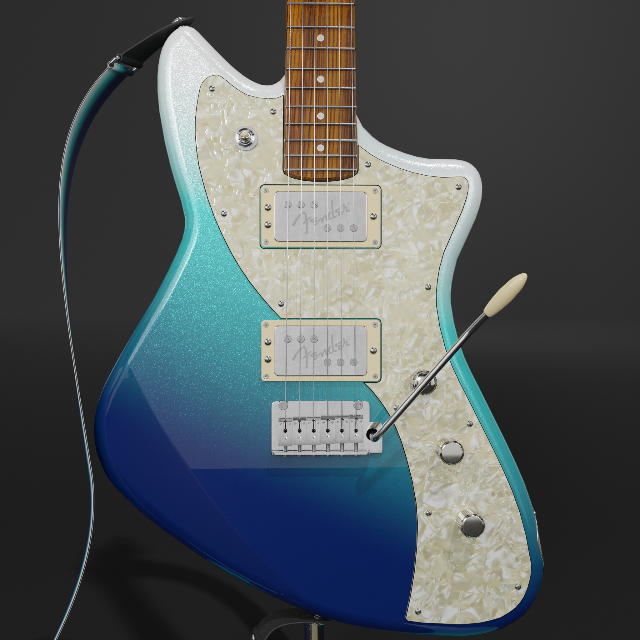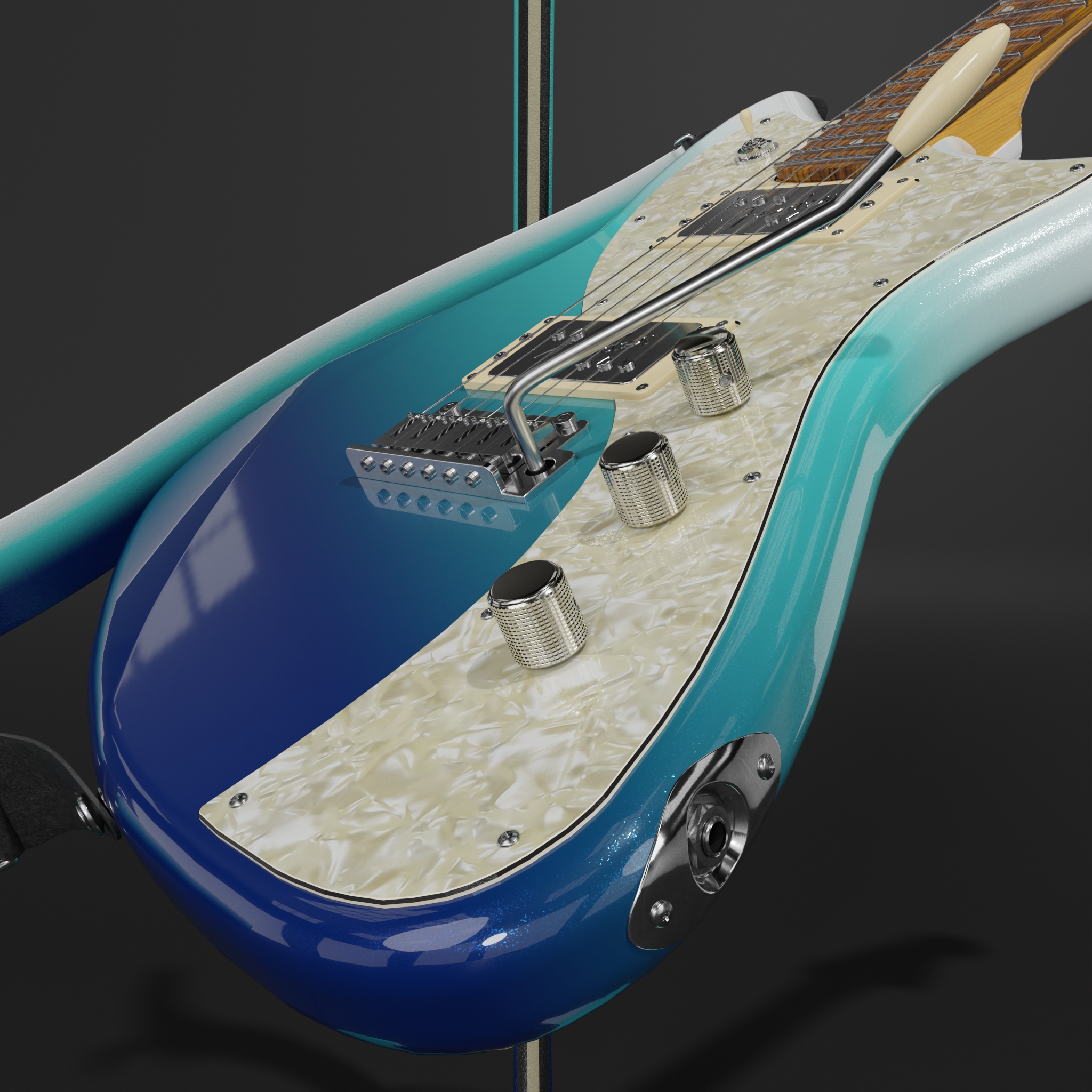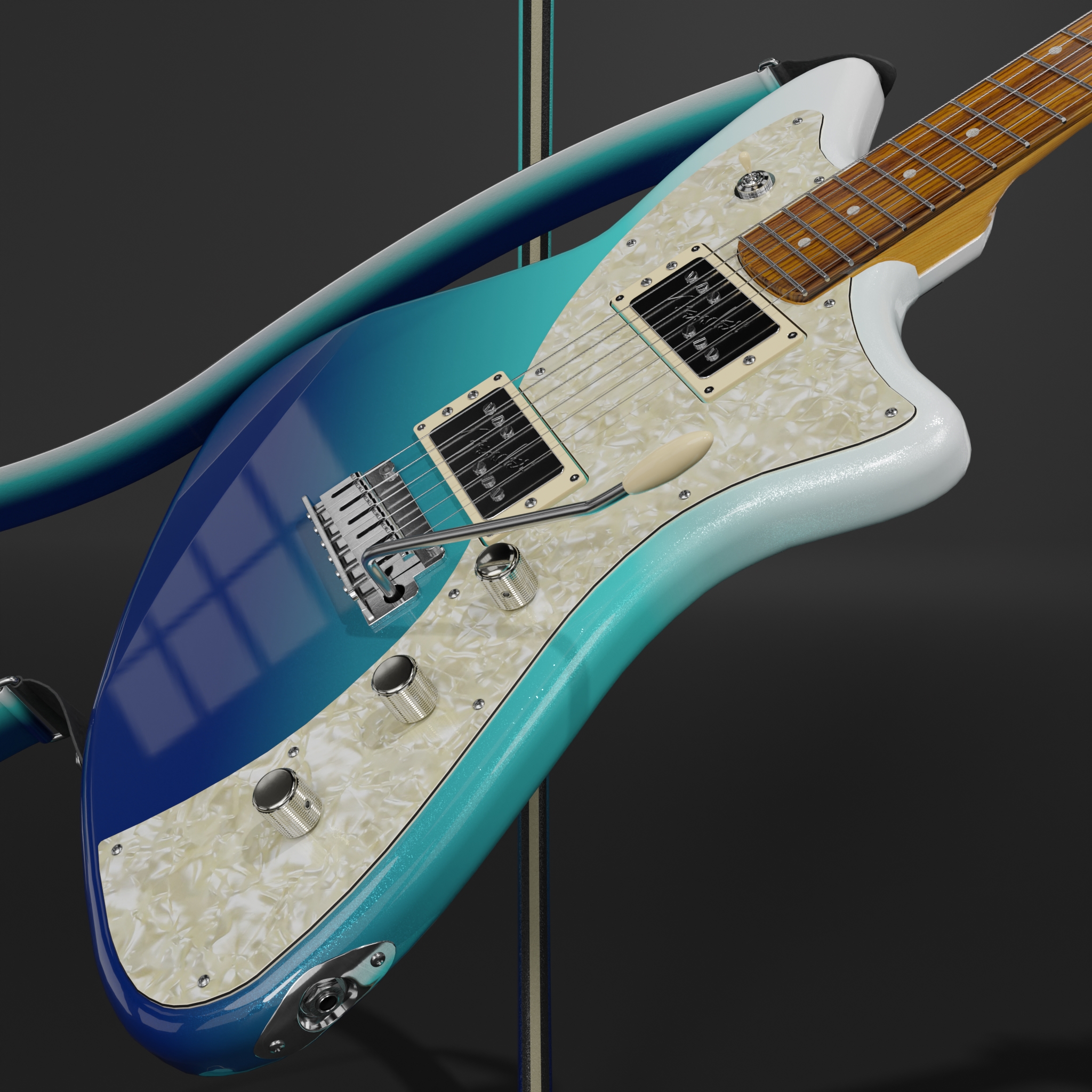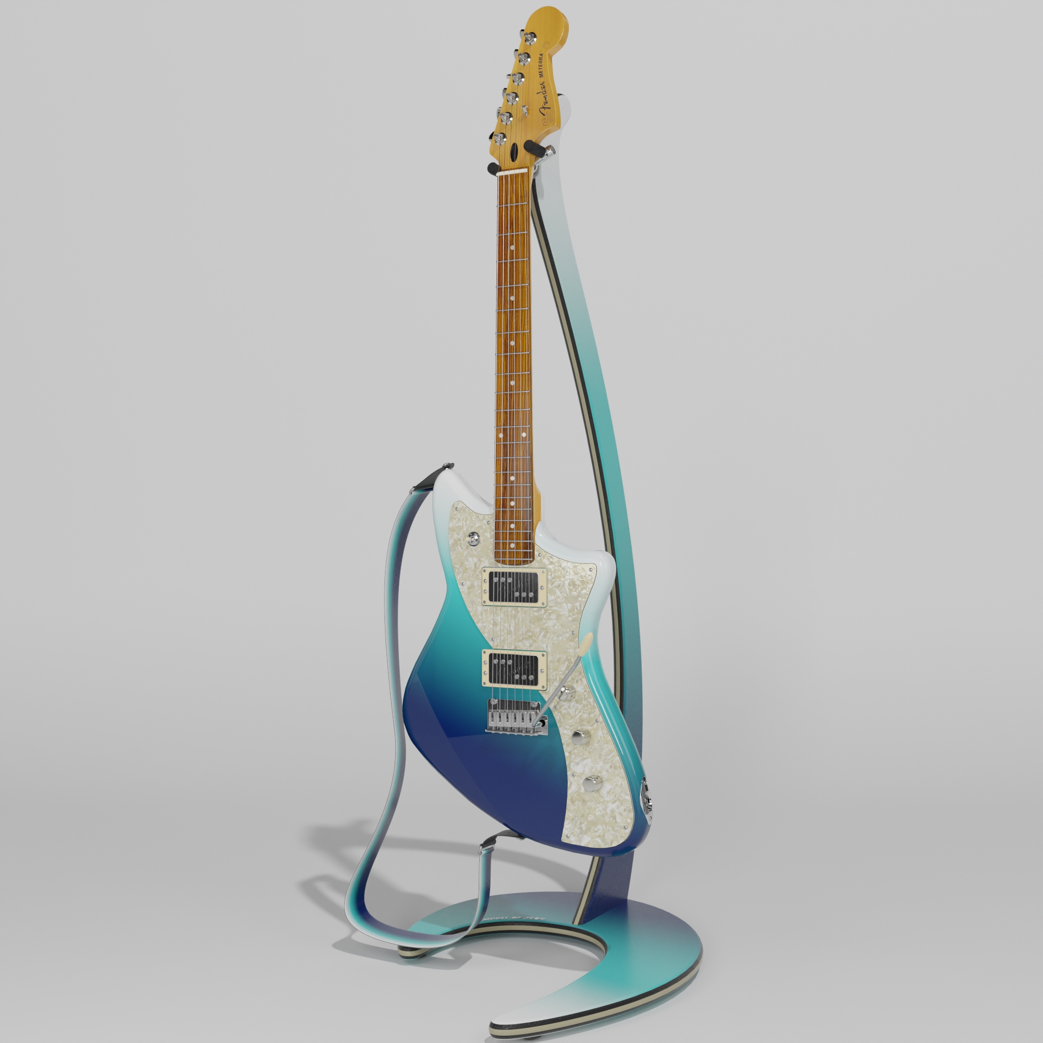 an einem gitarrenständer von Bulldog und mit Blender kurven kontroliertem Gitarrengurt.