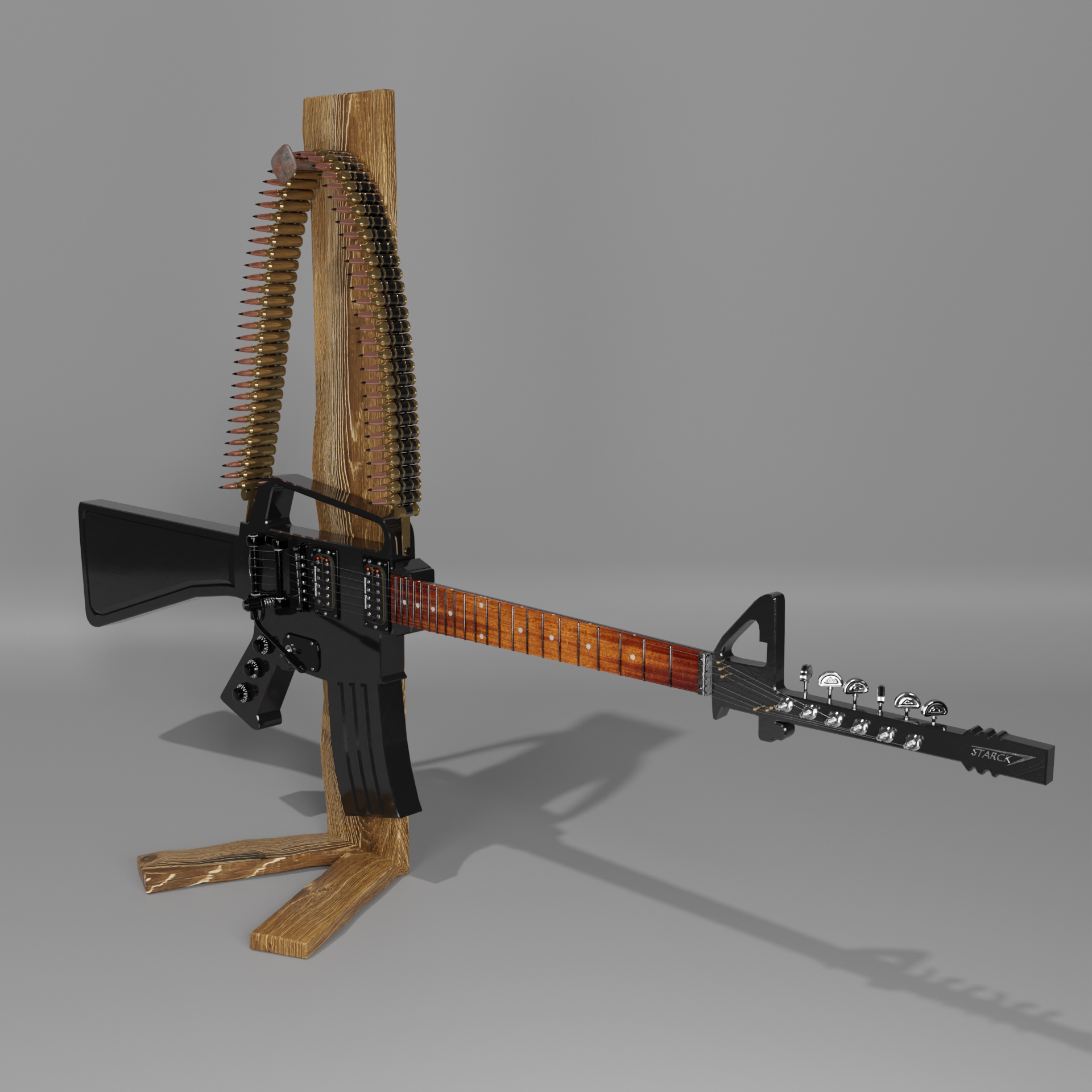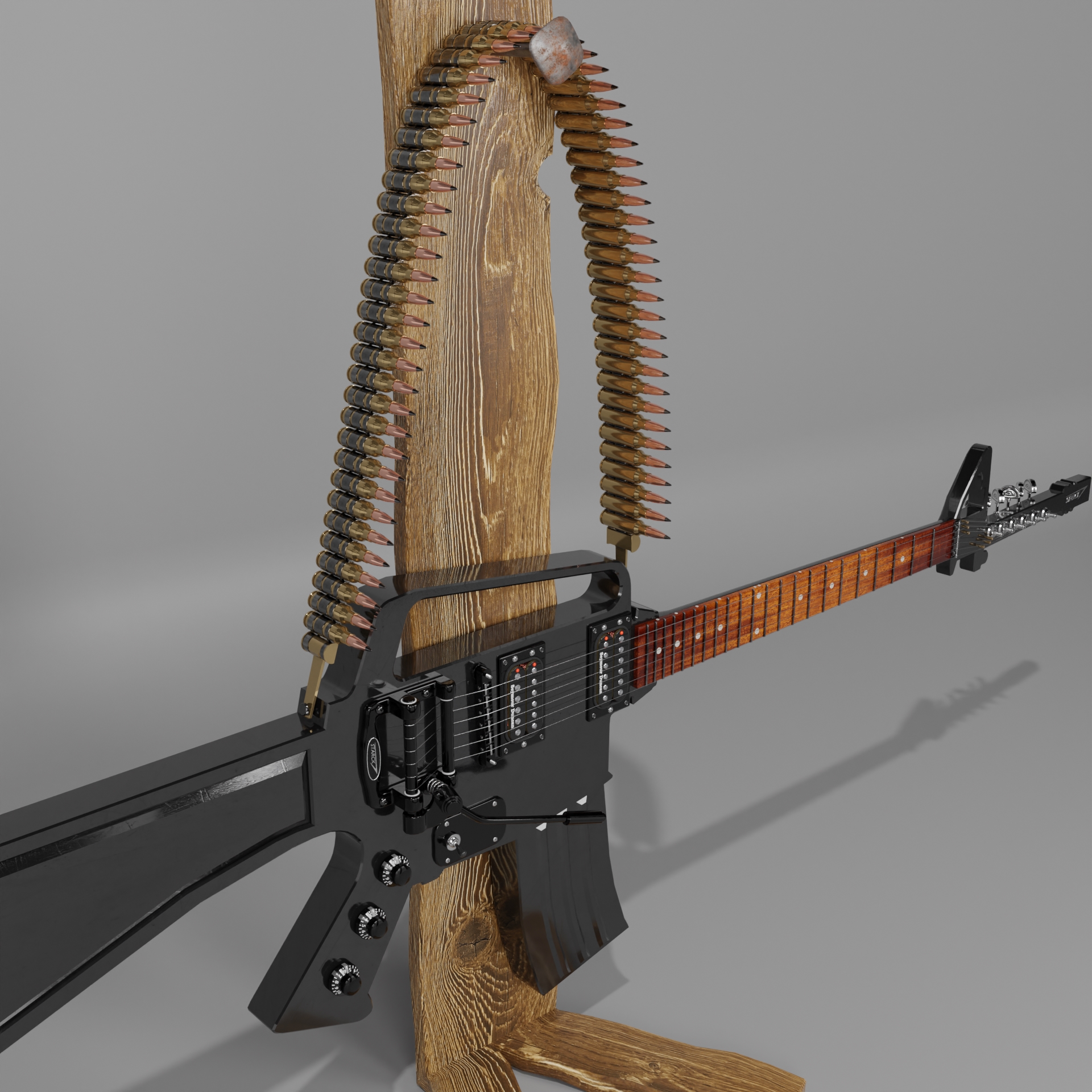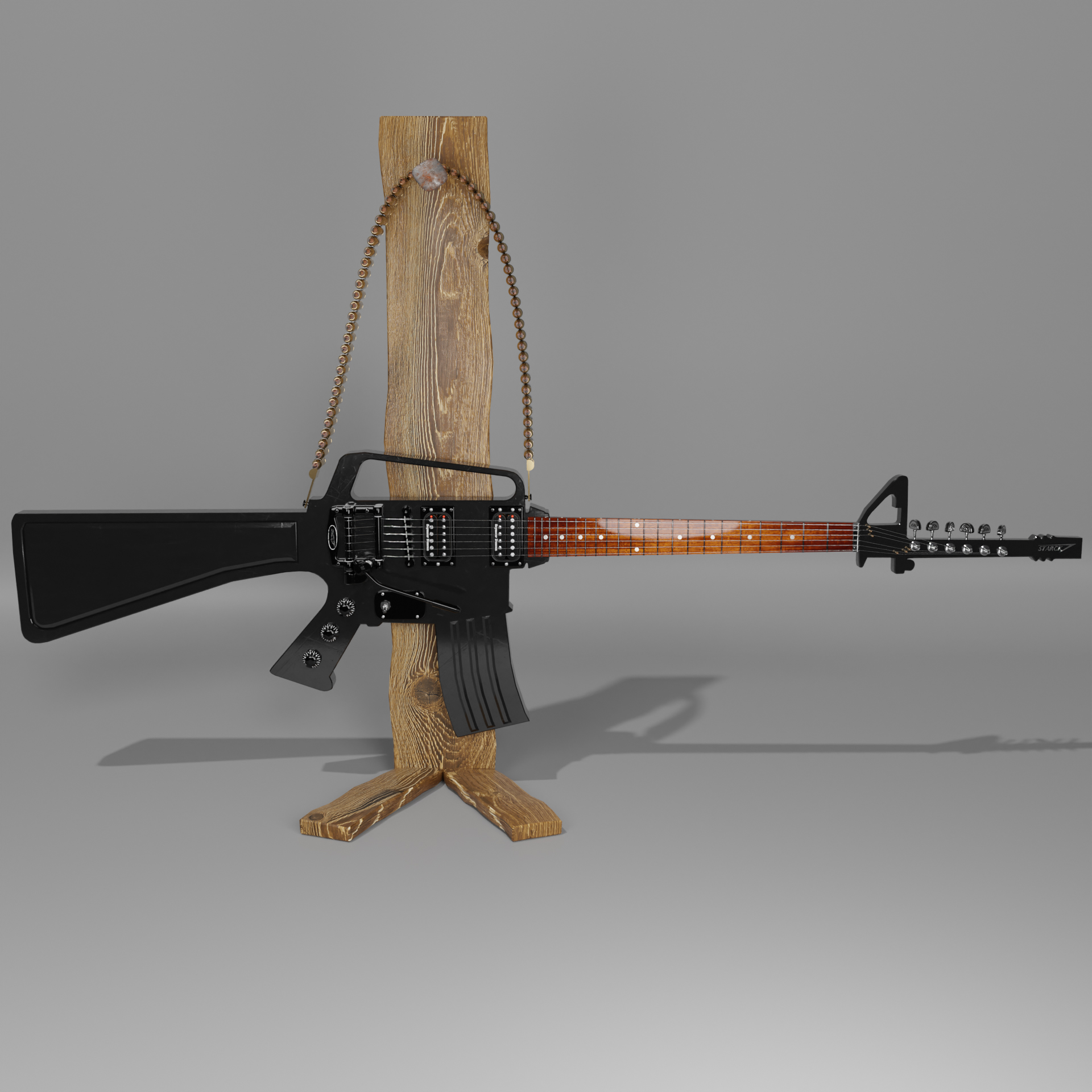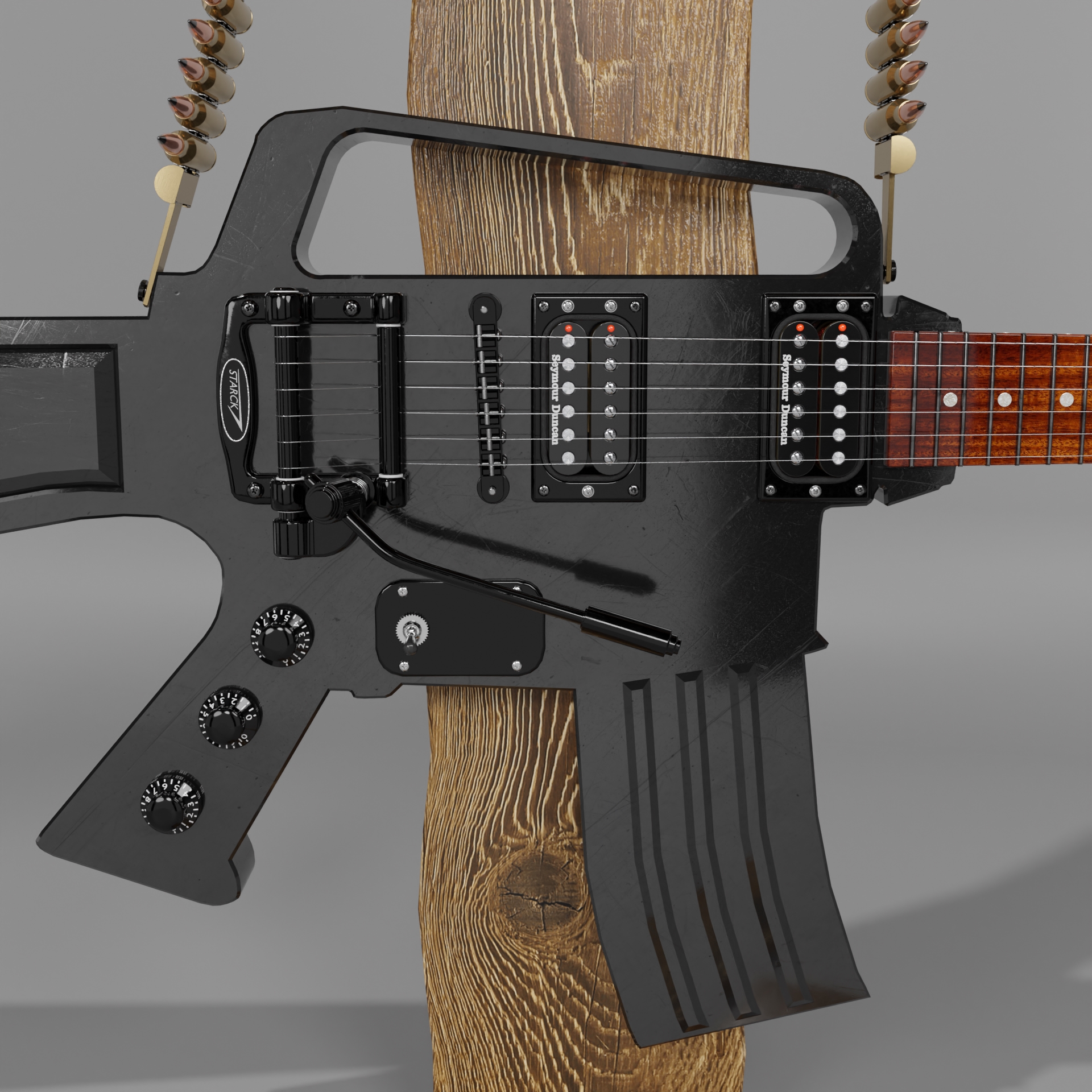 So oder so ähnlich wird wohl die gesichte sein von der Alten Aluminium Blech Gitarre. die Hat doch einfach jemand an den Alten Rostigen Nagel gehängt an einem Gitarrenstäner gemacht auch original Palisaden Holz! die verbaute Technik sollte bekannt sein.