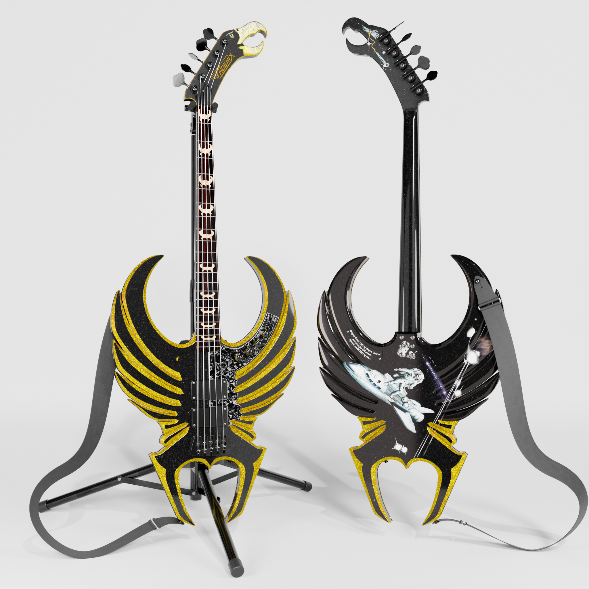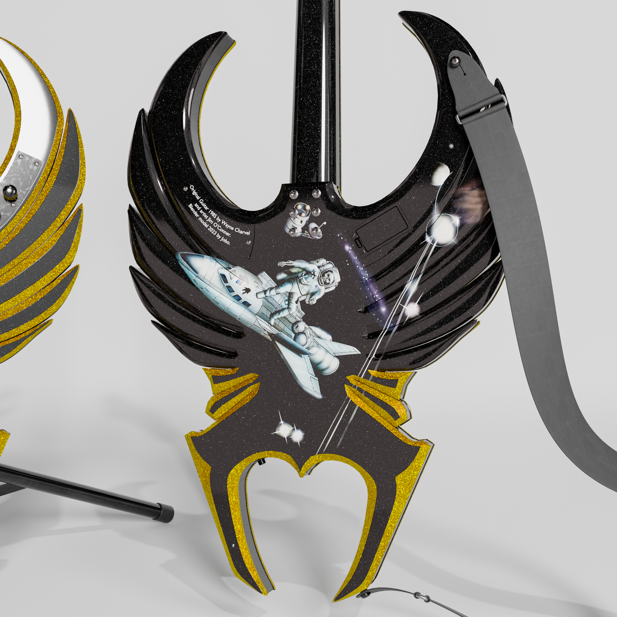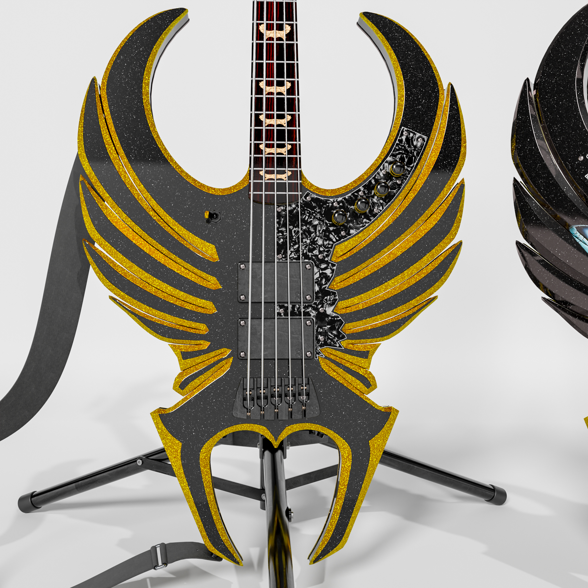 1985 gebaut, ist diese Gitarre im Original mindestens 10 000 USD wert. zumindestens was ich aus dem zugrunde liegenden Referenzmaterial entnehmen kann. Ich habe dieses Modell nicht original nachgebildet, sondern eine Modifikation erstellt. es ist ein 5 Saiten E-Bass mit der Hartware von Sandberg. Sandberg ist ein deutscher Gitarrenhersteller, der hochwertige E-Bässe und Gitarren herstellt. Das Unternehmen wurde 1986 von Holger Stonjek und Gerd Gorzelke in Braunschweig, Deutschland, gegründet. Sandberg-Gitarren sind bekannt für ihre außergewöhnliche Verarbeitungsqualität, Liebe zum Detail und vielseitigen Klang. Das Blender E-Bass 3D-Modell wird mit einem dreibeinigen Gitarrenständer und einem Gitarrengurt ausgeliefert. Du kannst mit der Steuerkurve (Strap Guiding Curve) die Form des Gitarrengurtes modellieren, die Länge des Gurtes kannst du mit dem Arry Modifiezierer von (Strap Segment) einstellen. Ich wünsche dir viel Erfolg mit deiner Szene, und seu dich nicht mir deine Arbeit zu zeigen. ich bin gespannt drauf.