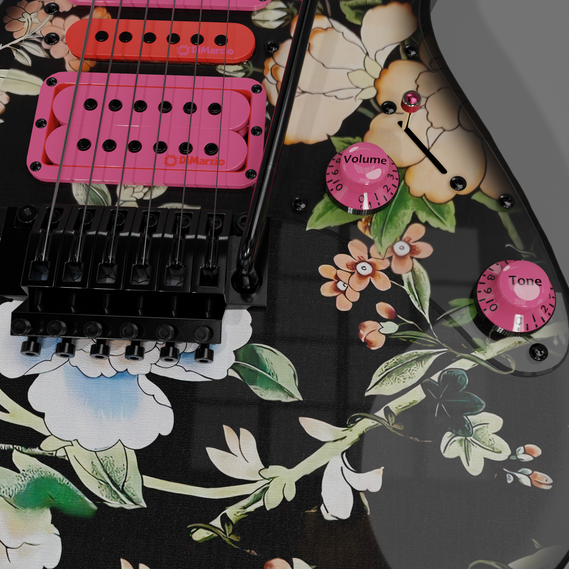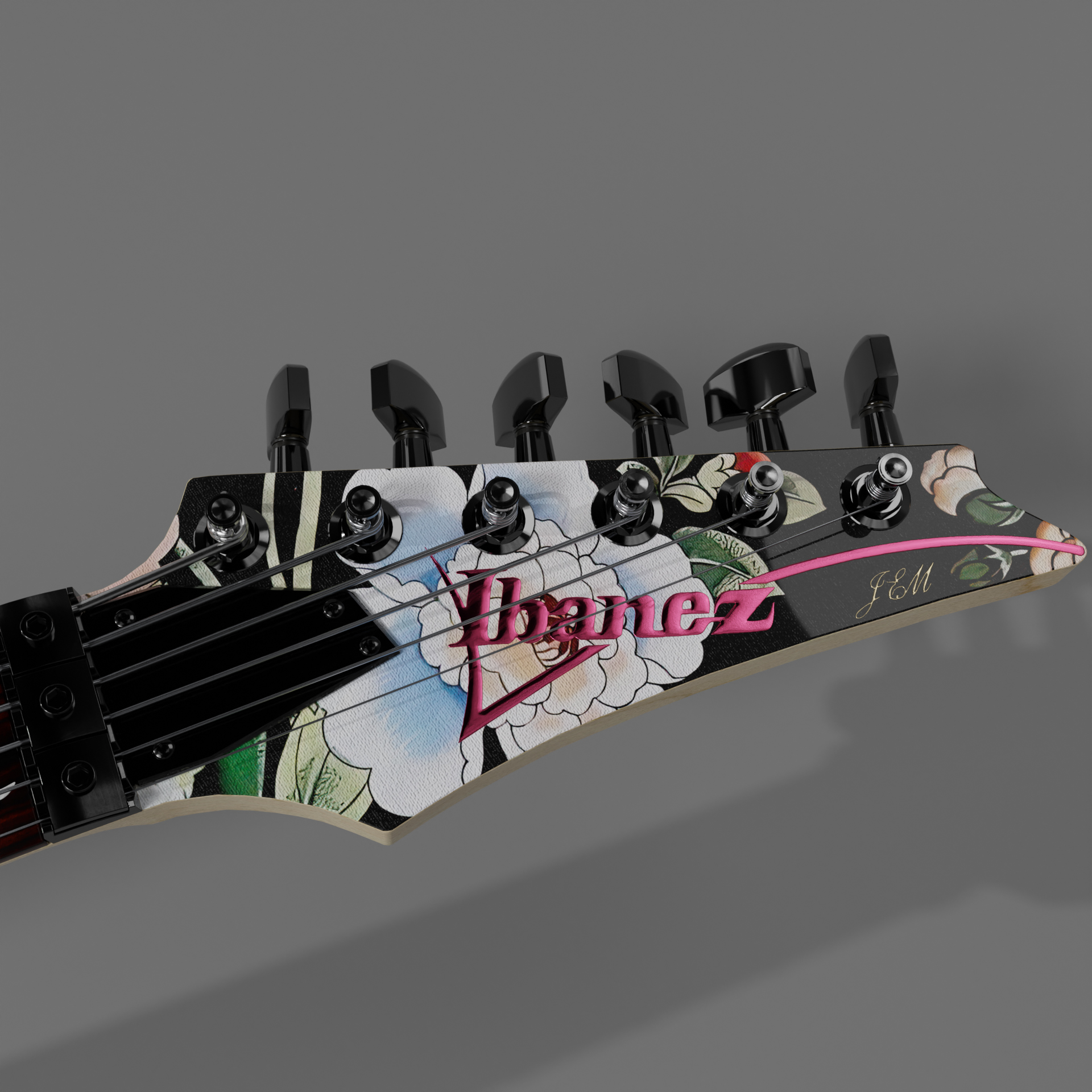 W.I.P. Ibanez Jem 77FP Floral Pattern - Black - Pink.
