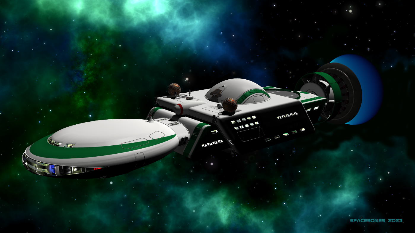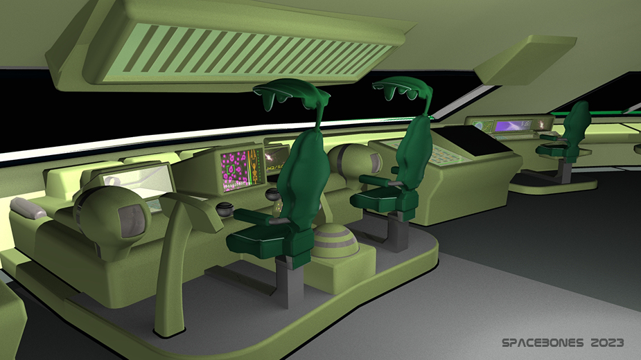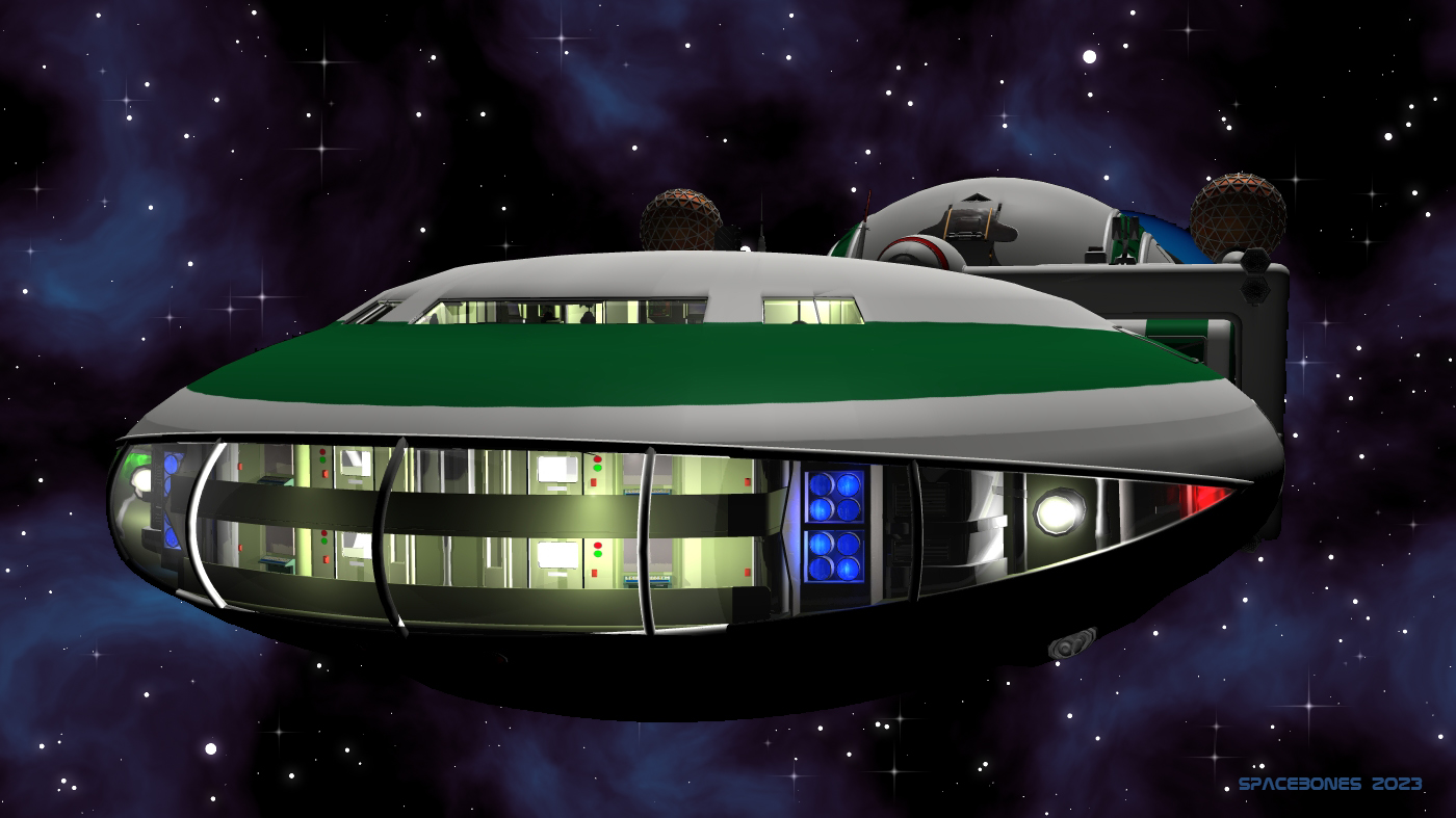 ja okay, das ist ein Argument, das einleuchtet. Und das mit der Schiene, auf der sie dann bei Bedarf ausgefahren werden können, ist 'ne gute Idee. - Geht auch aus dem Bild so hervor. - Dumm ist in dem Fall nur, wenn das Schiff von unten angegriffen wird, die Waffensysteme sich aber nur oben am Schiff befinden...