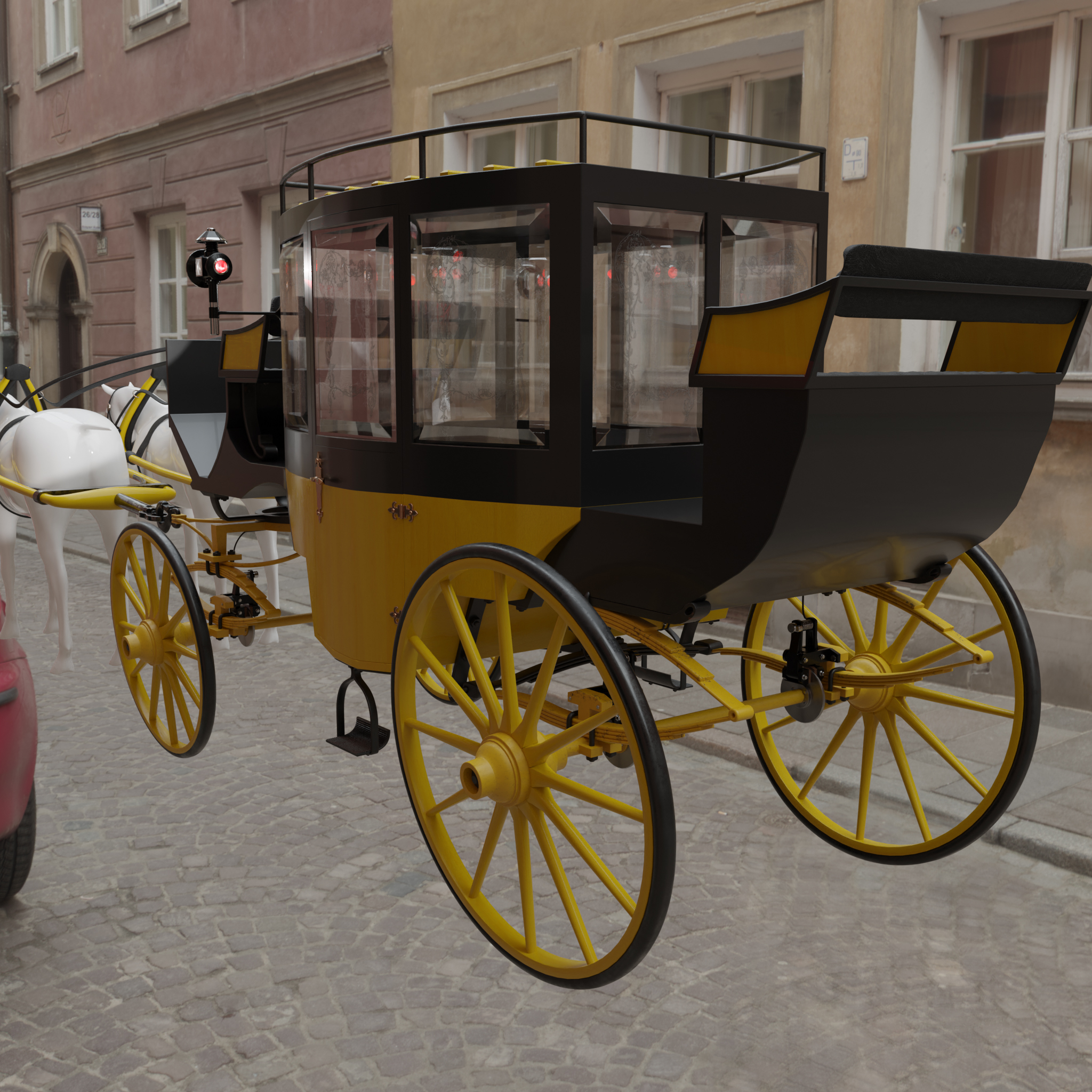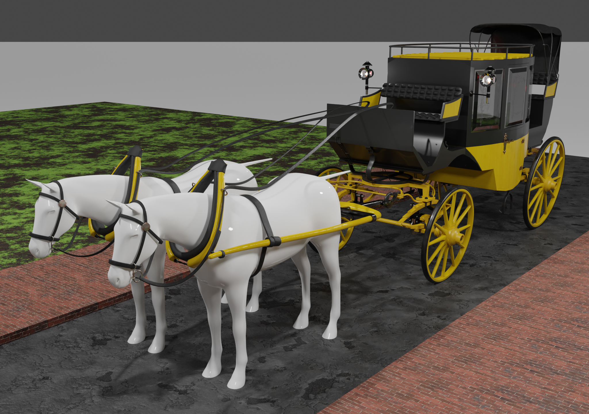 allerdings hast du den Rädern einen Sturz verpasst. Dies würde bedeuten, daß in oder unmittelbar an der Radnabe eine Gelenk sitzt was seinerseits von einem Querlenker gehalten werden müßte. Anders funktioniert das nicht. Ich glaube nicht, daß die Kutschen das früher hatten.
