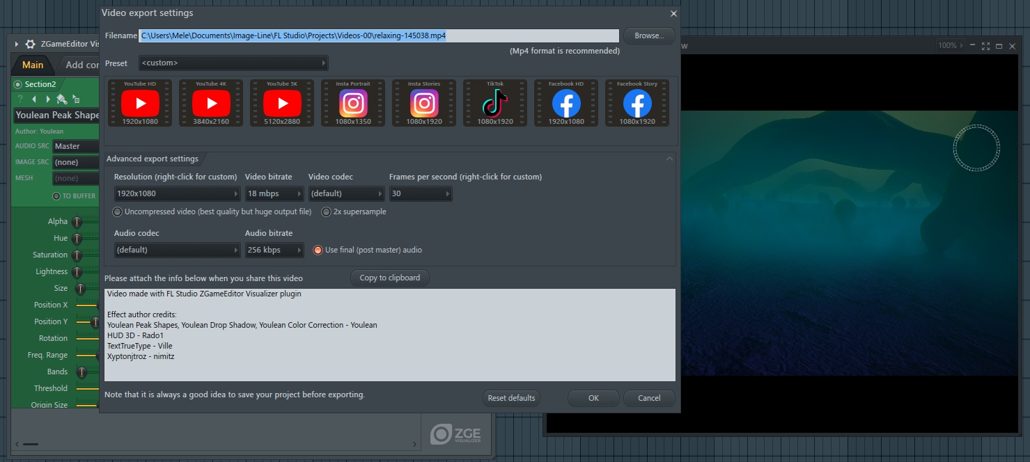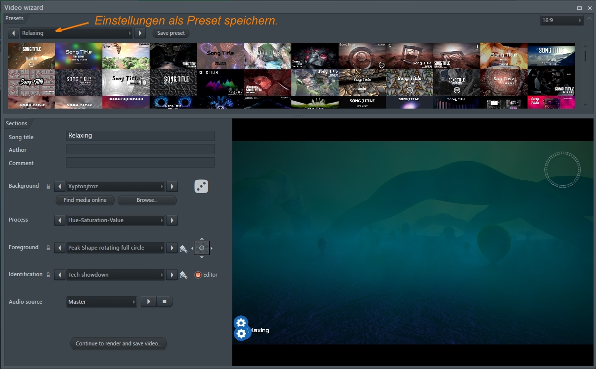 Das FL Studio richtet sich hingegen an eine andere Zielgruppe. In erster Linie an kleinere Musikproduzenten, die mit dem Studio nicht nur komponieren oder Aufnahmen verbessern möchten. Bietet deshalb als Nebenleistung halt auch einiges zur Gestaltung von Videos an. Jetzt habe ich mich in den letzten zwei Jahren sehr wenig mit beschäftigt, so das ich wieder nicht mehr weiß, wie es eigentlich ging. Doch ich habe noch einen älteren Screenshot als Erinnerungsstütze, nur vergessen den Weg aufzuschreiben.
