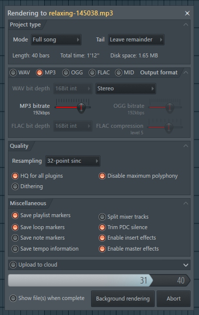 Danach kommt dann die Abfrage, wie die Musik gespeichert werden soll. MP3 ist ein Endformat, Wave ein Arbeitsformat, vergleichbar mit RAW bei Fotos. Im Wave Format bleiben alle Spuren erhalten, werden nicht komprimiert und lassen sich in einer anderen DAW weiterverarbeiten. Bei einer MP3 werden alle Töne zu einem Brei komprimiert. Das ist am Ende zwar so gut wie ein gutes JPEG Image, doch mit jeder weiteren Bearbeitung ist mit einem Qualitätsverlust zu rechnen.