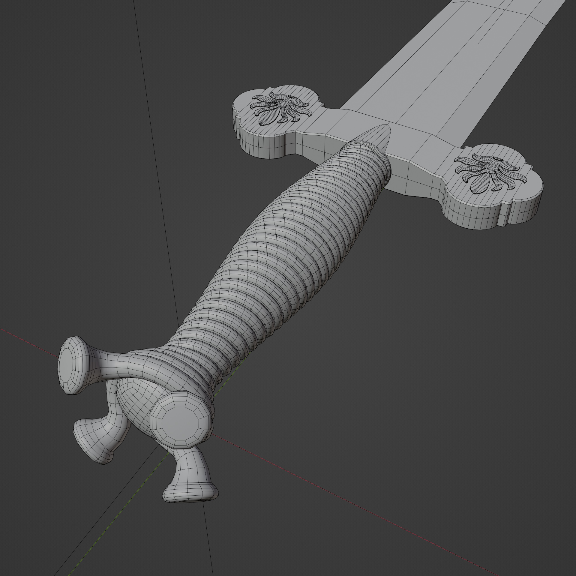 Ich habe die Parier, das Heft und dessen textur überarbeitet das Mesch ist jetzt N-gon frei.