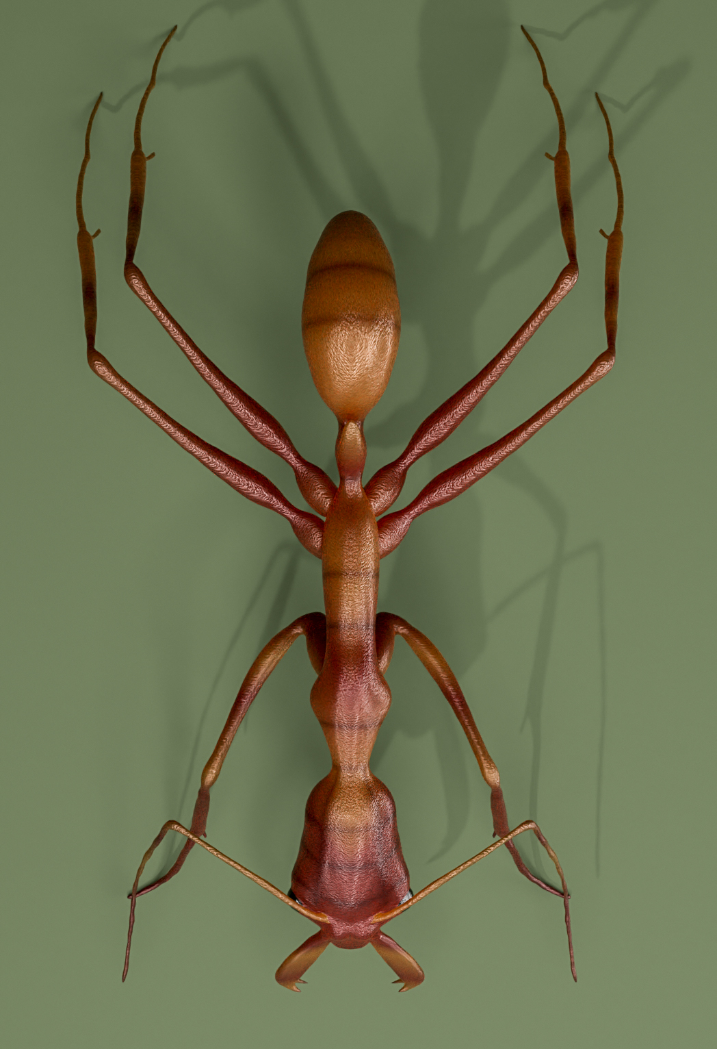 ZitatWir beschreiben eine neue Art 2020 , die zu den größten bekannten der Gattung Odontomachus gehört. Die neue Art, Odontomachus davidsoni Hoenle, Lattke & Donoso, sp. nov., wird von Arbeiterinnen und Königinnen beschrieben, die in Tieflandwäldern in der Bioregion Chocó-Darién an der Küste Ecuadors gesammelt wurden. Charakteristisch für die Arbeiterinnen sind ihre gleichmäßige rötliche Färbung, ihre große Körpergröße (Körperlänge 16–18 mm) und die Streifung an der Kopfvorderseite, die bis zum Hinterhauptsrand reicht. das Modell ist mit 126 Knochen geriggt und in jedem Glied animierbar. ich wünsche euch viel spass mit dem modell und mögen eure scenen gelingen.