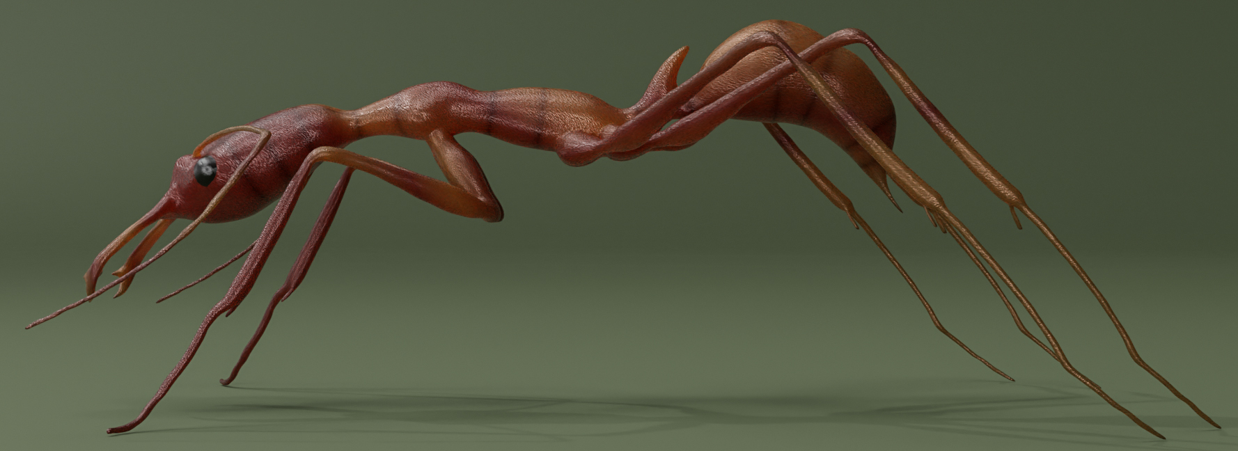 Wir beschreiben eine neue Art 2020 , die zu den größten bekannten der Gattung Odontomachus gehört. Die neue Art, Odontomachus davidsoni Hoenle, Lattke & Donoso, sp. nov., wird von Arbeiterinnen und Königinnen beschrieben, die in Tieflandwäldern in der Bioregion Chocó-Darién an der Küste Ecuadors gesammelt wurden. Charakteristisch für die Arbeiterinnen sind ihre gleichmäßige rötliche Färbung, ihre große Körpergröße (Körperlänge 16–18 mm) und die Streifung an der Kopfvorderseite, die bis zum Hinterhauptsrand reicht. das Modell ist mit 126 Knochen geriggt und in jedem Glied animierbar. ich wünsche euch viel spass mit dem modell und mögen eure scenen gelingen.