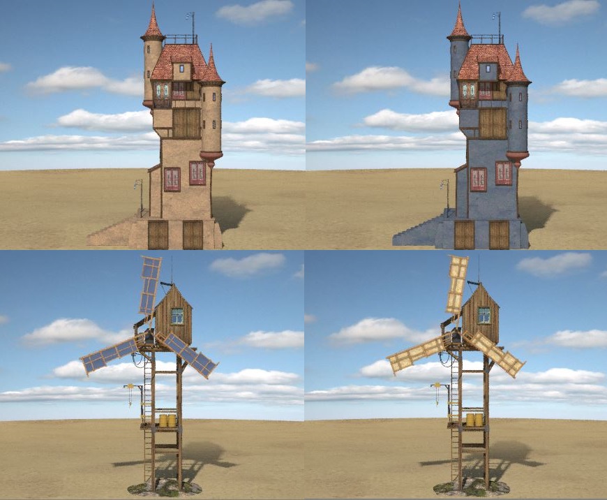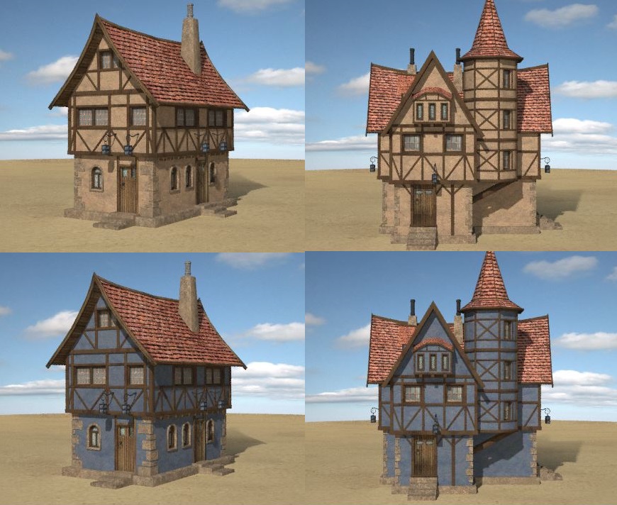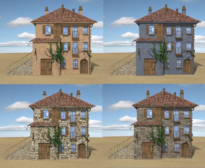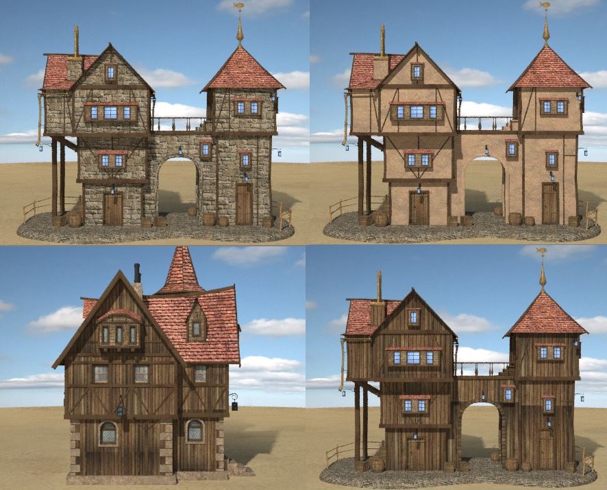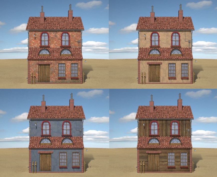 Hier sind Beispiele der Häuser in verschiedenen Texturen.