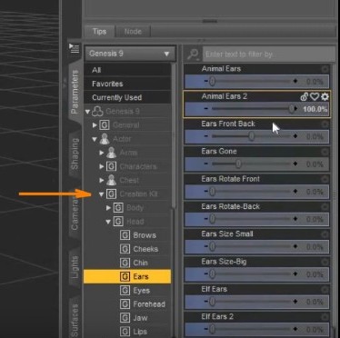 Morphs befinden sich in Parameters/Actor/Creation Kit/