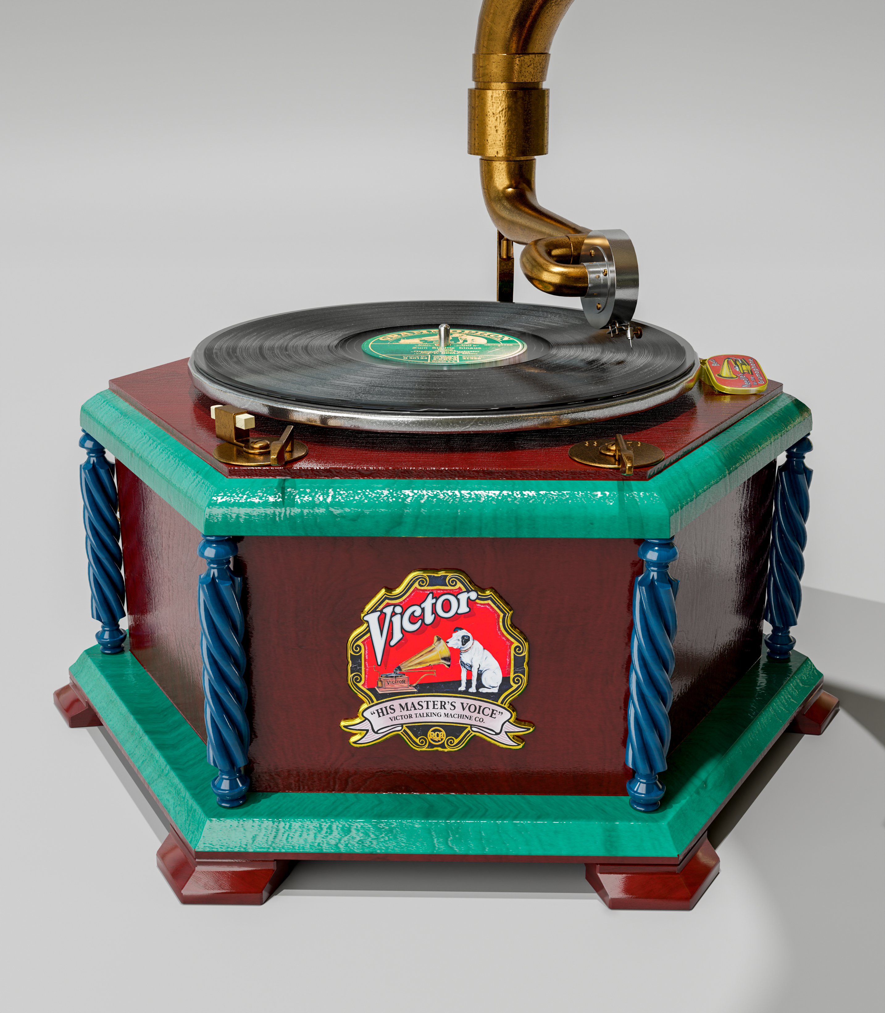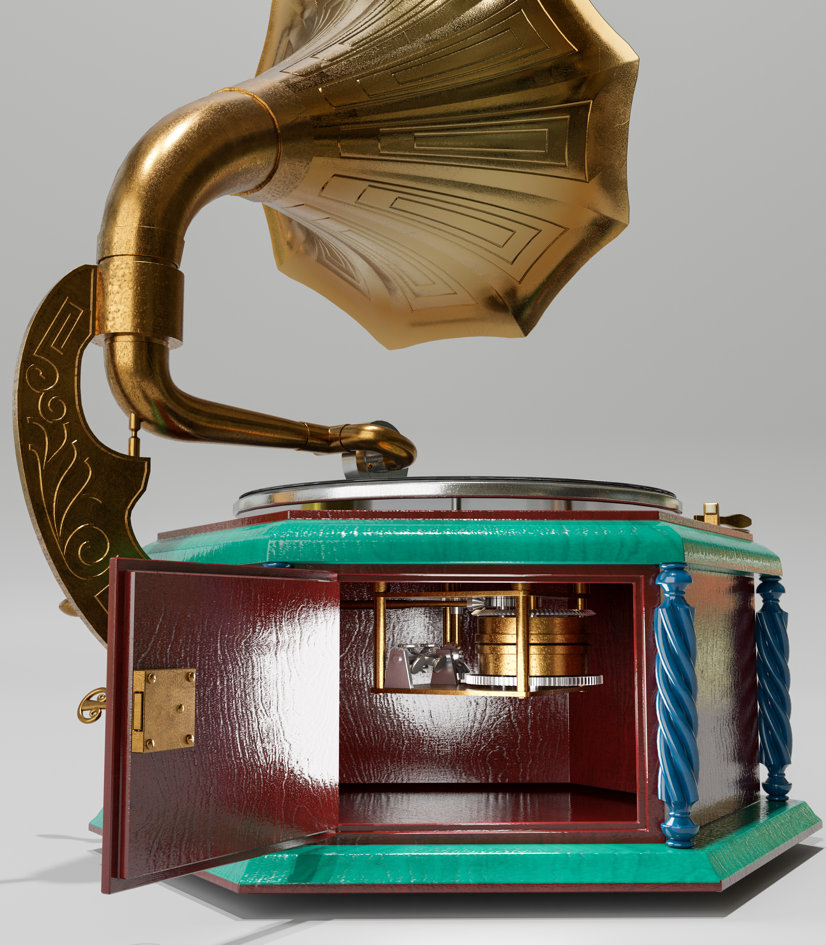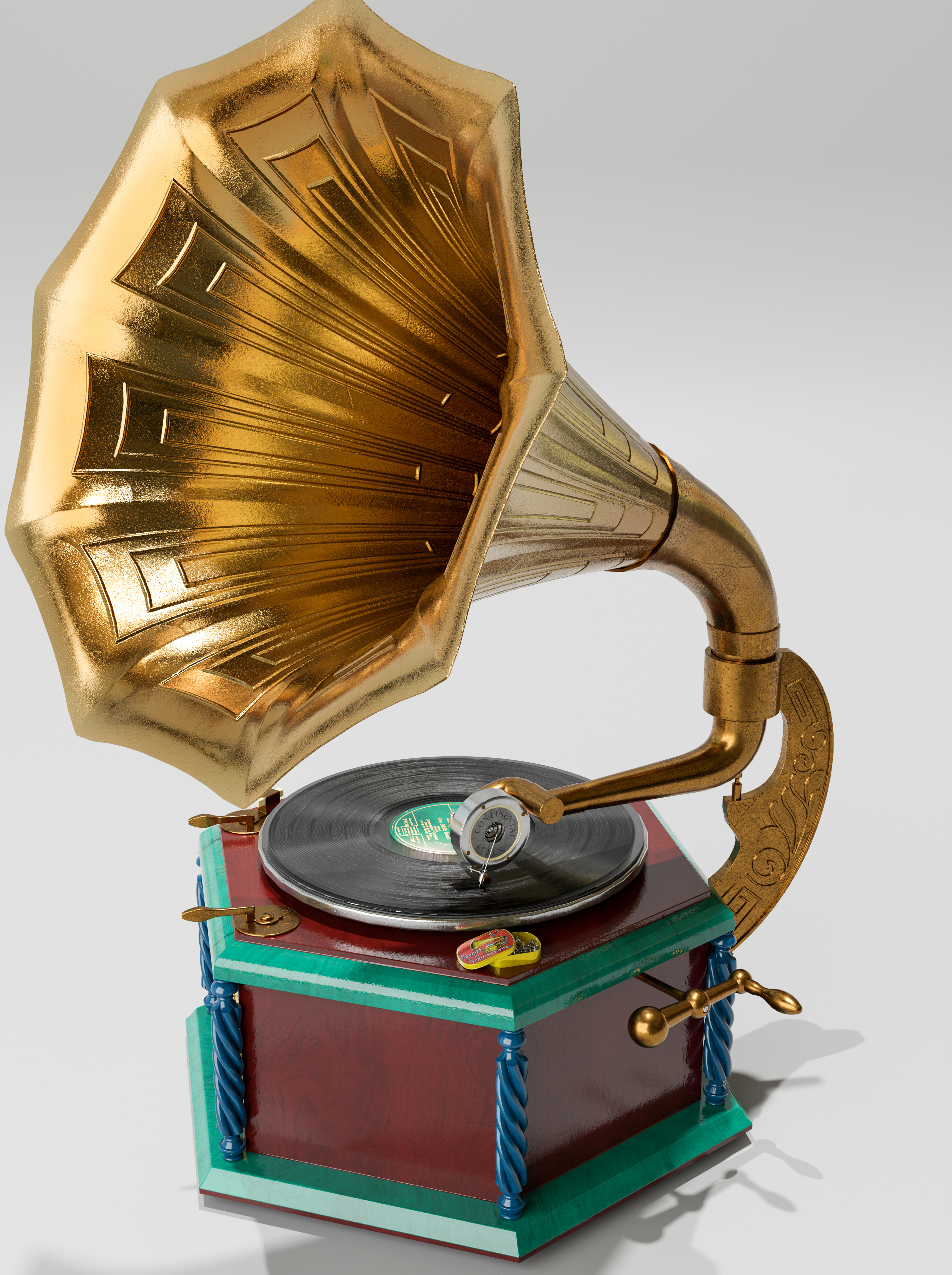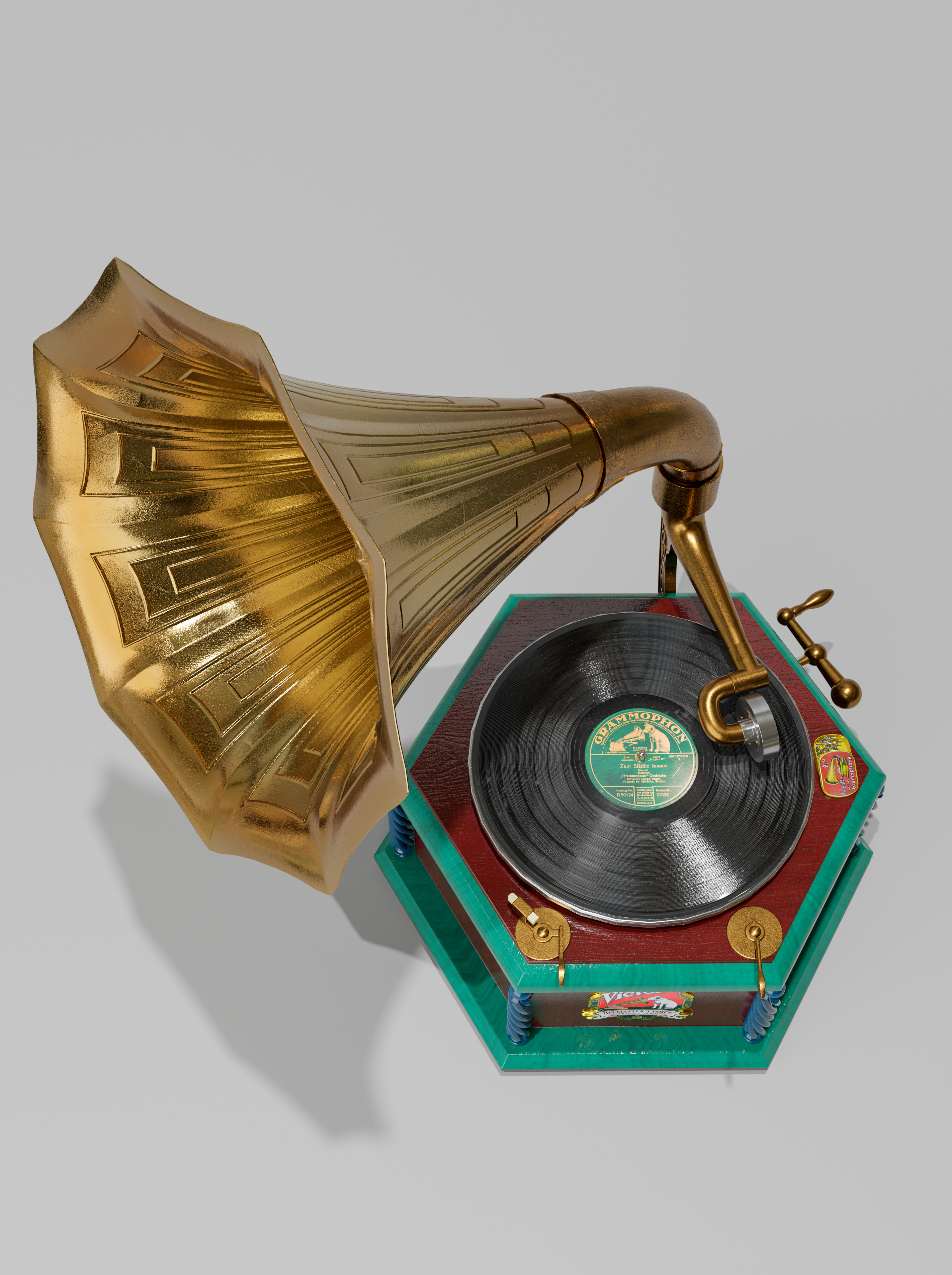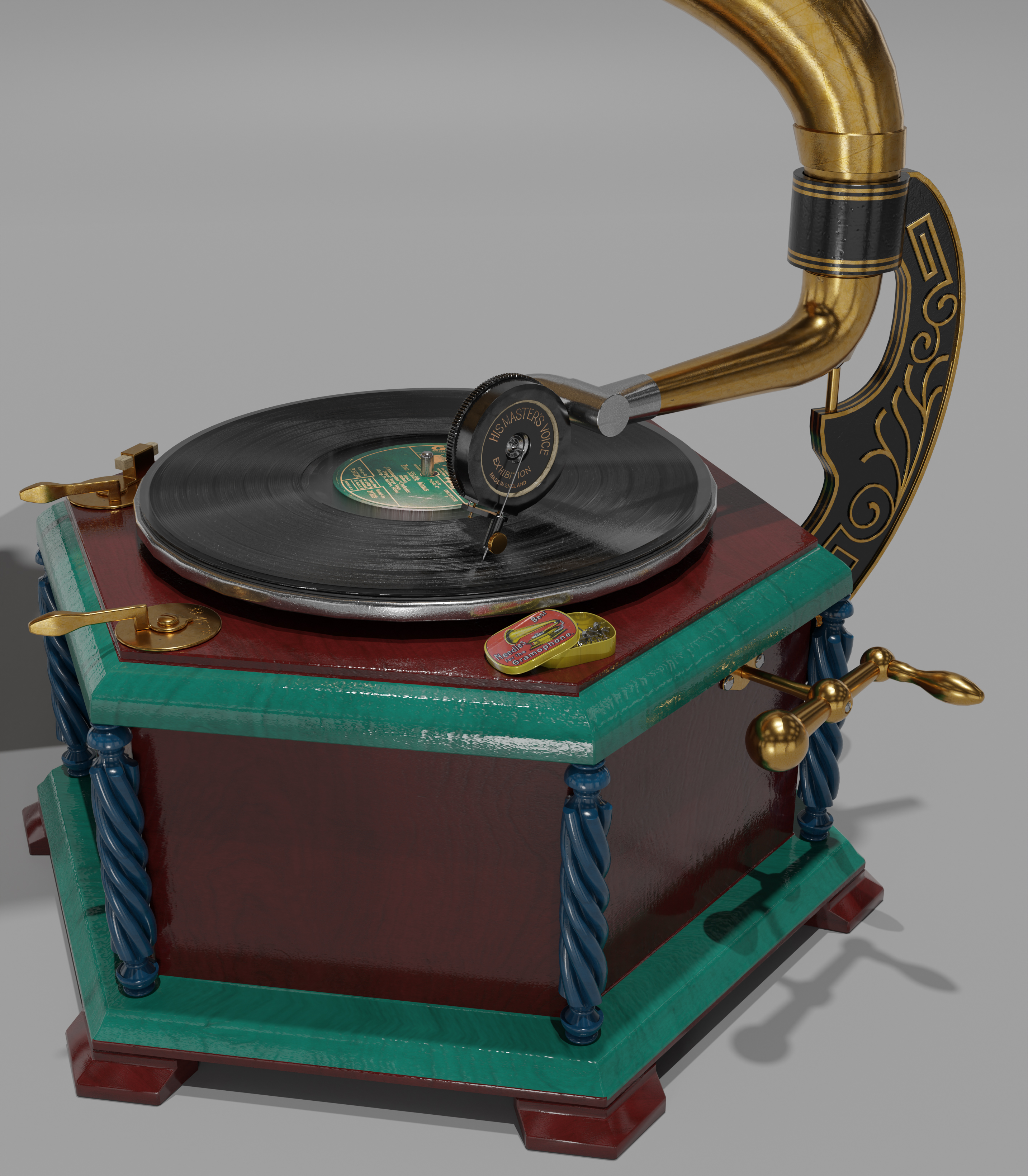 hier stelle ich mein neuestes Blender modell vor, ein etwas aufgepeptes Grammophon von "His masters voice". Ihr könnt das modell in den nächsten tagen mit dem Blender addon Blenderkit gratis downloaden. Es ist bereits Animiert, aber ohne das die Klappe wie in diesem clip animiert ist. also nur die umdrehungen und der motor. damit auch das auge was zu sehen bekommt habe ich die Bewegungs abläufe auf optick ausgerichtet so das die LP in nur 5500 bildern einmal durch läuft . auch der Bunte Trichter ist nicht weit hergeholt, ich habe extra recherchiert und im internet eine Grammophon samlung gefunden die mir verdeutlicht hat das es damals viele bunt bemalte mit blumen und Tieren verzierte exemplare gab, die heutige mode das Grammophone aus Messing sind und Antik wirken ist eine neumodische Mode. Musik liebhaber lieben halt auch Farben . Ich wünsche dir viel spass mit dem modell und mögen deine scenen gelingen.