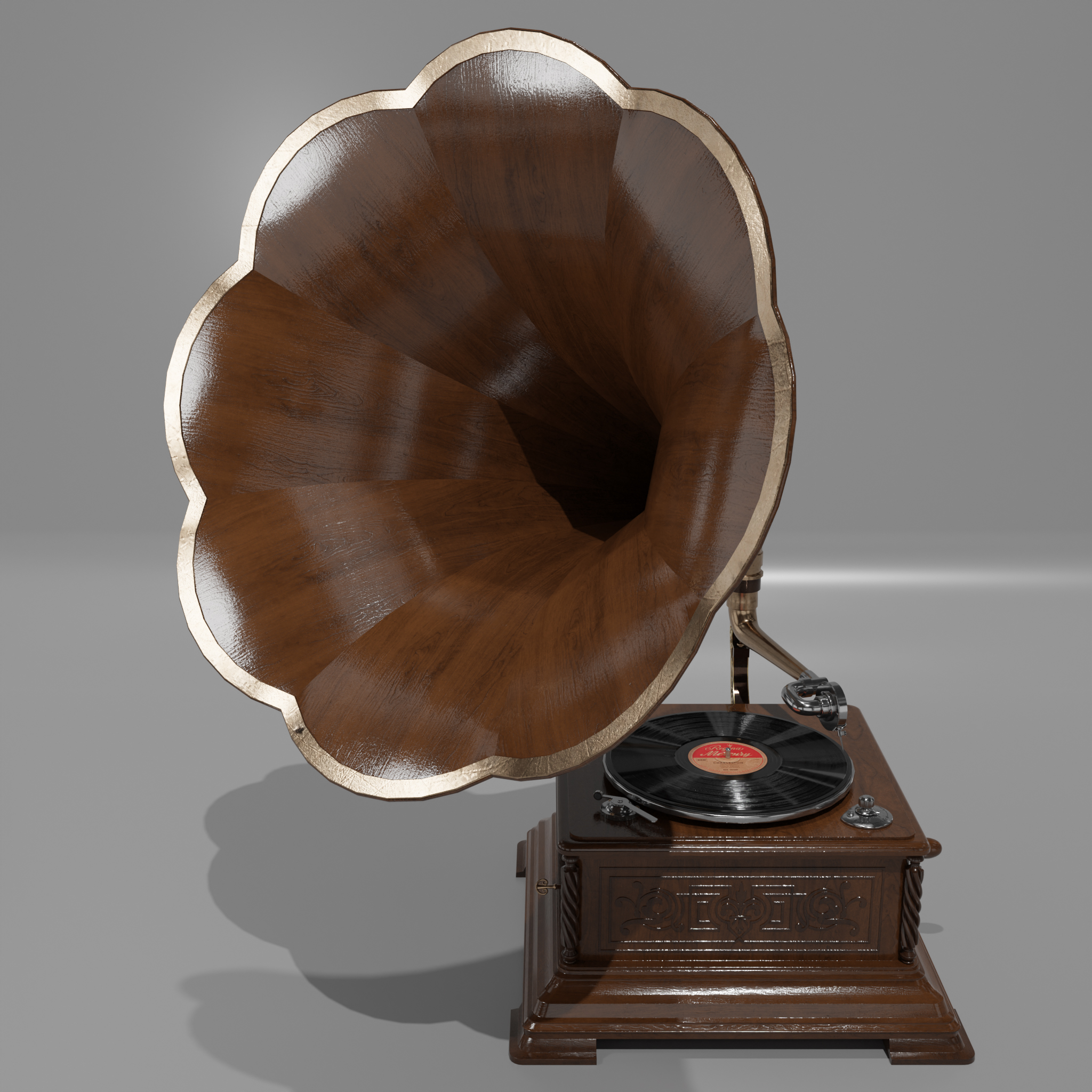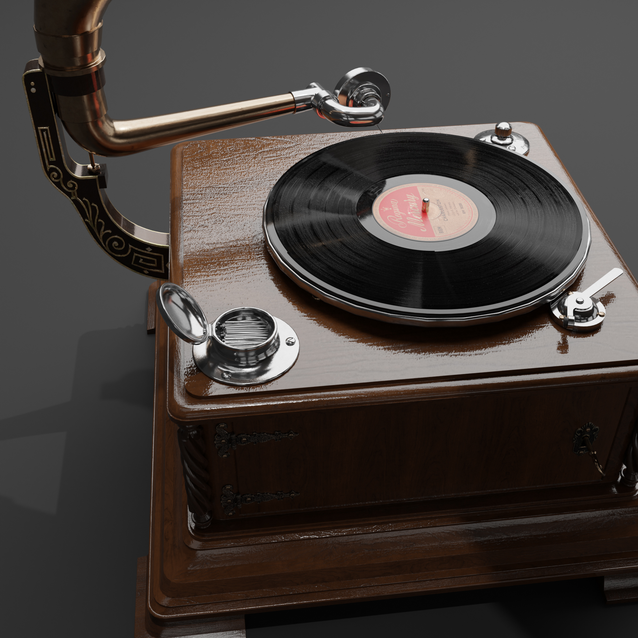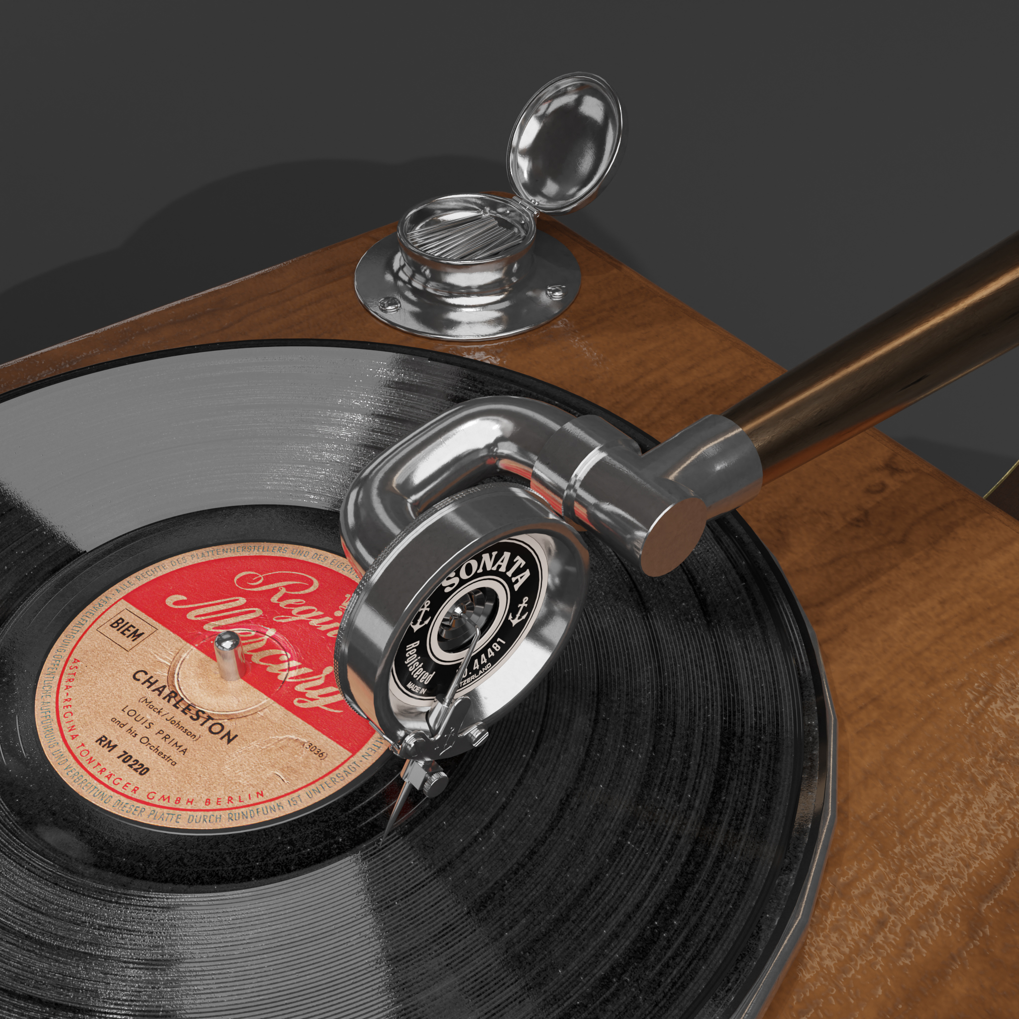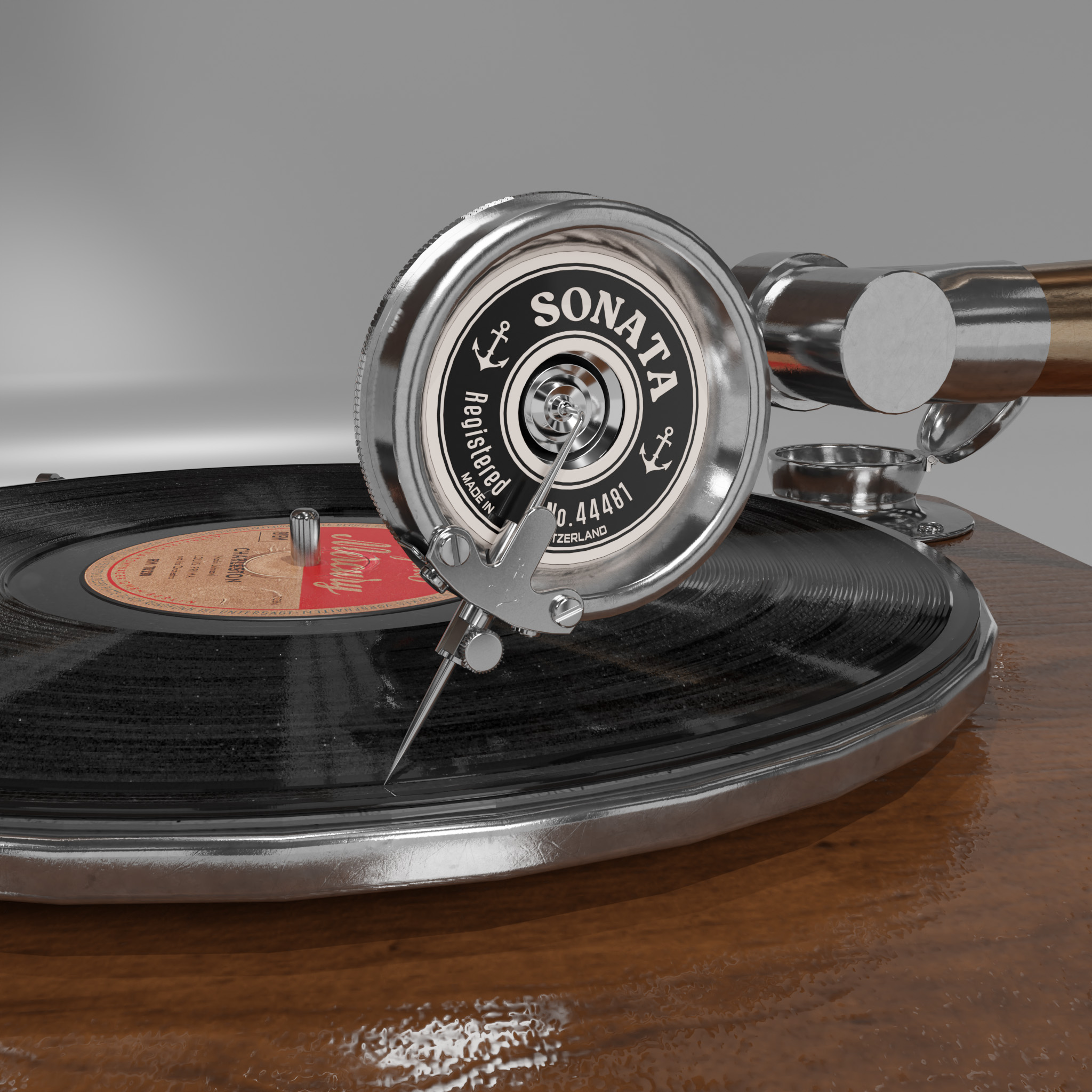 an diesem Grammophon modell ist fast alles neu modelliert, nur von dem gelungenem Trichter, dem animierten Feder Motor, den schiken gedrehten Säulen und der Edinson Kurbel konnte ich mich nicht trennen.ansonsten sind meine neuesten recherche erkenntnise in Dieses Grammophon Modell eingeflossen. besondere Aufmerksamkeit verdint auch Die Sonata Anker- Marke Schalldose sie ist auch nach den neuesten recherche ergebnissen Modeliert. auch die nadeln und anbauteile wie z.b. die Teller bremse sind neu. alles in allem ist diese mein gelungenstes Grammopphon Modell. Die Animierten bewegungs abläufe sind auf 5500 frames eingestellt so das die gesambte LP in diesem zeitraum abgetastet wird. das label der LP lässt sich im shader knoten leicht ändern. auch kannst du die Farbe der LP im shader knoten mittels einer farb rampe einstellen auch ist es möglich durch vertauschen der hell und dunkel werte ind der Farbrampe z.b. eine Goldene Schallplatte daraus zu machen. auch die Holz farben sind mit einer farb rampe eingestellt und leicht deinen bedürfnissen anzupassen das gild auch für die übrigen Farben.den hinweiss auf mich als den Modell creator auf der rückseite des modells kannst du bedenkenlos für deine zwecke entfernen das modell ist frei. Ich wünsche dir viel spass mit dem Blender Modell und mögen deine scenen gelingen.