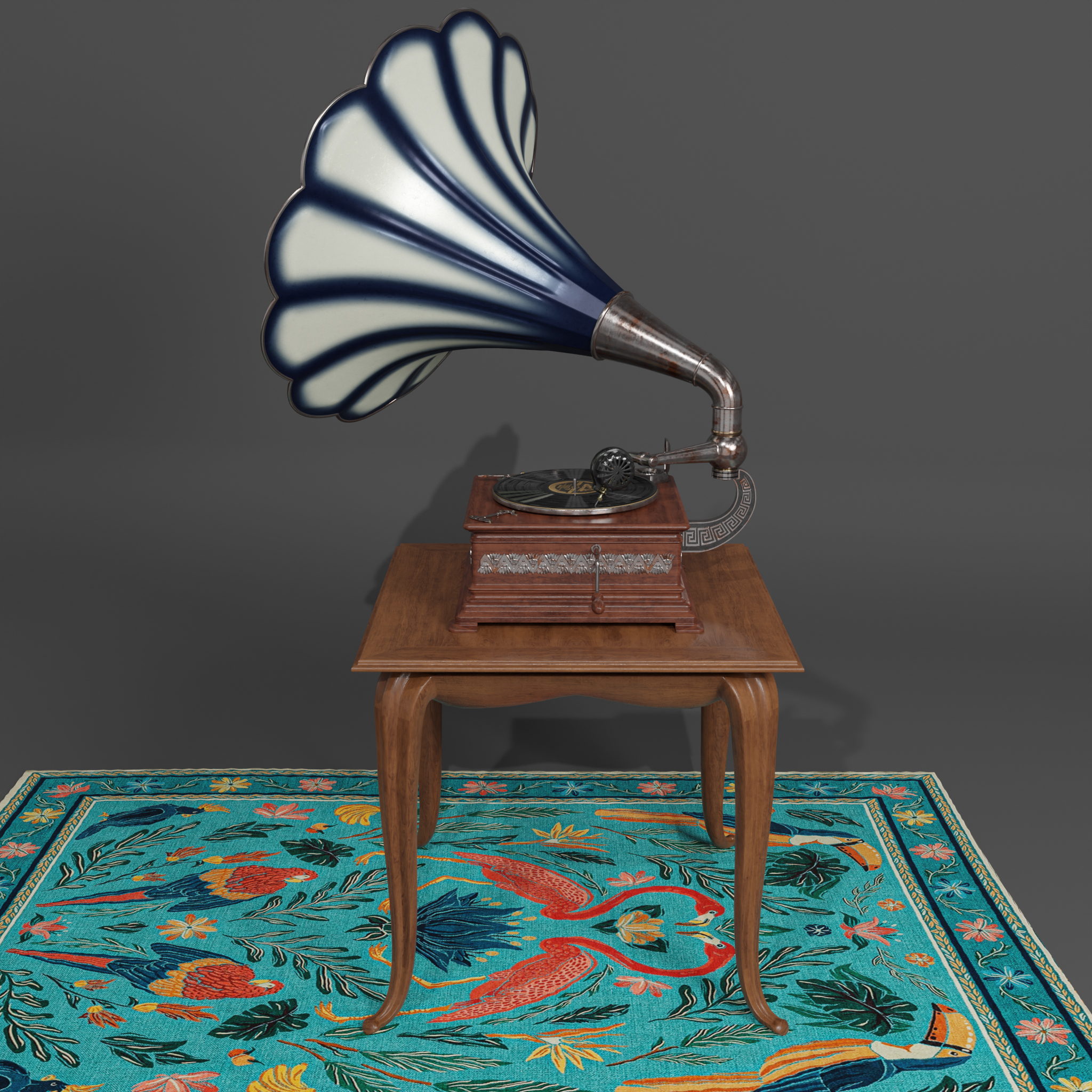 Mit der Schalldose Perplex No.5004 hat die Firma ANGU eine besonders Laute aber auch Grosse und schwere Schalldose auf den Markt gebracht. mit 8 cm durchmesser ist sie gut 1/3 grösser als alle anderen. dadurch konnte man auch grössere Räume und Werkstätten Beschallen. Die Dose ist aus Backaliet, und mit einer Glimmer Membrahn was Sie Noch Extravaganter machte. Ich habe der Perplex 5004 einen besonders Grossen Trichter Modeliert der in einem Klassischen zeitgemässem design erstahlt. der Motor, Der Plattenteller, Der Tonarm und Die seitliche klappe sind animiert. auserdem leuft der Plattenteller Unrund was ein bisschen herausvordernd bei der Animation war. geliefert wird Das Grammophon mit einem einfachen Jugendstiel Tisch auf einem Farbenprächtigen Tepich. fertig animiert zum sofortigen einsatz bereit.