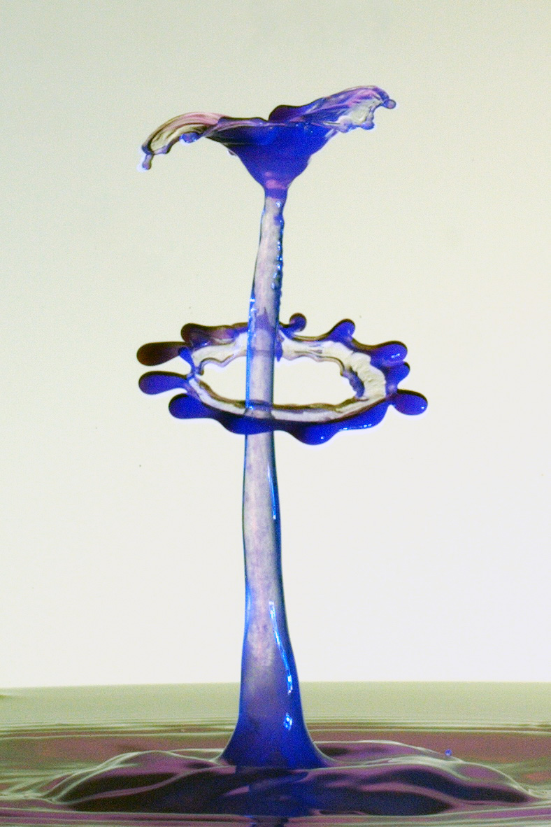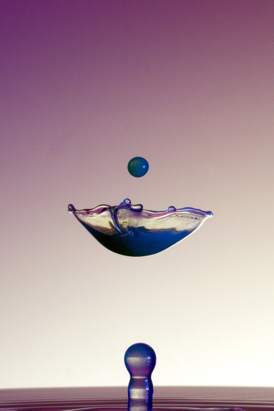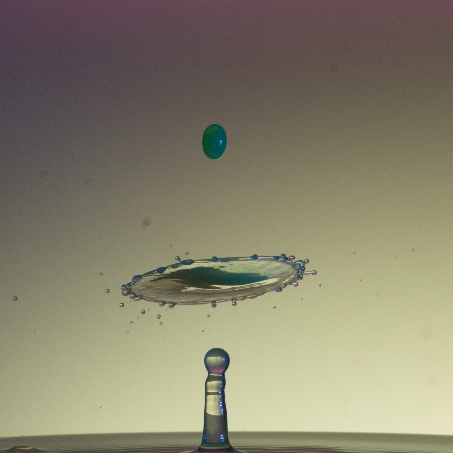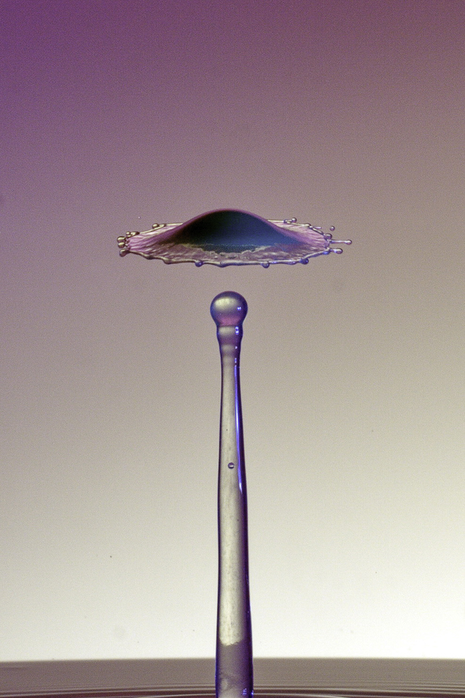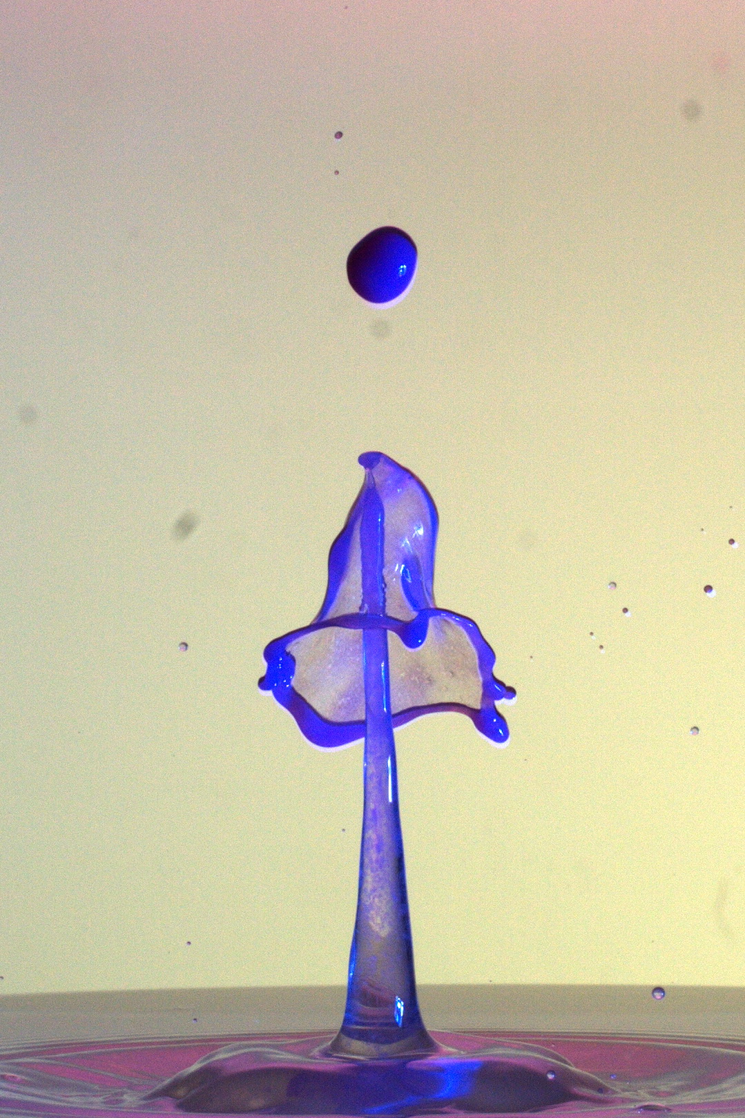 *) Mit "Tropfen-auf-Tropfen-Simulation" meinte der Mensch, einen Tropfen ins Wasser Fallen zu lassen und auf dem Kegel, der sich in der Mitte von dem "Einschlagkrater" bildet, bzw. einen Tropfen der davon hoch "springt", einen weiteren Tropfen fallen zu lassen, sodass sich beim zusammenprall der beiden Tropfen sowas wie ein Schirm bildet.