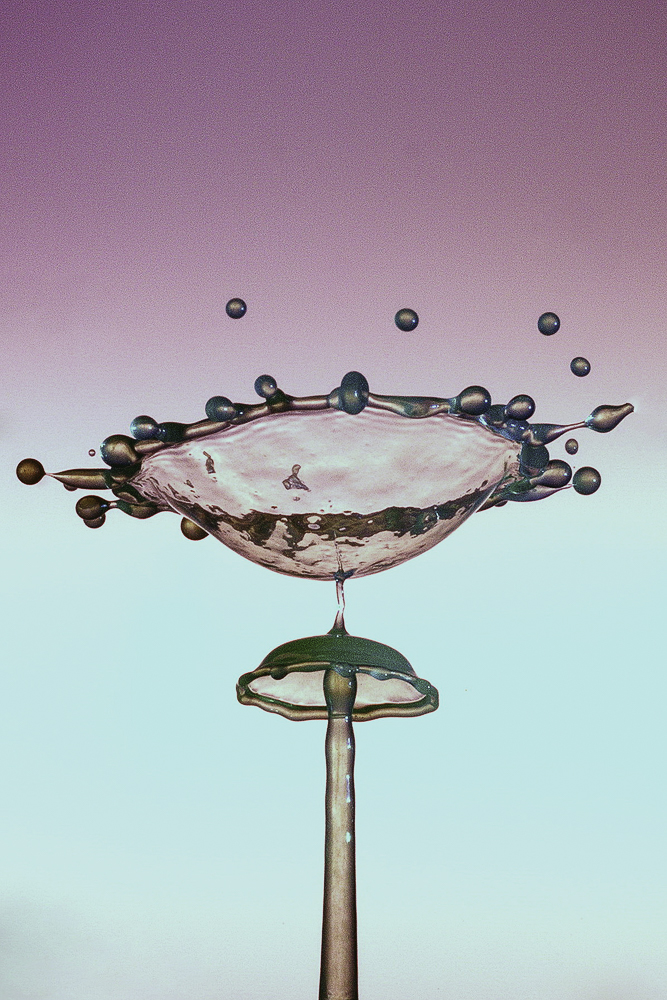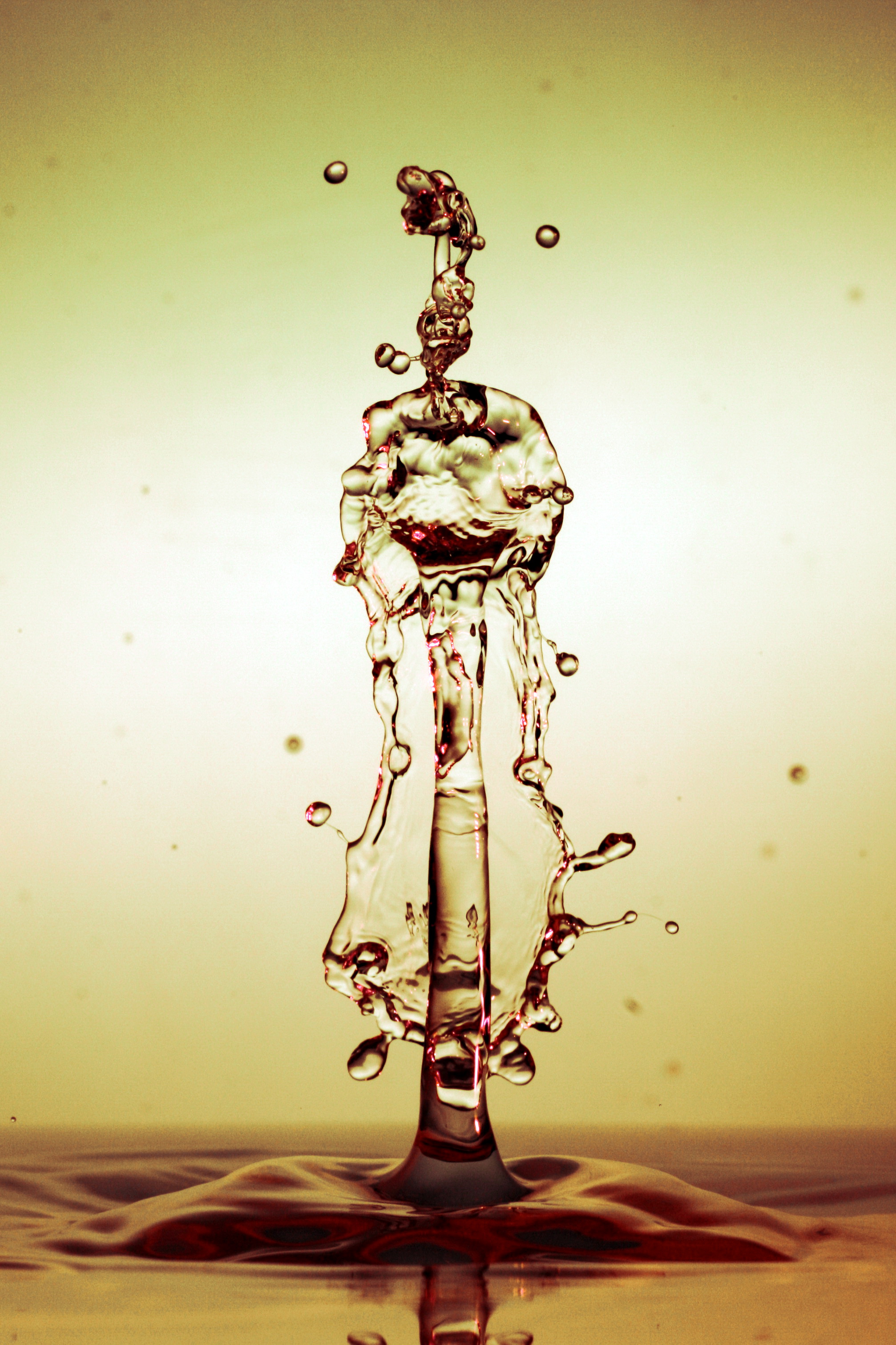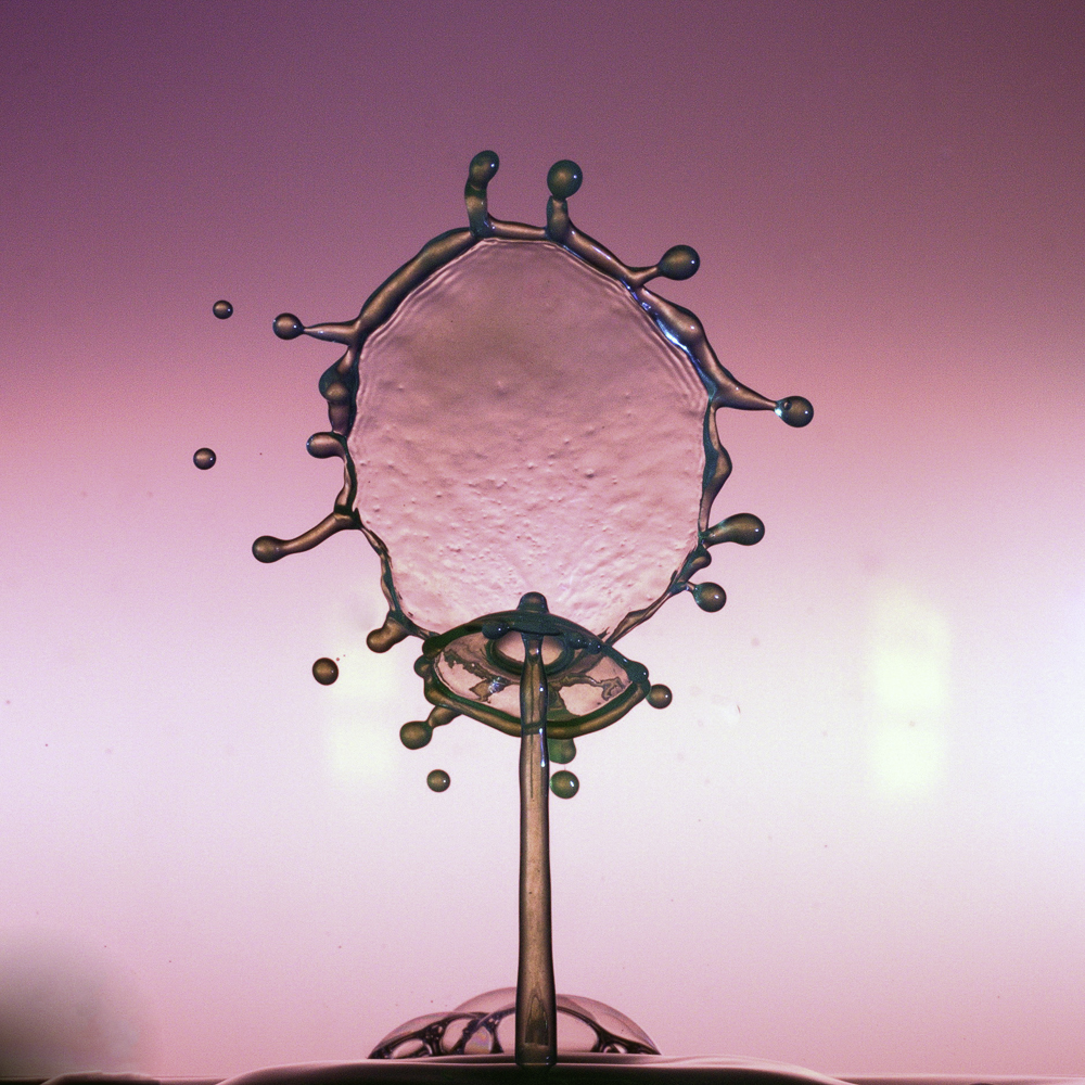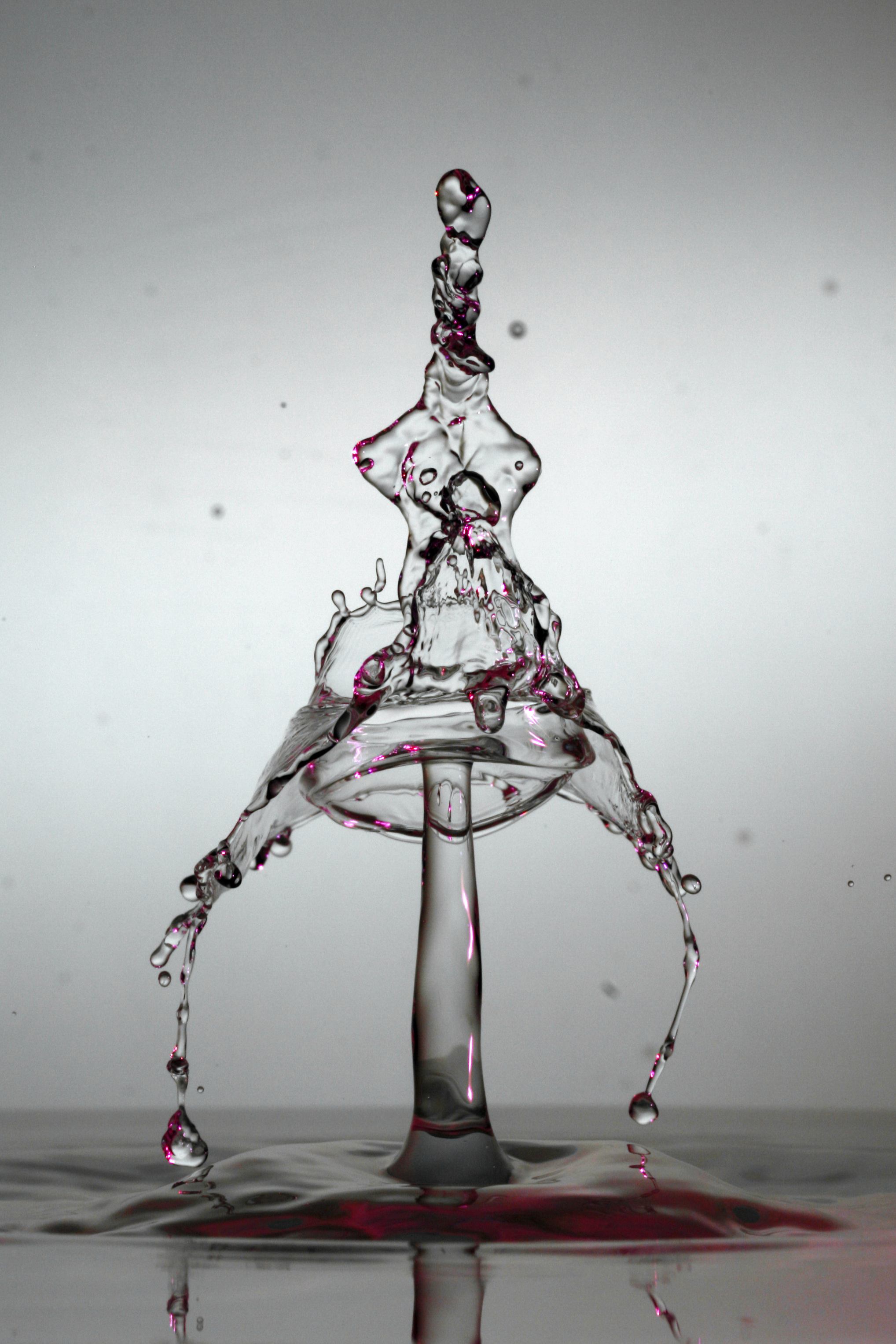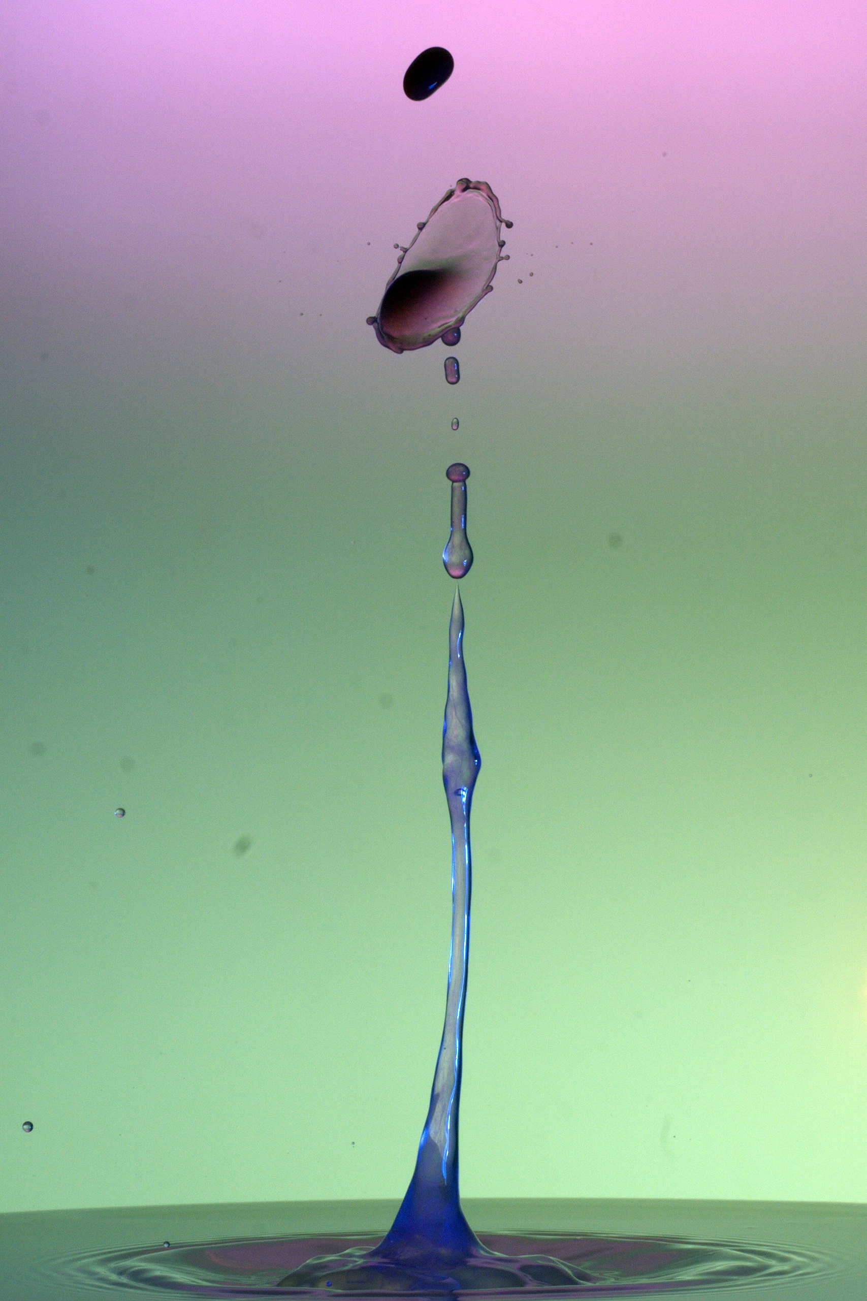 *) Mit "Tropfen-auf-Tropfen-Simulation" meinte der Mensch, einen Tropfen ins Wasser Fallen zu lassen und auf dem Kegel, der sich in der Mitte von dem "Einschlagkrater" bildet, bzw. einen Tropfen der davon hoch "springt", einen weiteren Tropfen fallen zu lassen, sodass sich beim zusammenprall der beiden Tropfen sowas wie ein Schirm bildet.