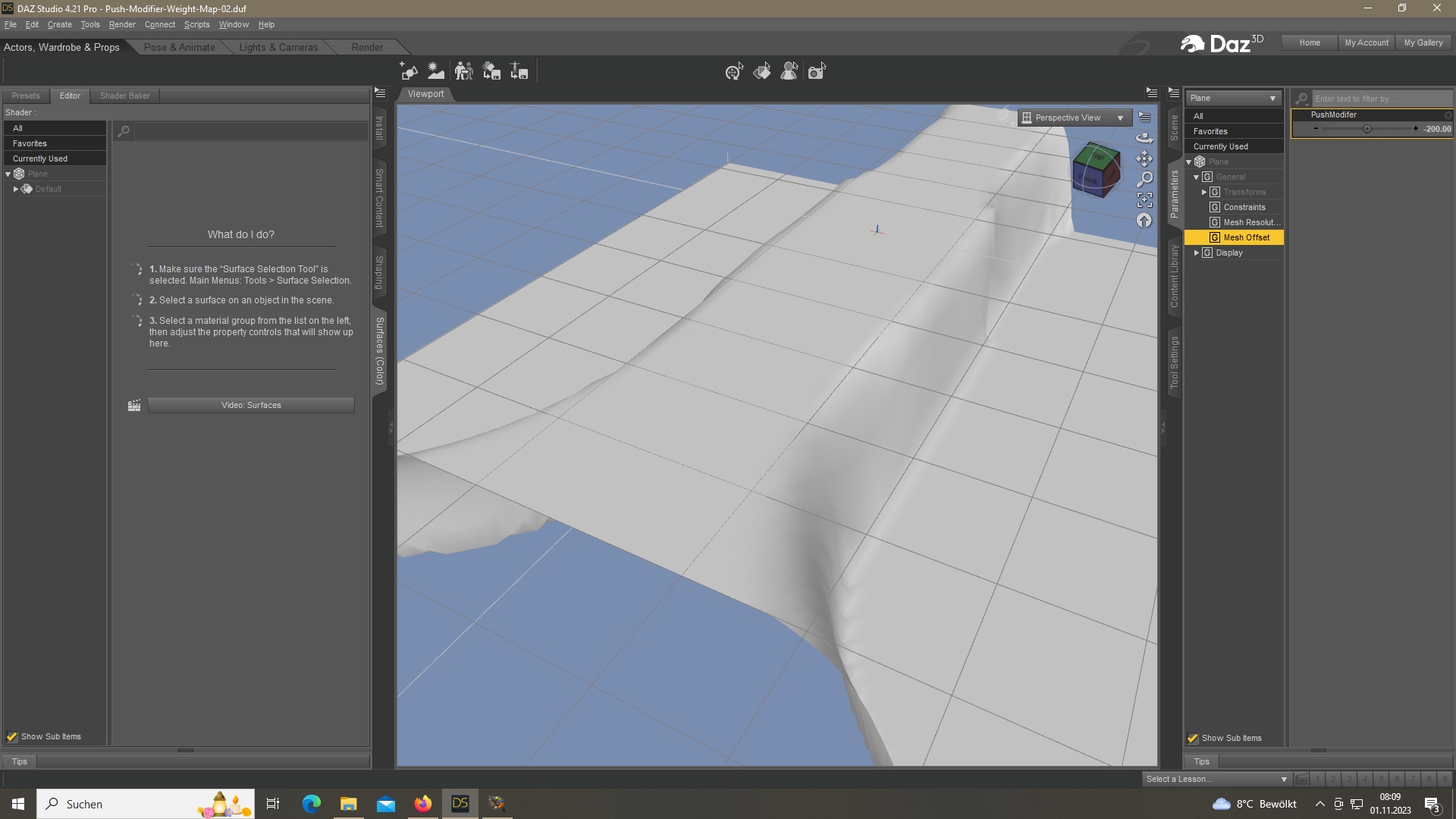 Hatte begonnen, in einen Stiefel Falten in oder mit Hexagon zu ziehen, was nach nichts aussah, zudem die Form des Mesh so veränderte, dass die Sohlen kürzer und die Schäfte höher wurden, wenn der Regler aufgedreht wurde. Was dabei vor sich ging, so richtig erklären konnte ich mir es nicht, weil in Hexagon noch nichts davon zu sehen war. Auch die Falten waren nur nach außen bzw. offset gezogen.