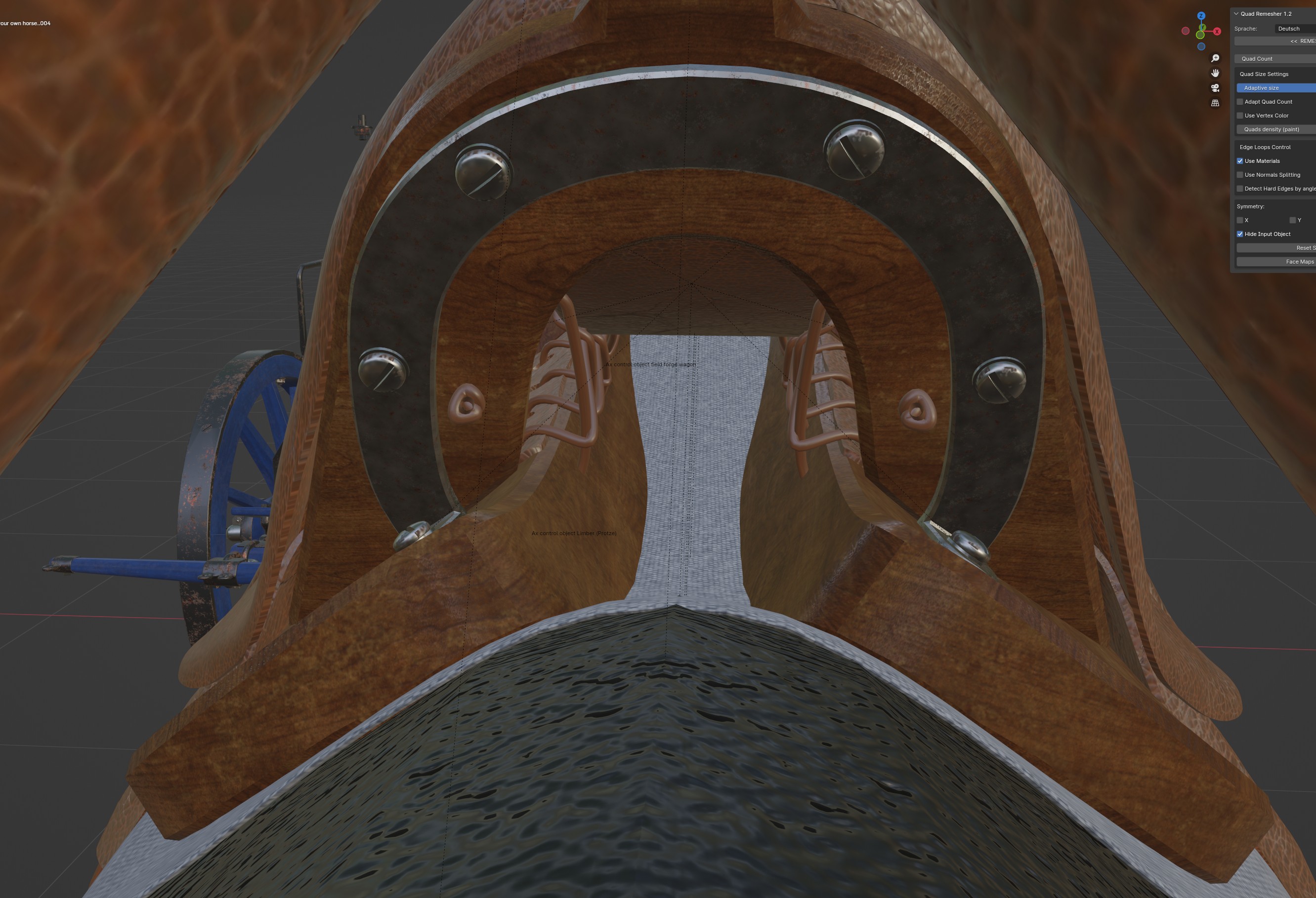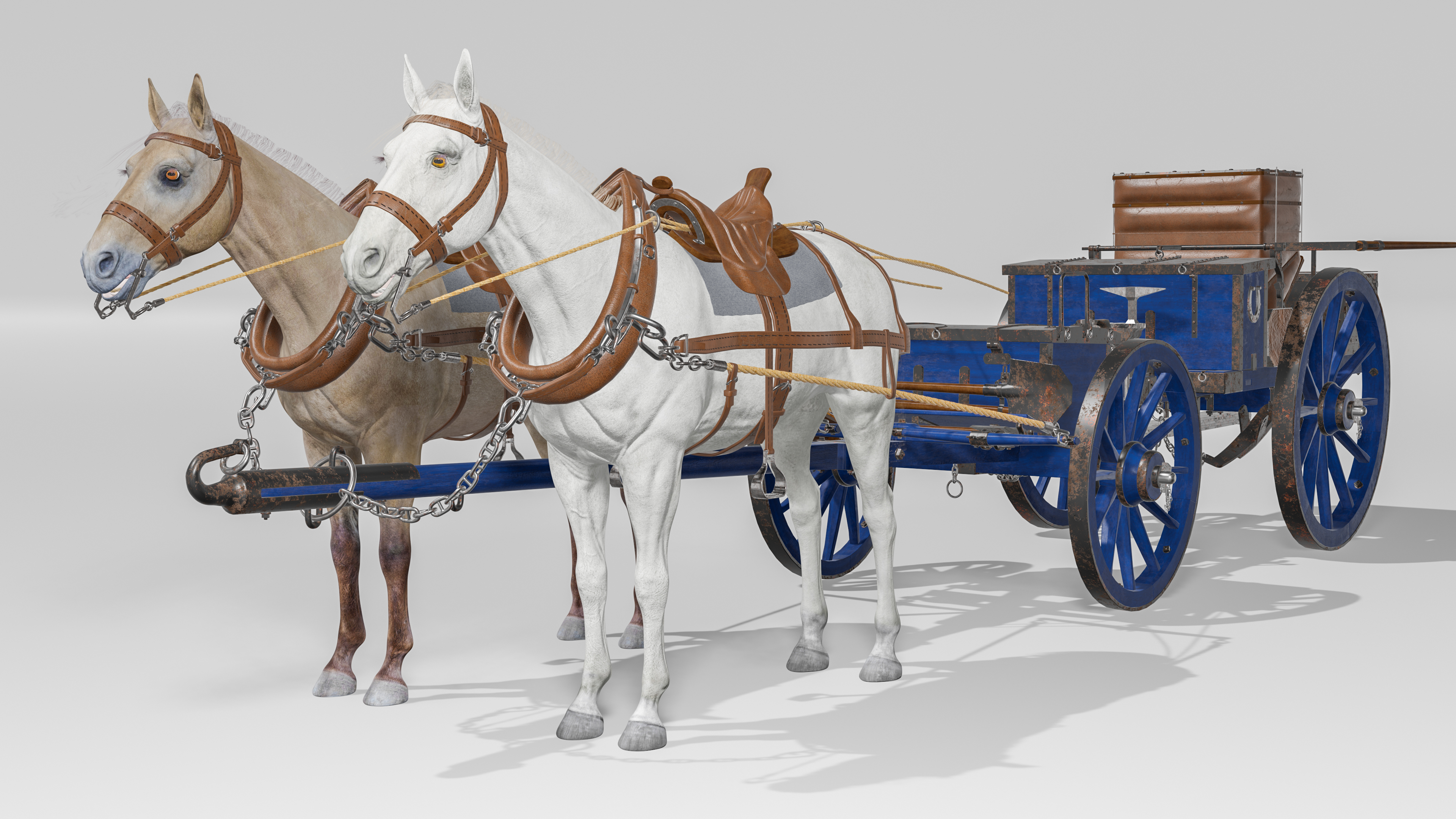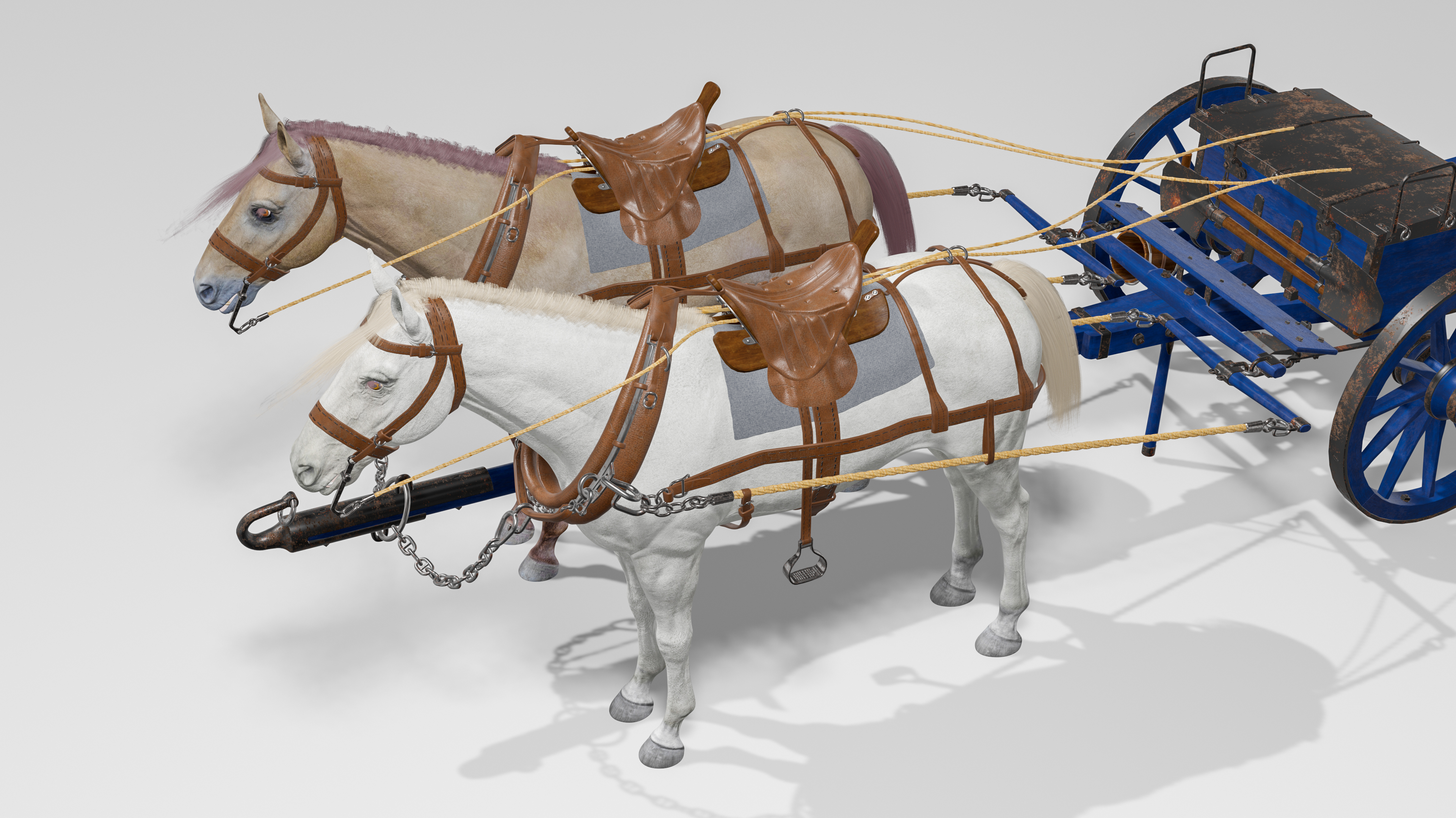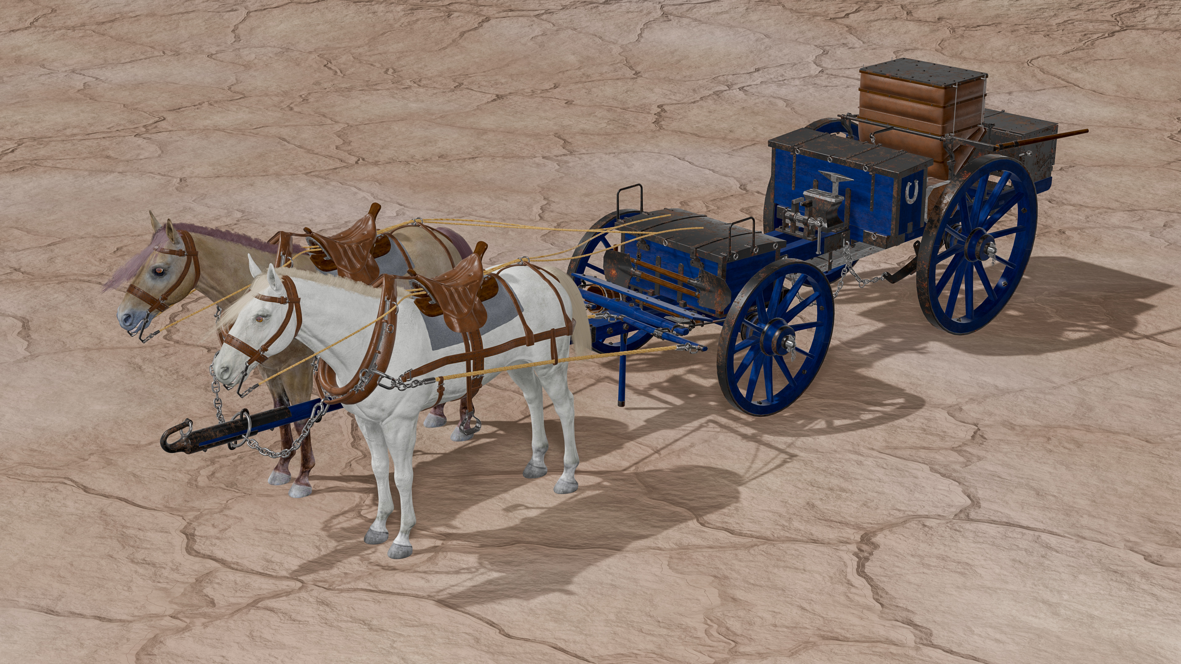 Zuerst habe ich gedacht, warum so ein komplexer Aufbau für den Sattel, bis ich realisiert habe, dass dadurch unter dem Sattel ein Tunnel entsteht, durch den die Zügel (die Lenkseile) geführt werden, die von Pferd zu Pferd weitergereicht werden. Es ist klar, dass, wenn jemand darauf sitzt, ihm die Zügel sonst die ganze Zeit über den Oberschenkel schrubbern würden. Und wenn der Soldat niest oder Gott bewahre von seinem Ross geschossen wird, laufen die Pferde in Sternformation auseinander.
