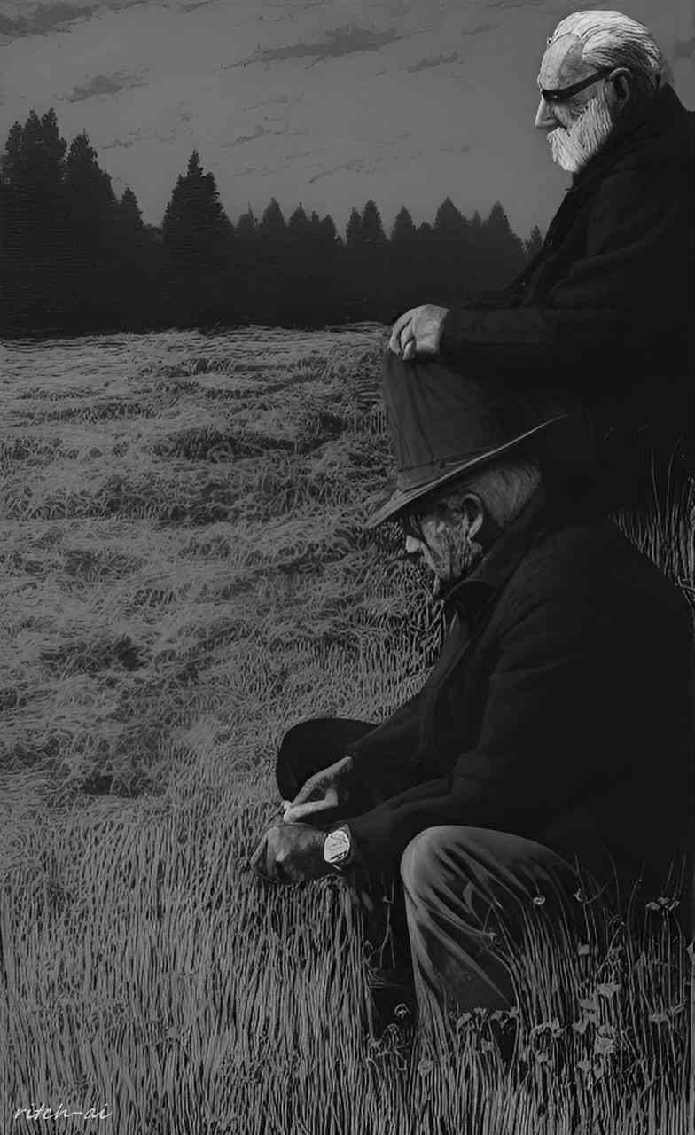 oh weier! Herr Weier! Welch ein Einblick, die Blickrichtung der Herren, die diese an den Rand rücken lässt, lässt sie teilnahmslos erscheinen. Aber mir gefallen die traditionellen Hüte! Offensichtlich sind diese Herren trotz ihrer äußeren Position gut behütet! Der eine hat sogar noch eine Armbanduhr aus dem letzten Jahrtausend! Entweder ist er reich oder sehr arm, aber dennoch scheint es für ihn nicht zu spät!