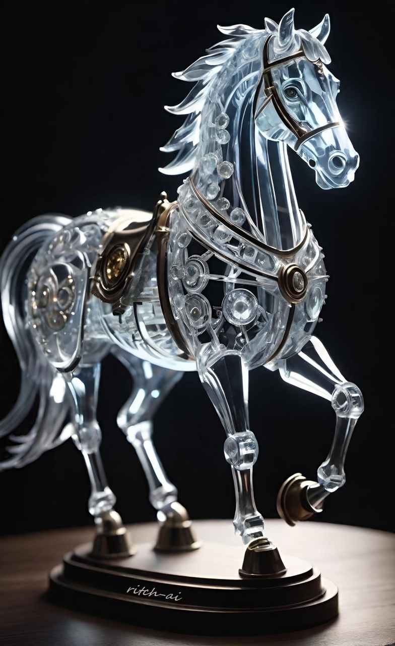 Das Pferd einer Amazone. Hier mit außergewöhnlichem Geschirr und Zügel, welche nur zu besonderen Anlässen angelegt wurden, weil die Kriegerinnen beide Hände zum Spannen des Bogens brauchten und das Pferd mit ihren Schenkeln lenkten.