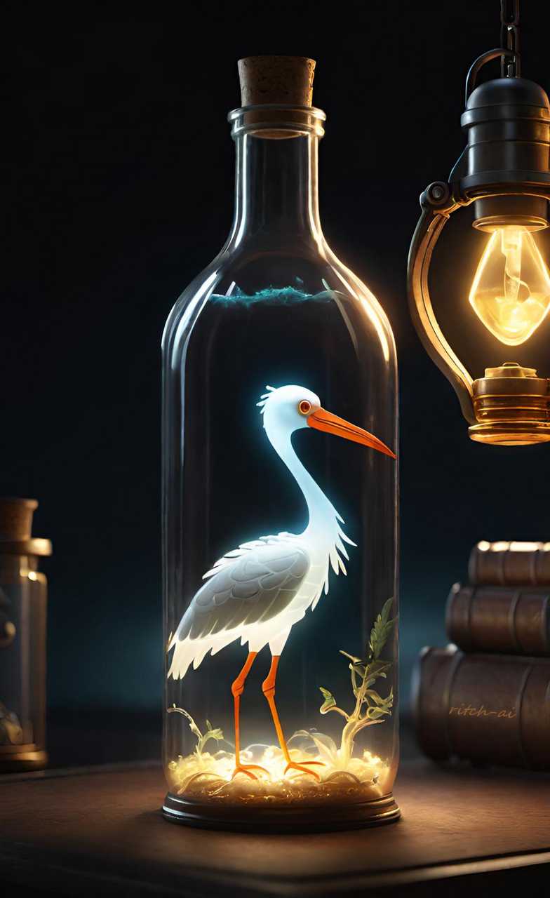 Ein Schluck aus dieser Pulle mit in hochprozentigen Fusel eingelegtem Storch kann Hopsern bei Angst- und Schnarchstörungen helfen.