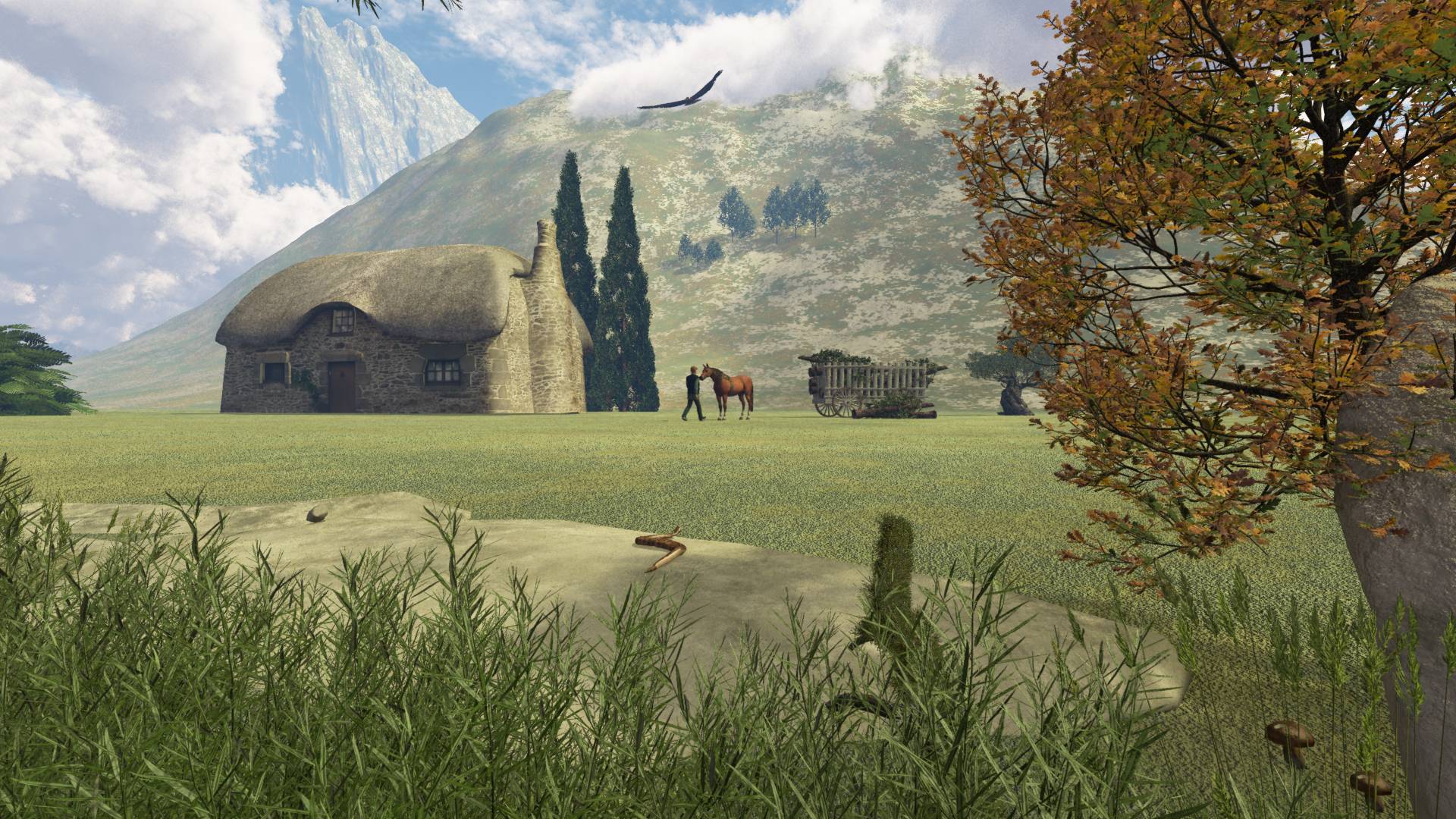Was hier ganz toll fehlt ist Bump-oder Normal-Map für den Stein, wo die Schlange draufliegt und den Berg direkt hinter dem Haus.