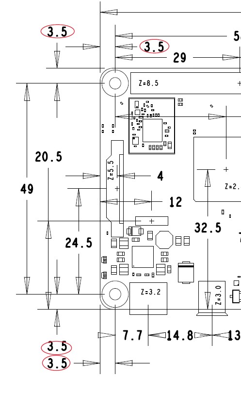 Und zwar zu dem Punkt gekommen wo ich nicht weiterkomme nämlich finde ich nicht die Abstände der Schraubenlöcher in der Zeichnung im Bezug auf der Position von der Außenkante.