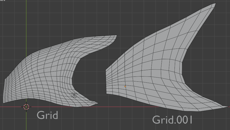 Dieses Gebilde aus Bezierkurven hab ich dann dupliziert und das Duplikat in ein Mesh umgewandelt und versucht, den Bereich zwischen den Bögen und der Z-Achse mit einem sauberen Mesh zu füllen. (Was es mit den beiden geraden Linien auf sich hatte, weis ich nicht mehr.) Dass war sehr Zeitaufwändig, aber nicht sonderlich erfolgreich. Hier mal die ersten Ergebnisse...
