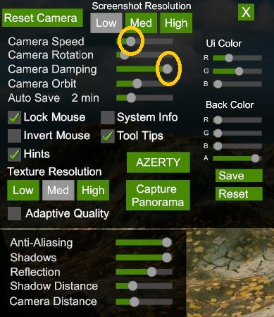 Kamera Speed: Regler zB auf 5mm