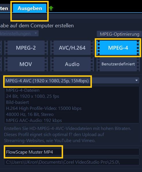 FlowScape Animation in ein MP4 Video umwandeln