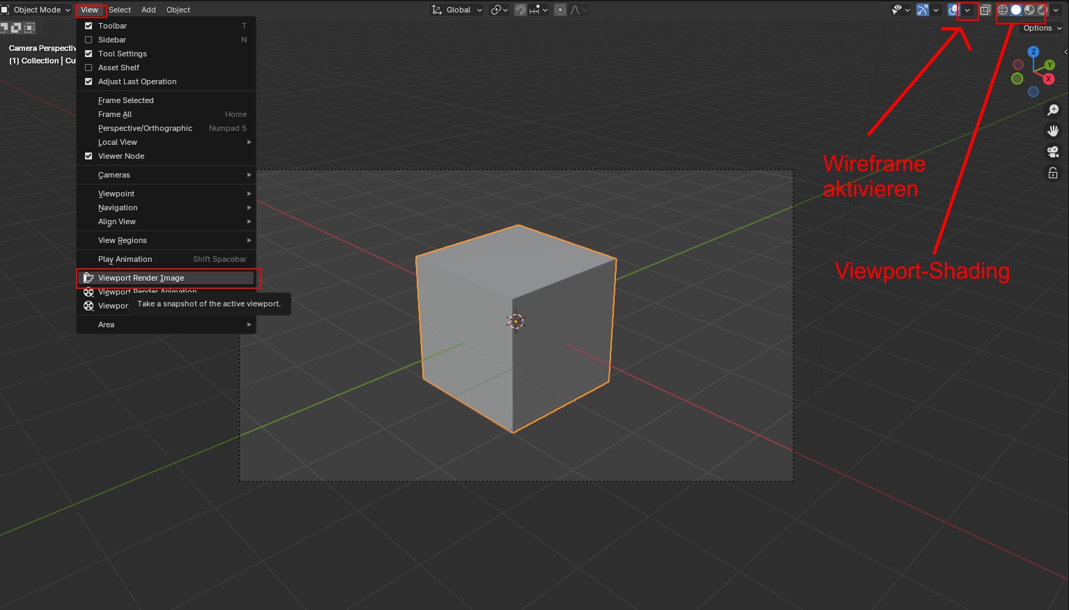 .....und über Viewport-Overlays auch das Gitter und die Koordinatenlinien wegschalten.