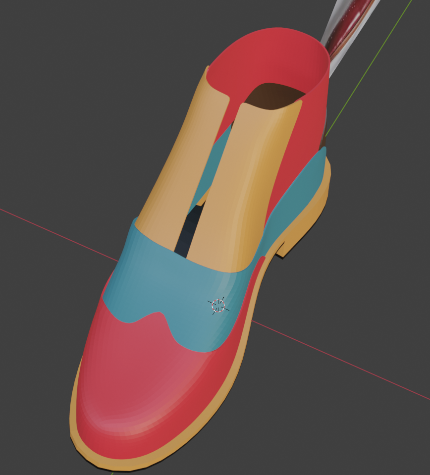 In dieser Version 2 des Oxford Schuhs habe ich eine einfache Innenlasche hinzugefügt und den Schuh mit einem einfachen Leder-Material ausgestattet. Das Besondere an diesem Leder-Material ist, dass die Farbe über eine Color-Ramp einstellbar ist. Somit kommen nur drei Materialien zum Einsatz: