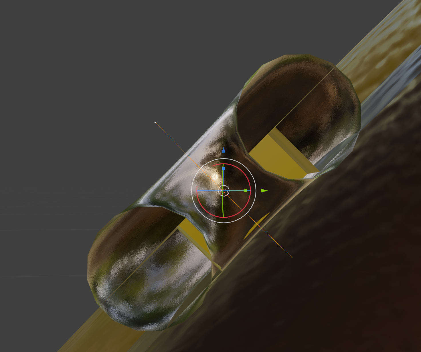 Diese Enden habe ich nach außen gezogen, frei Schnauze, und am Ende extrudiert und deren Durchmesser verjüngt. Das sollen die Endkappen werden.