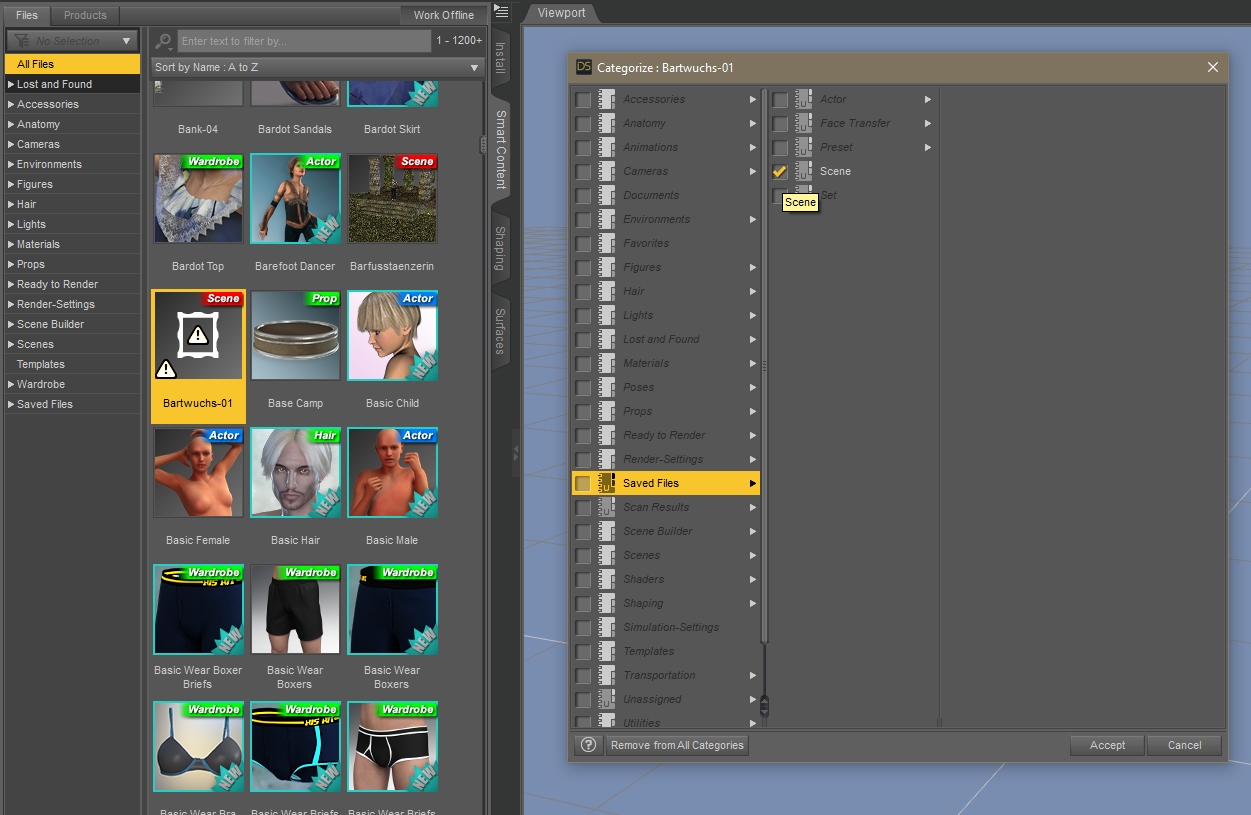 das Procedere wie im Link beschrieben, funktioniert bei mir auch nicht. Vielleicht sollte ich ebenfalls mehr mit dem Content Libraray Pane statt mit dem Smart Content Pane arbeiten. Als Mittel des letzten Weges kann ich DAZ 3D komplett neu installieren, was vielleicht auch keine schlechte Lösung ist. Dann wären auch einige andere Dateileichen weg ^^