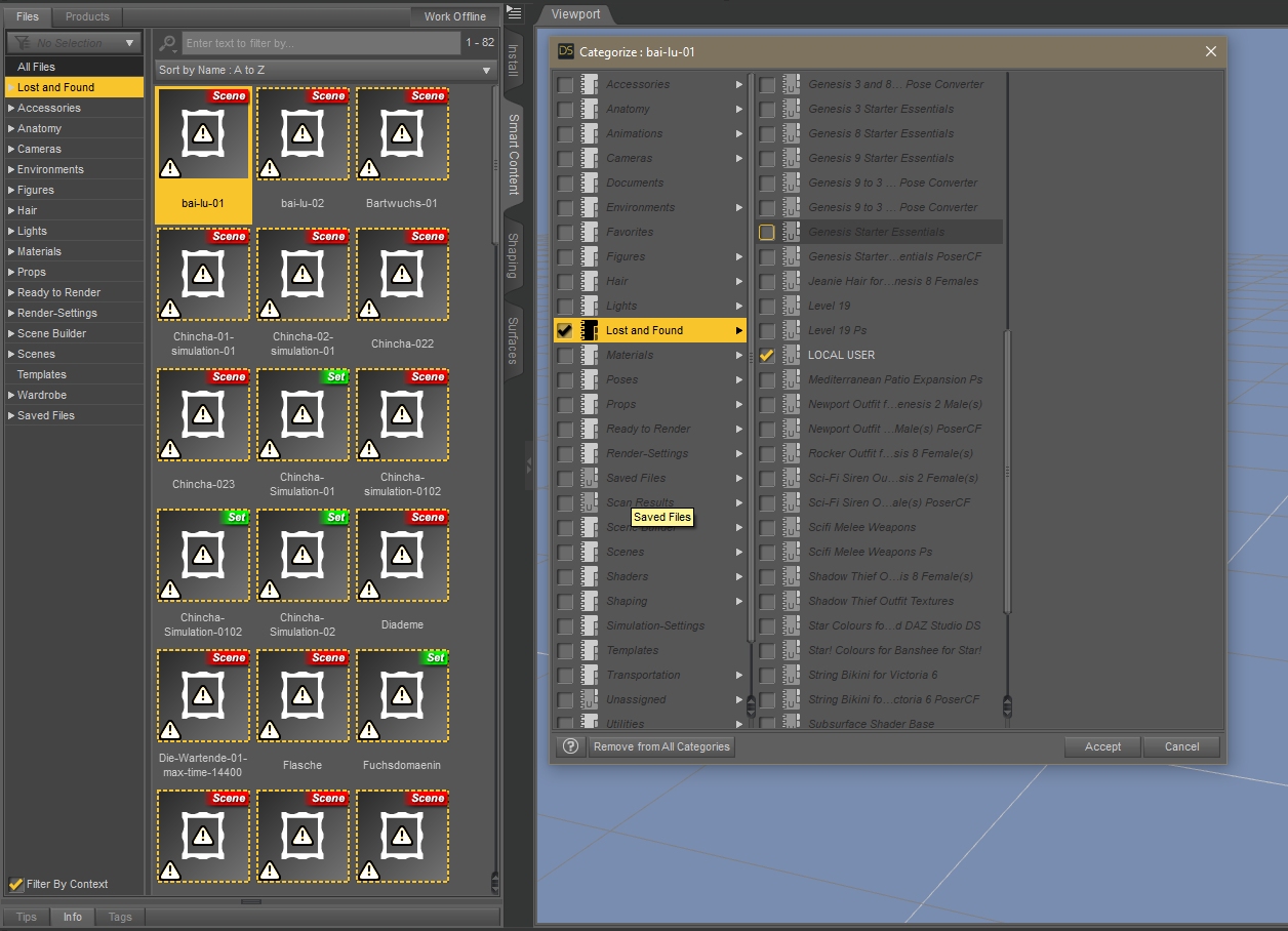 Bei einer neueren Scene sah ich gerade, da klappte es problemlos, Häkchen weg, mit Accept bestätigen und gut war es. Doch die werden ja jetzt auch nicht mehr unter Lost and Fund -> Local User, sondern unter Saved Files -> Scene gelistet, und da gehen die zu löschen, mit Entfernung des Häkchens und Bestätigung.