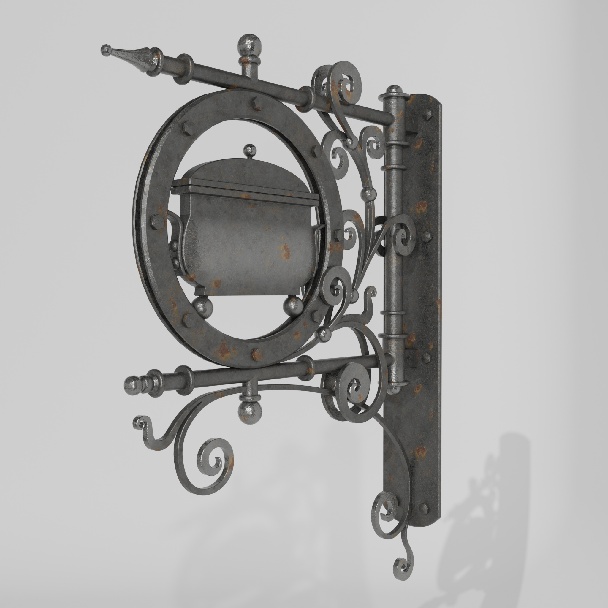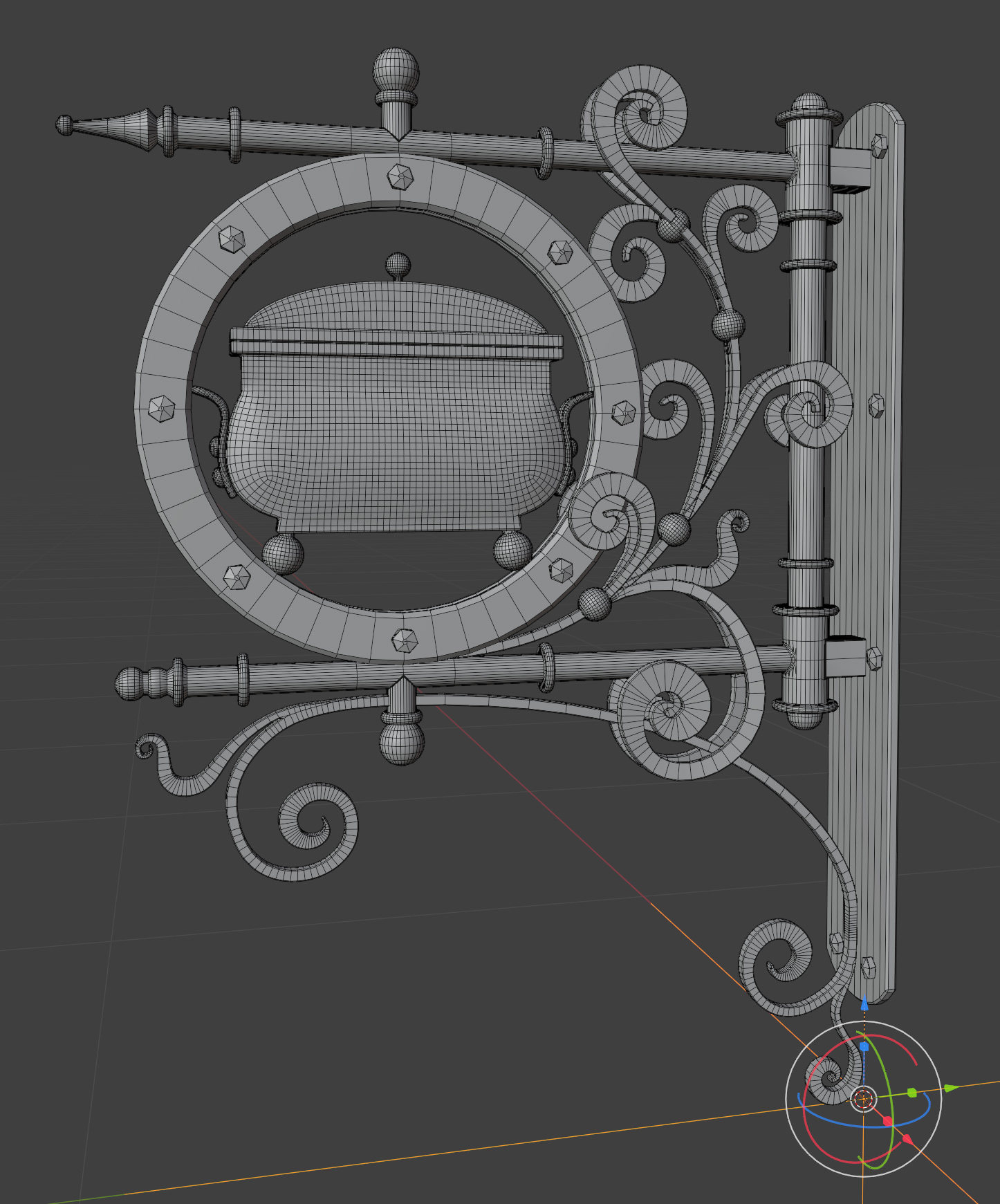 ZitatDieses detaillierte 3D-Modell eines mittelalterlichen Tavernen-Schildes, erstellt mit Blender 4.2.1, trägt den Namen ‘Zum Dampfenden Topf’. Das Schild zeigt kunstvolle Schmiedearbeiten mit einem zentralen Emblem eines dampfenden Topfes, was den Namen der Taverne widerspiegelt.