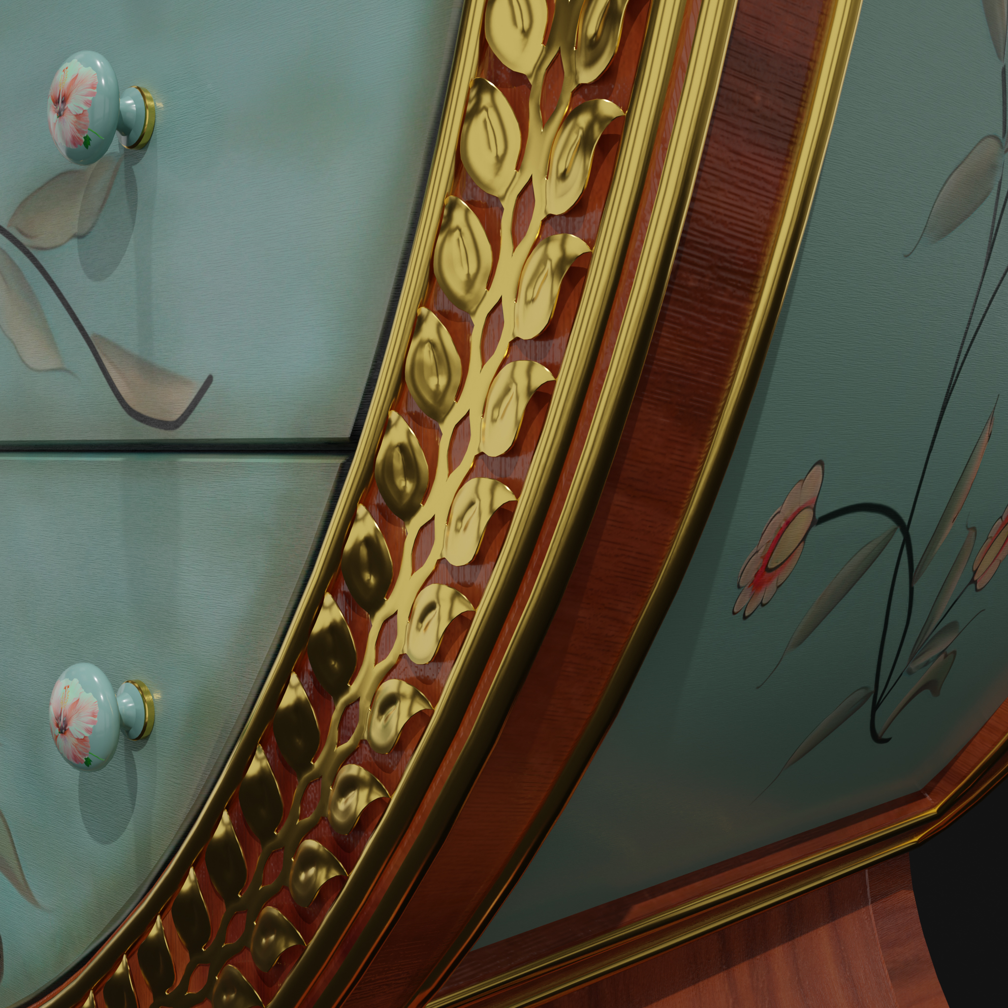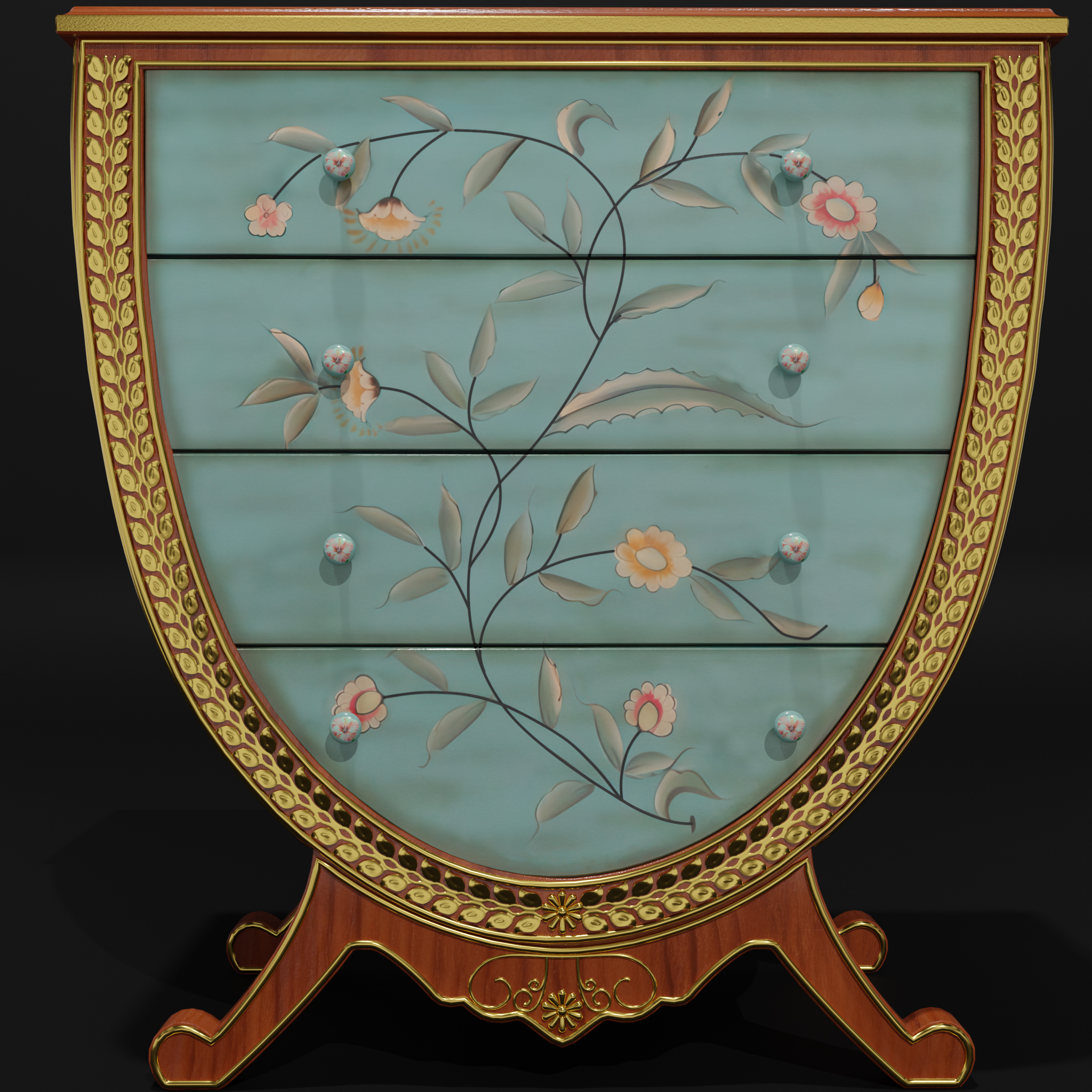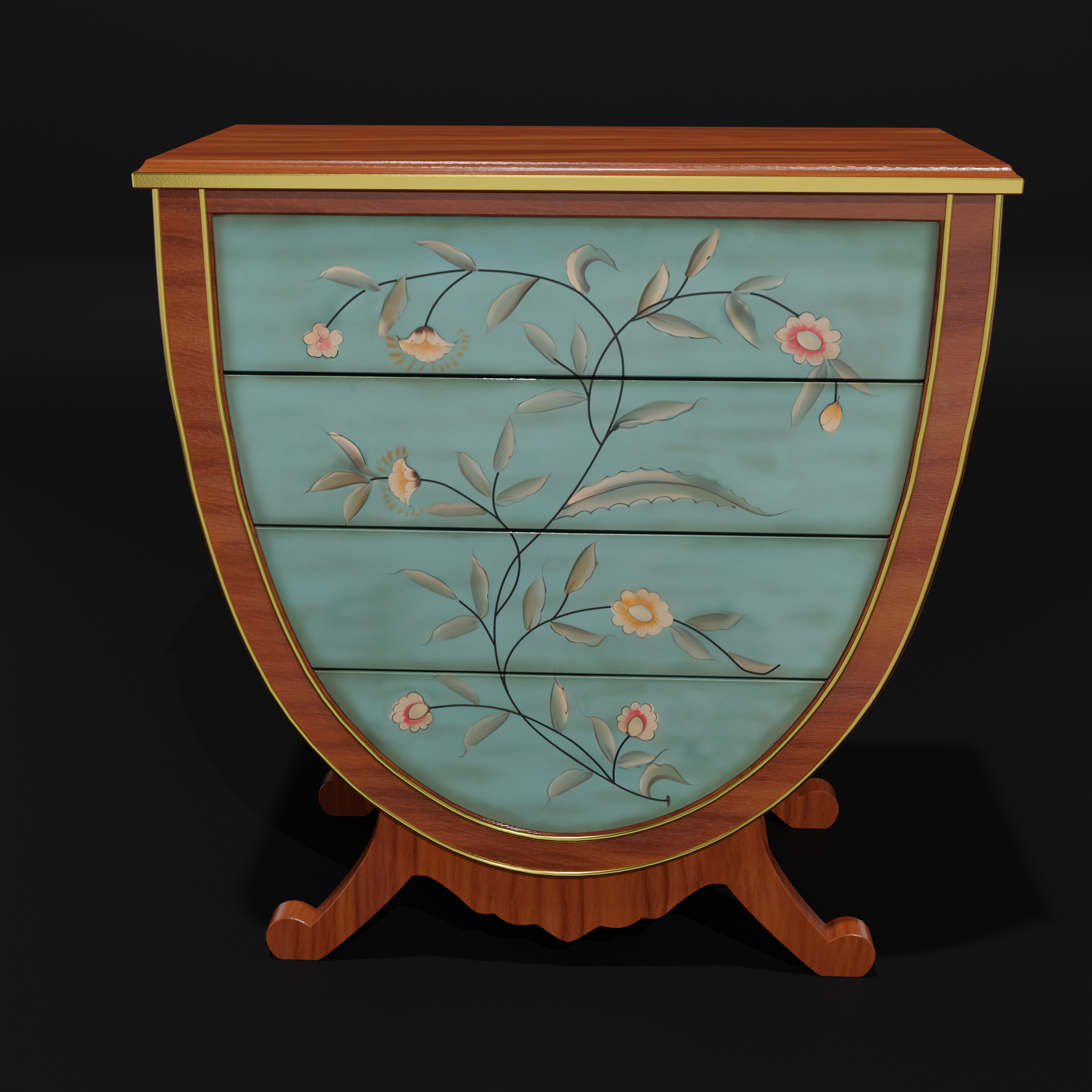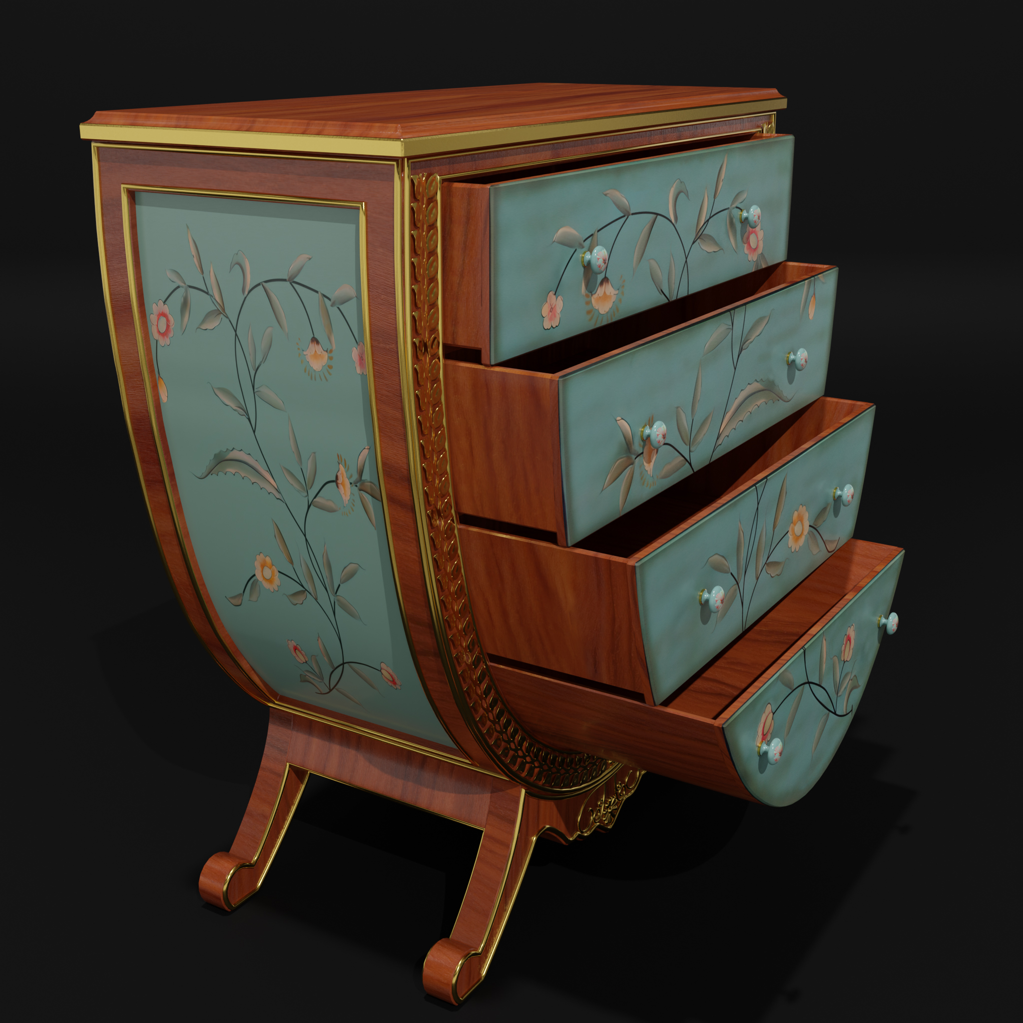 Entdecke die „Rokoko-Kommode mit Goldverzierungen“, ein Blender-Modell, das die Eleganz und den Reichtum der Rokoko-Epoche in Frankreich einfängt. Diese besondere Kommode mit vier Schubladen zeichnet sich durch ihre reichhaltigen goldenen Beschläge, ihre U-förmige Form und die kunstvollen Bemalungen der Schubladen und eingelassenen Seitenteile aus. Der glänzende Klarlack hebt die natürliche Holzstruktur hervor und verleiht dem Möbelstück eine edle Optik. Ich wünsche dir viel Spaß mit dem Blender Modell und mögen deine Szenen gelingen.