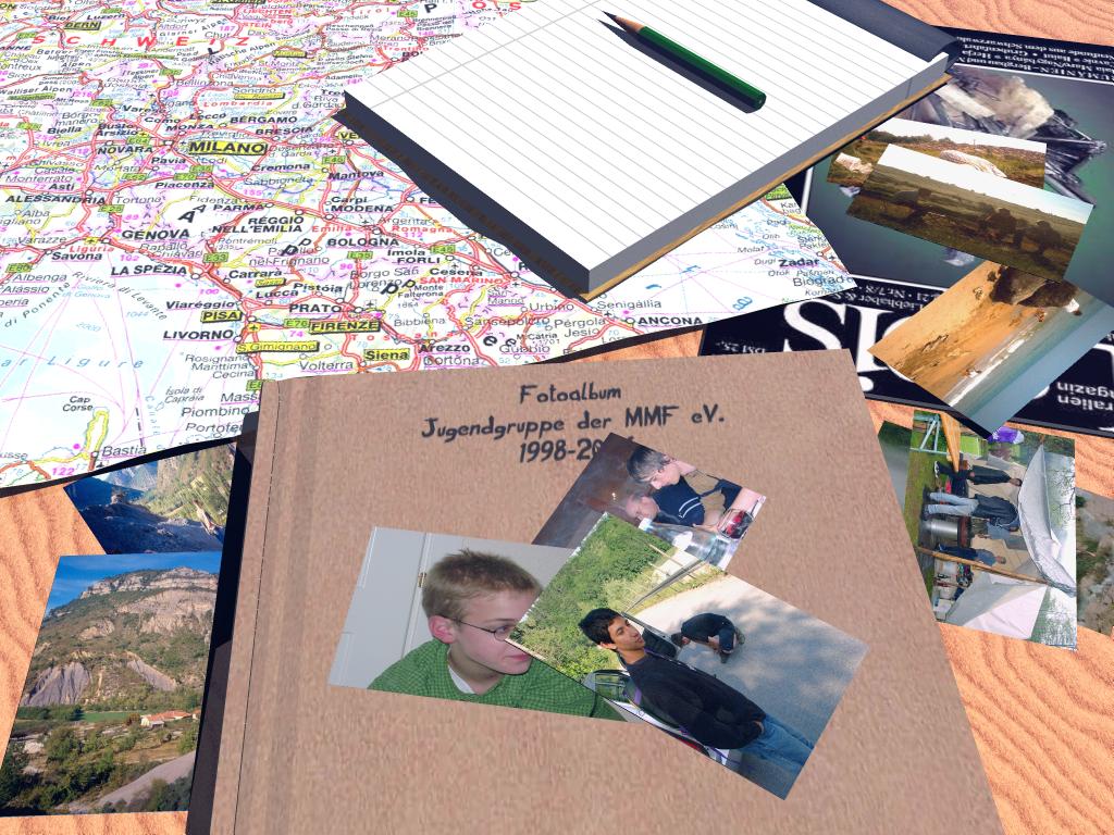 Den Block mit Stift und das Album (texturiert ohne Aufschrift) hab ich dem Download-Bereich als Bryce-Objekte beigefügt.