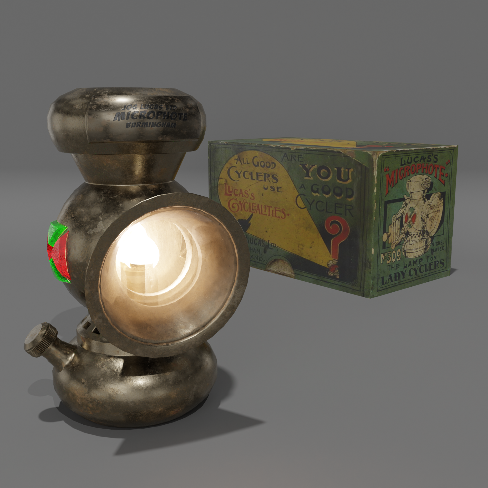Dieses detaillierte 3D-Modell einer Joseph Lucas #344 Karbidlampe wurde mit Blender 4.2.2 erstellt. Die Lampe ist mit der Fluid-Simulation Manaflow ausgestattet, um eine realistische Flammenanimation zu erzeugen. Zusätzlich wurde eine herkömmliche Punktlichtquelle verwendet, um die Helligkeit optimal zu steuern. Die Karbidlampe, die ursprünglich im frühen 20. Jahrhundert verwendet wurde, ist ein faszinierendes Stück Geschichte und Technik. Bitte beachte, dass du die Simulation starten und dann rendern musst, um die Flamme zu sehen. Ich wünsche dir viel Spaß mit dem Blender Modell und mögen deine Szenen gelingen.