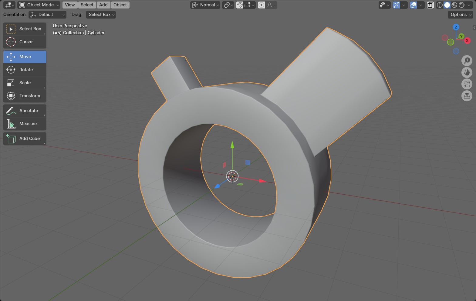 Habe dann auf dem linken Arm (dem kurzen) ein Inset gemacht und aus dem Inset heraus das Face extrudiert, auch hier keine saubere Kante am Zylinder.